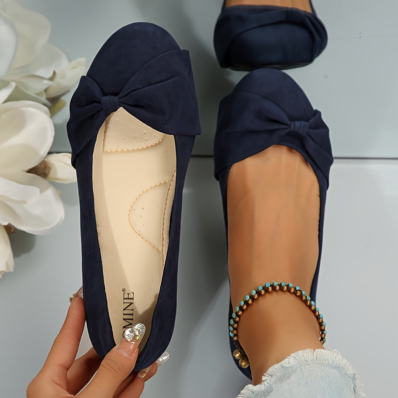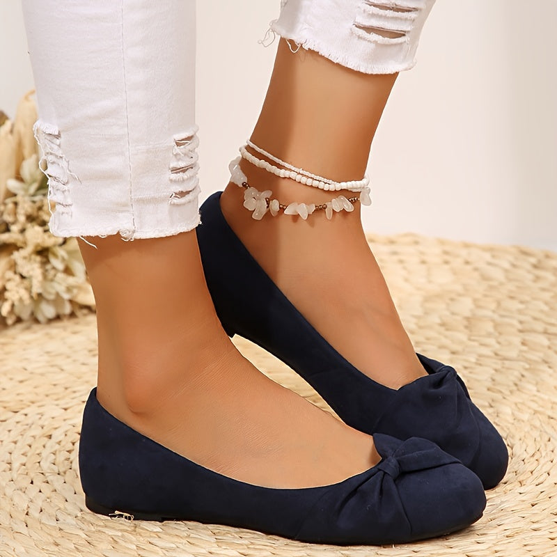 Ayollar uchun tekis poyabzal, Kelebek tugmasi uslubi, charm, qulay, qora
