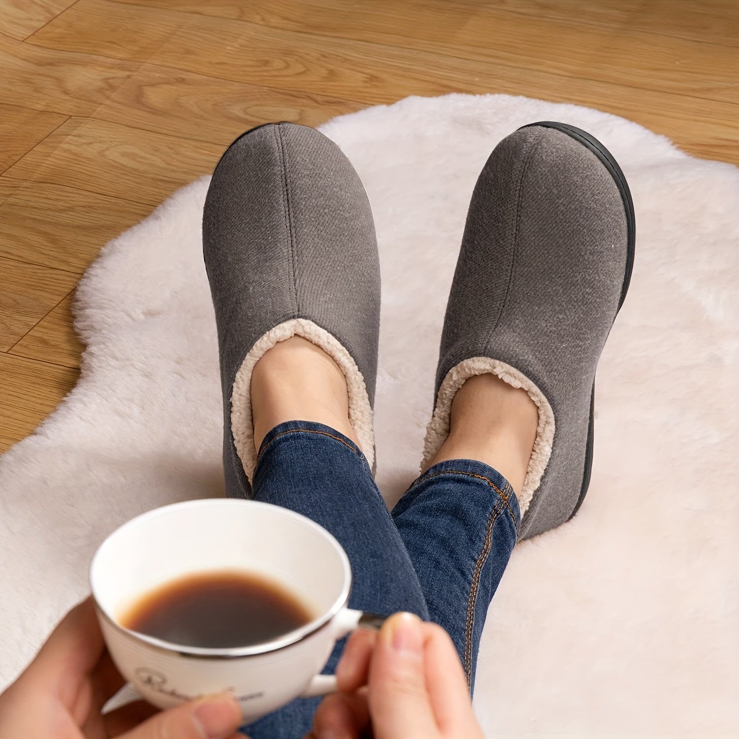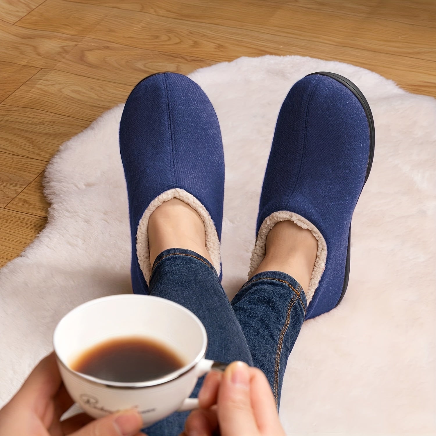 Ayollar uchun fleece bilan qoplangan ichki shlyapki, sirpanishga qarshi rezina taglik, ko‘k