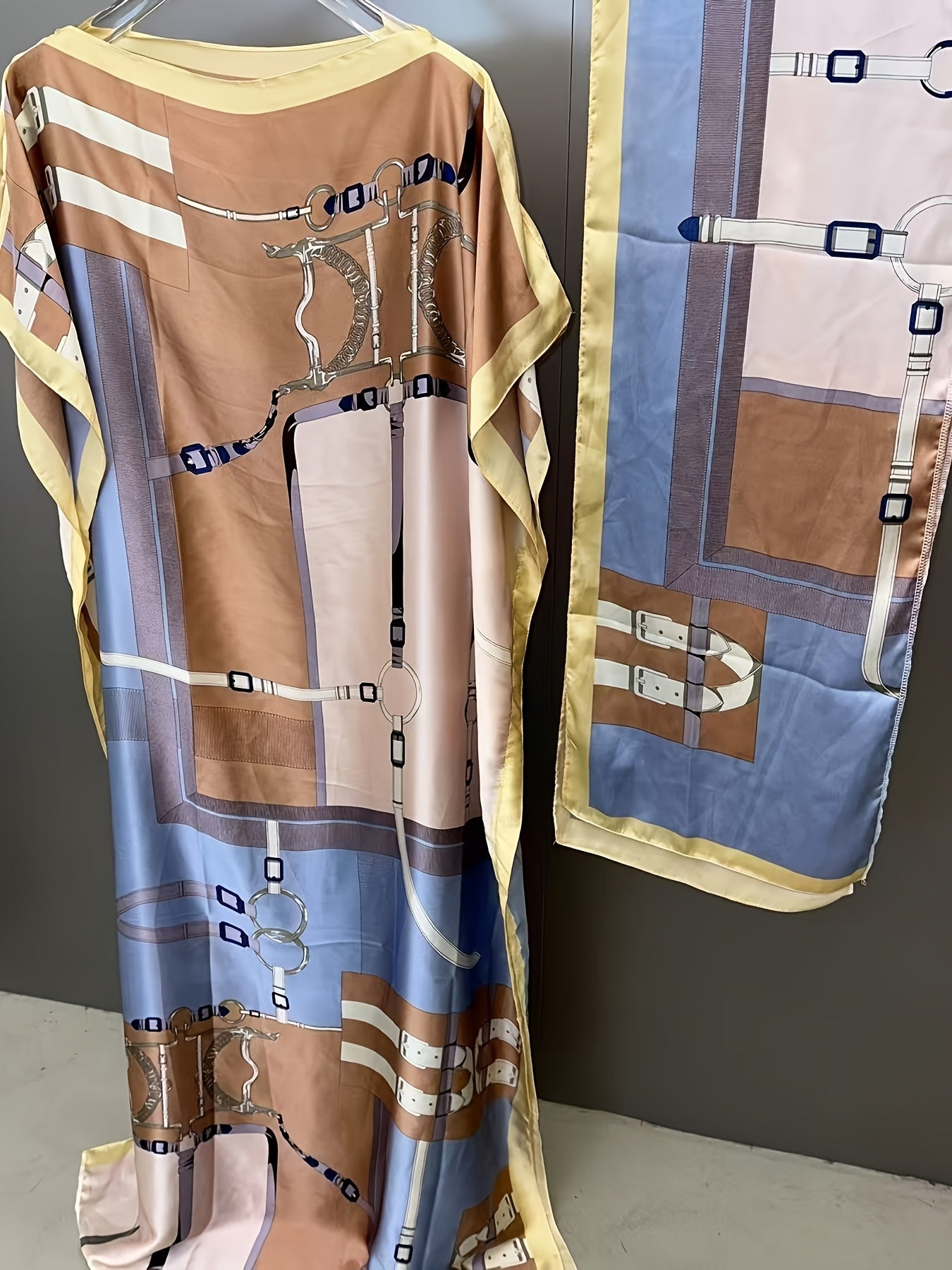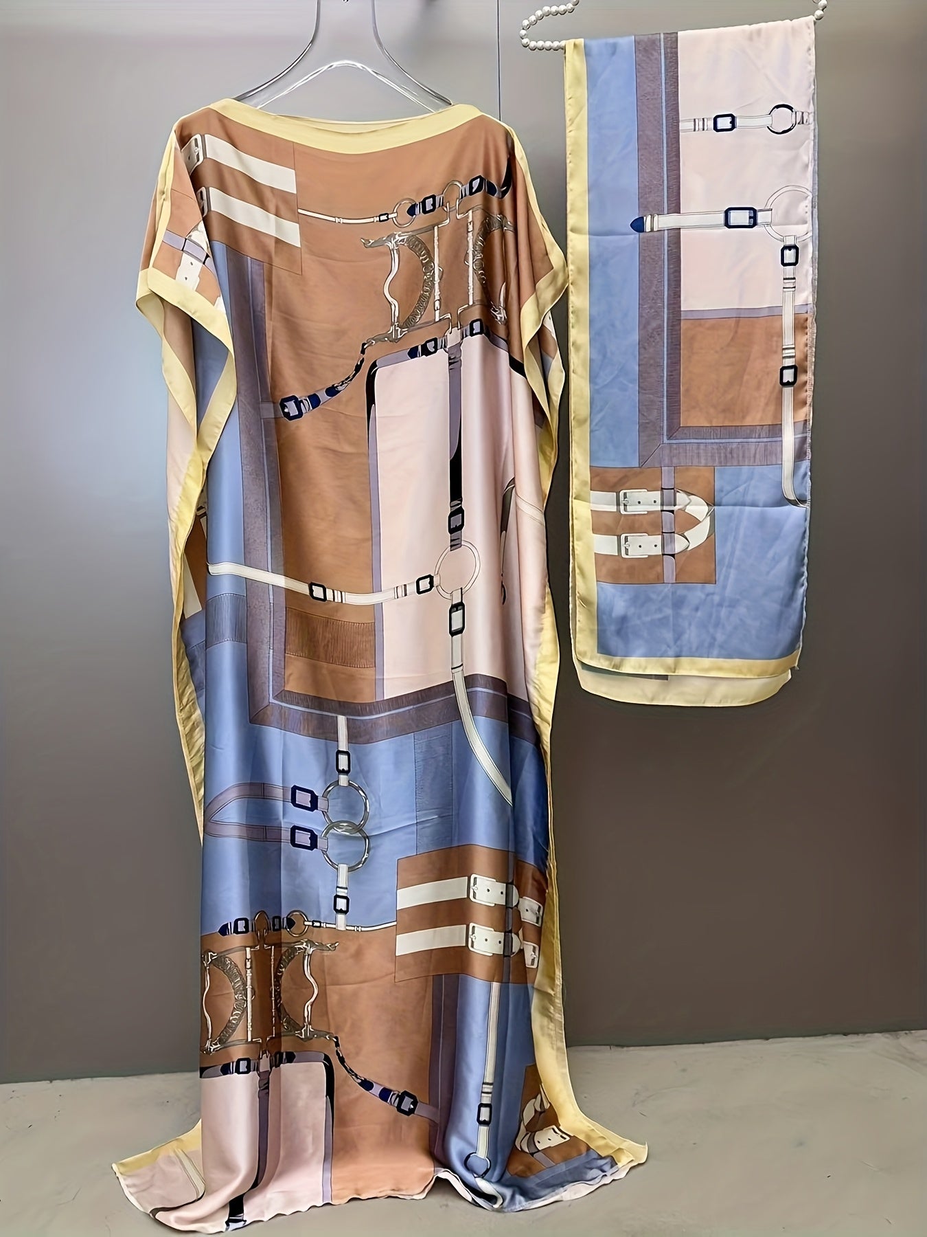 Women's Floral Print Abaya Maxi Dress Loose Fit Batwing Sleeves Summer Fashion