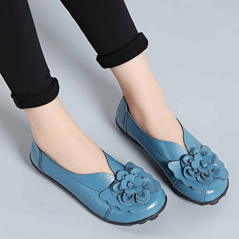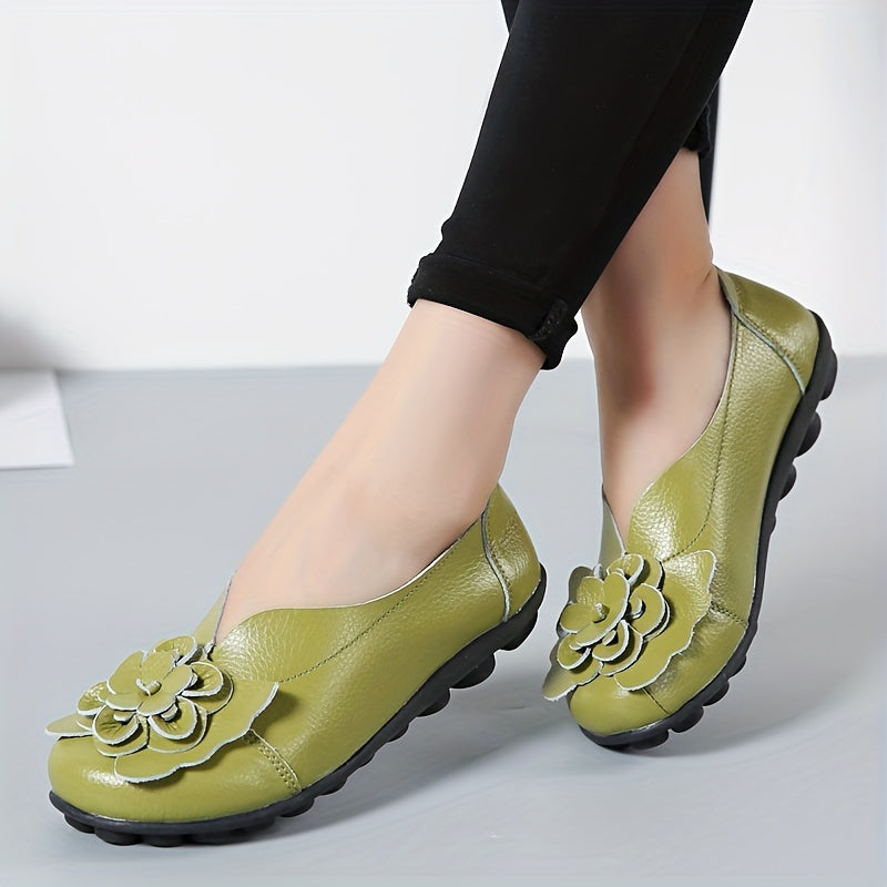 Ayollar uchun gulli bezakli tekis poyabzal, bir xil rangli, osongina kiyinadigan loaferlar