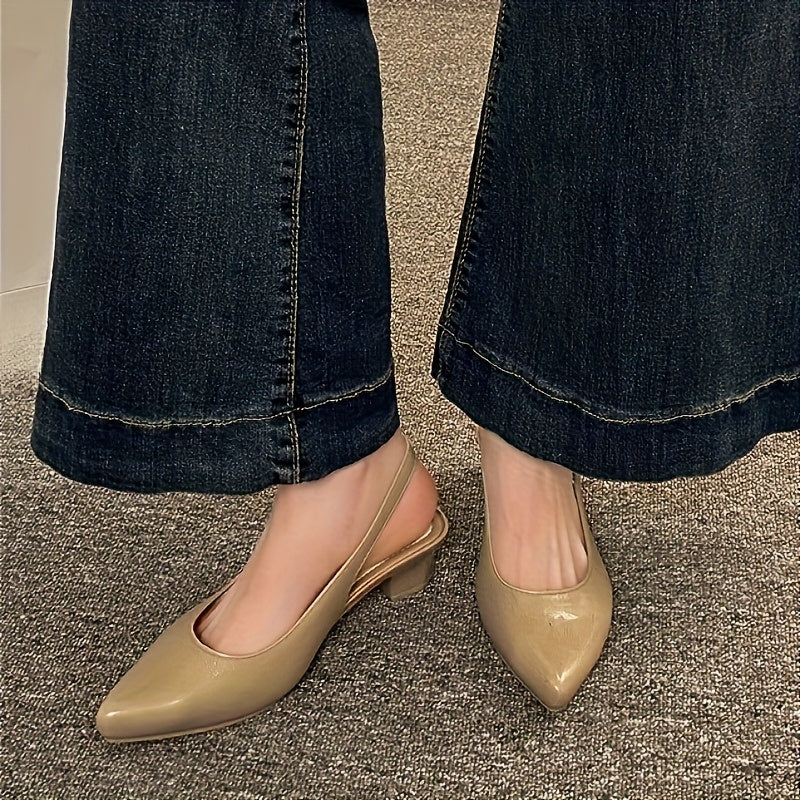 Ayollar uchun fransuz ilhomlangan burunli poyafzal, o'rta balandlikdagi EVA g'ishtli poyabzal, qora va sariq
