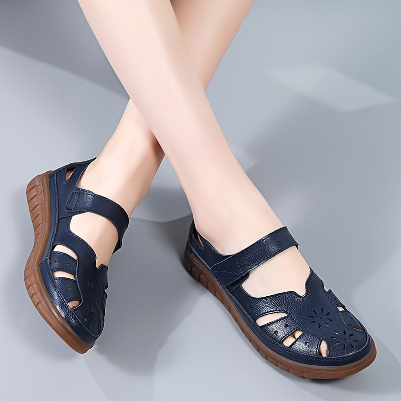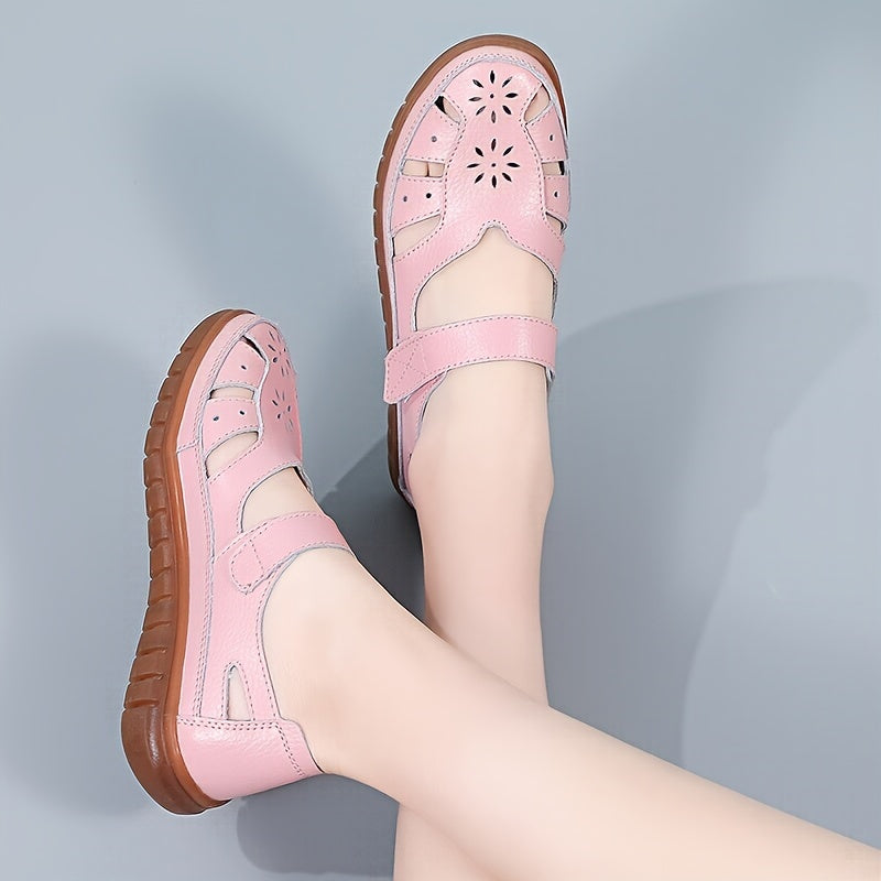 Ayollar uchun haqiqiy charm sandallar, yumshoq taglik, kesilgan dizayn, tasodifiy va havodor.