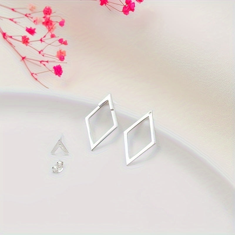 Ayollar uchun geometrik ikki qavatli olmosli sirg‘alar minimalistik zamonaviy zargarlik