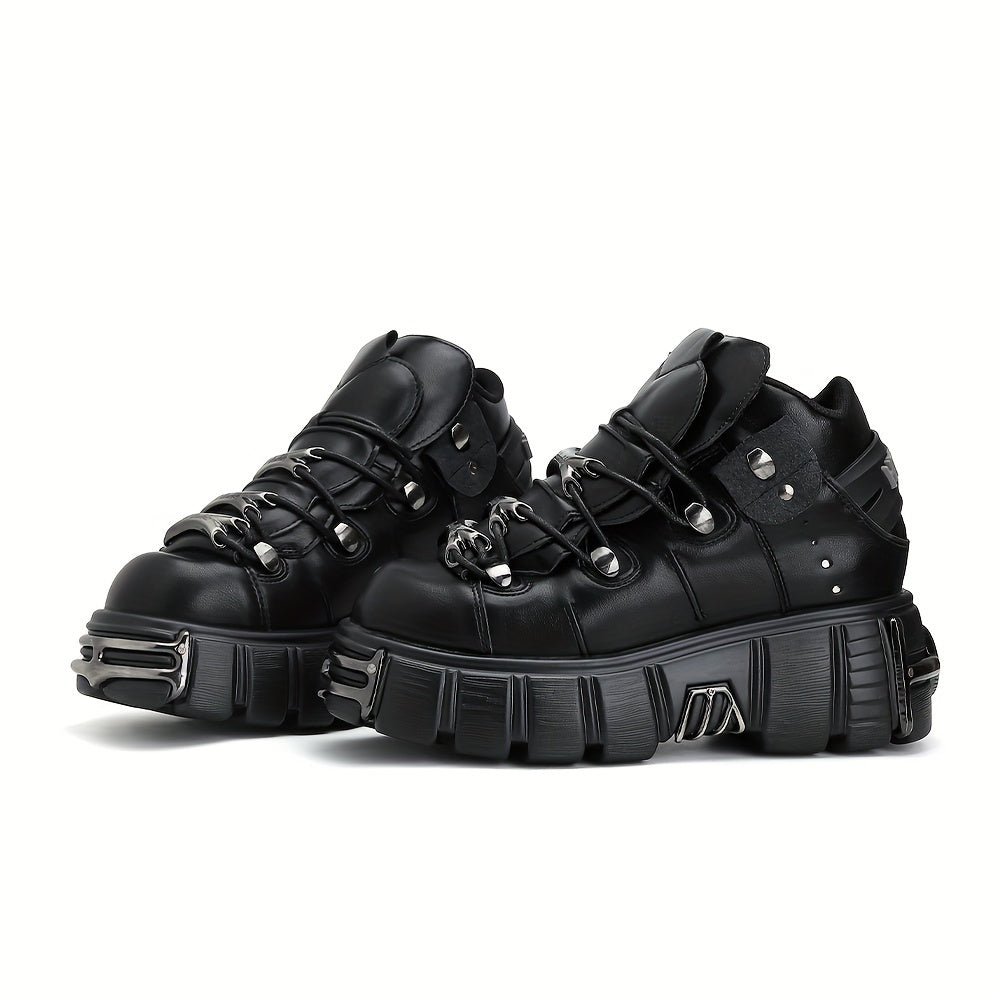 Ayollar uchun Gothic Punk tekis tagli sport poyafzallari metall aksentlar bilan