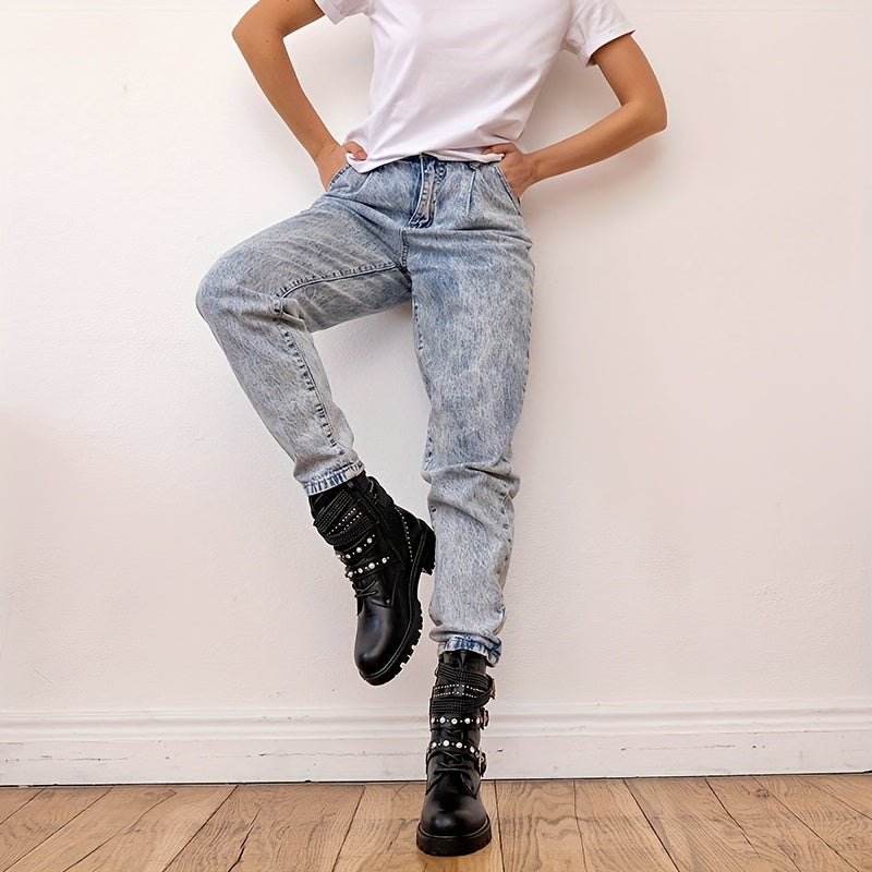 Women's Gothic Punk Motorcycle Boots Faux Leather Chain Zipper Black Chunky Platform