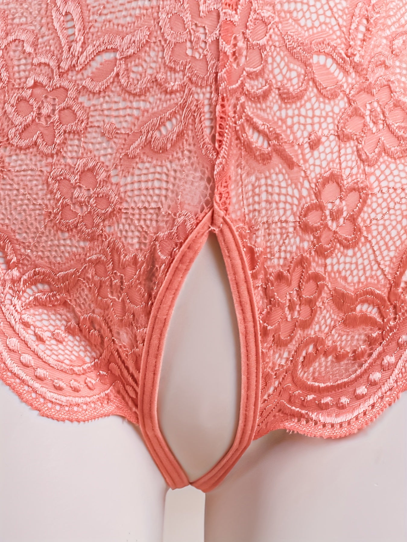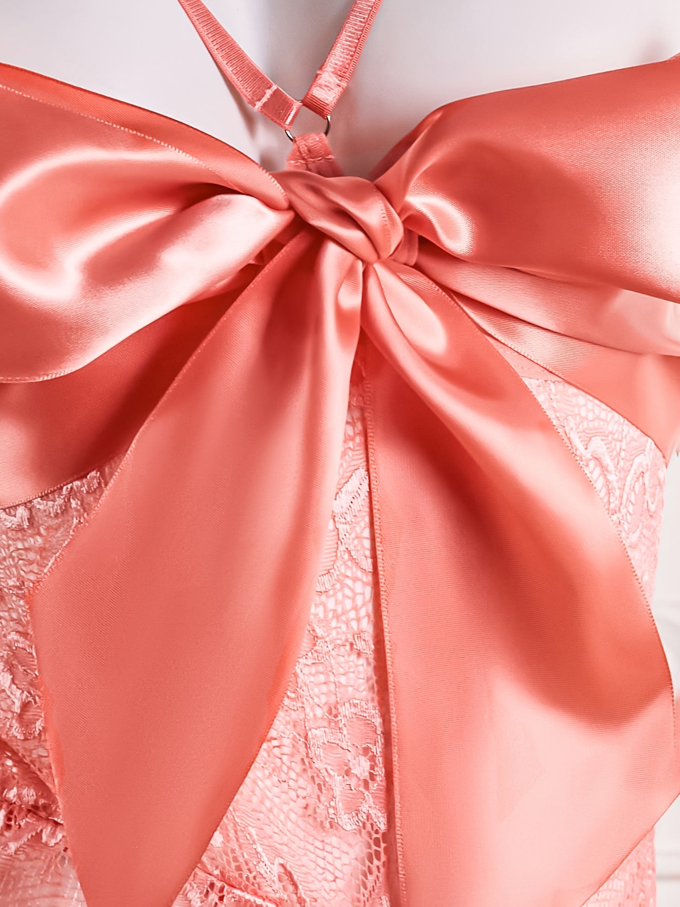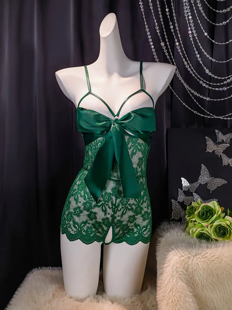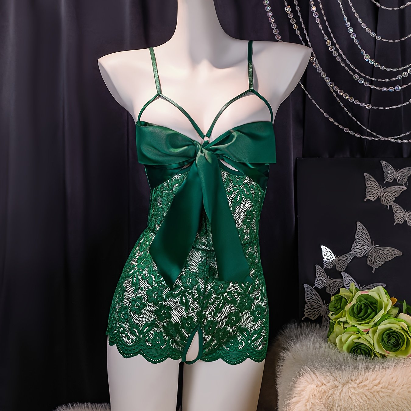 Ayollar uchun katta bo'sh joyli kamon bog'ichli dantel bodysuit, yengil qo'llab-quvvatlovchi mato, 88% poliamid va 12% elastandan tayyorlangan, to'ldirishsiz, 14-fevral uchun ideal.