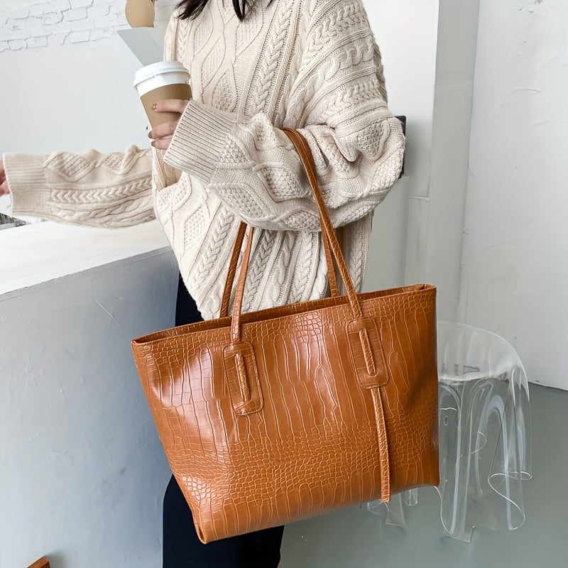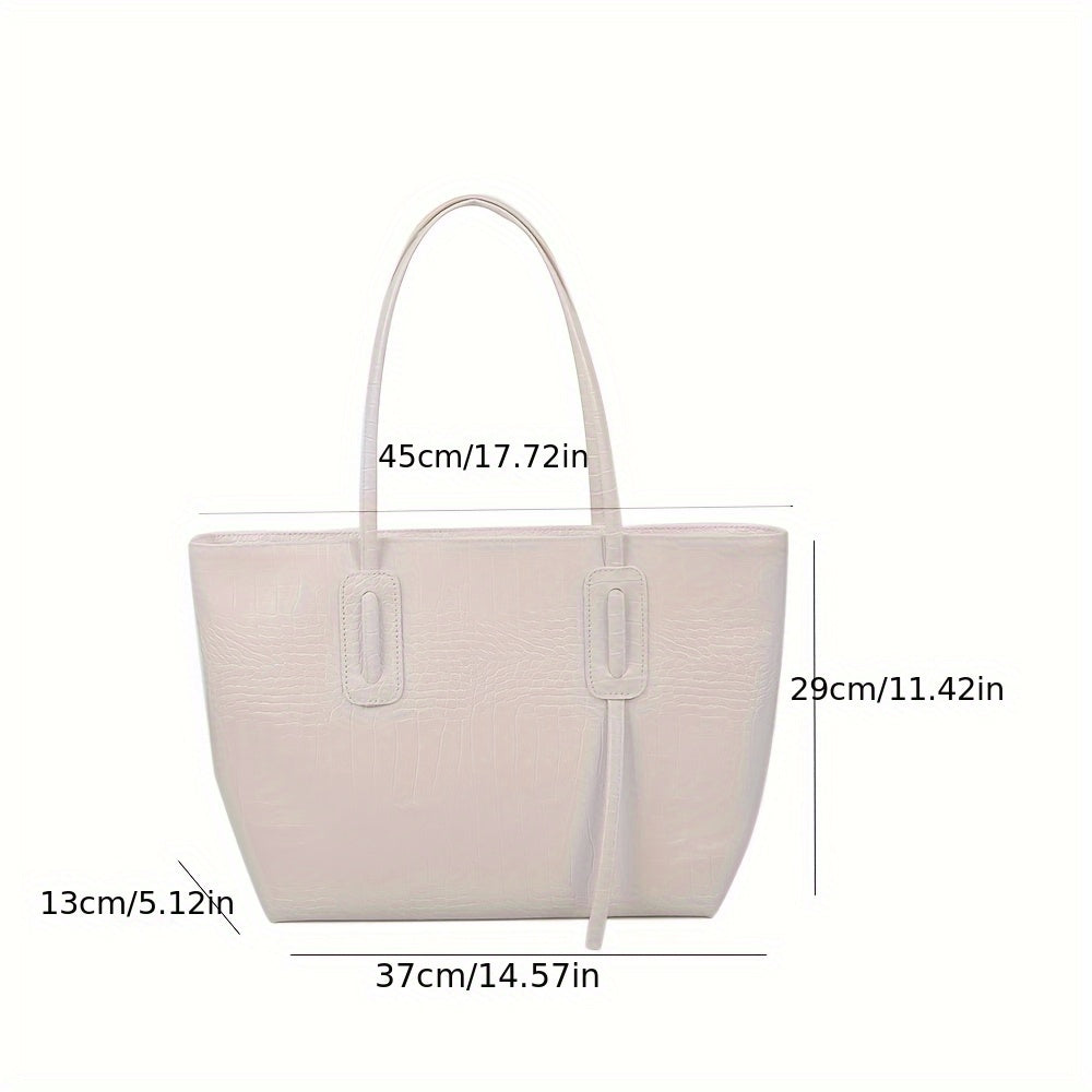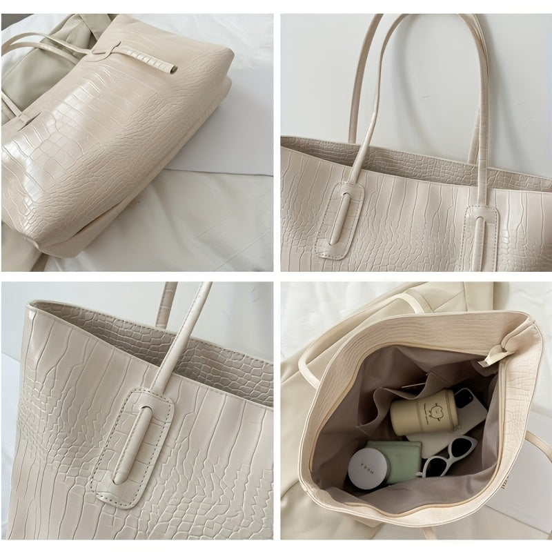 Ayollar uchun katta sig'imli to'plam sumkasi, krokodil naqshli sintetik charm, zip yopilishi, qora va bej rang variantlari, har kuni foydalanish uchun ideal.