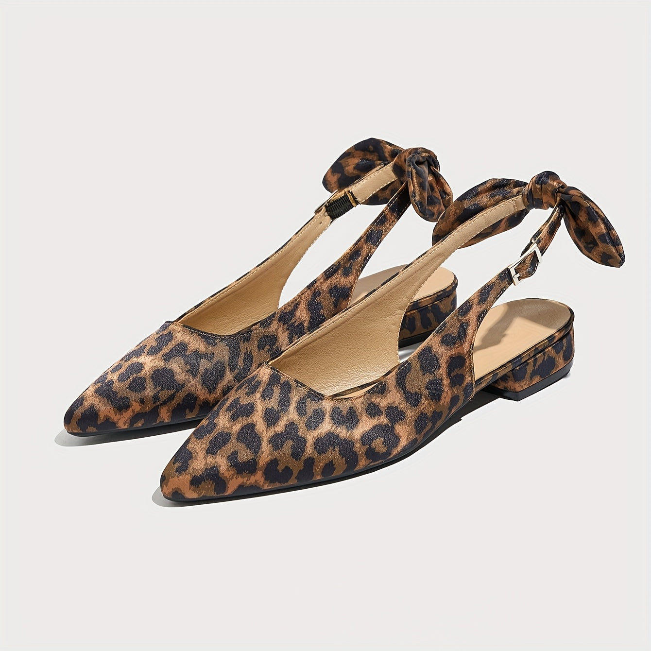 Women's Leopard Print Slingback Sandals with Bowknot, Pointed Toe, Low Heel