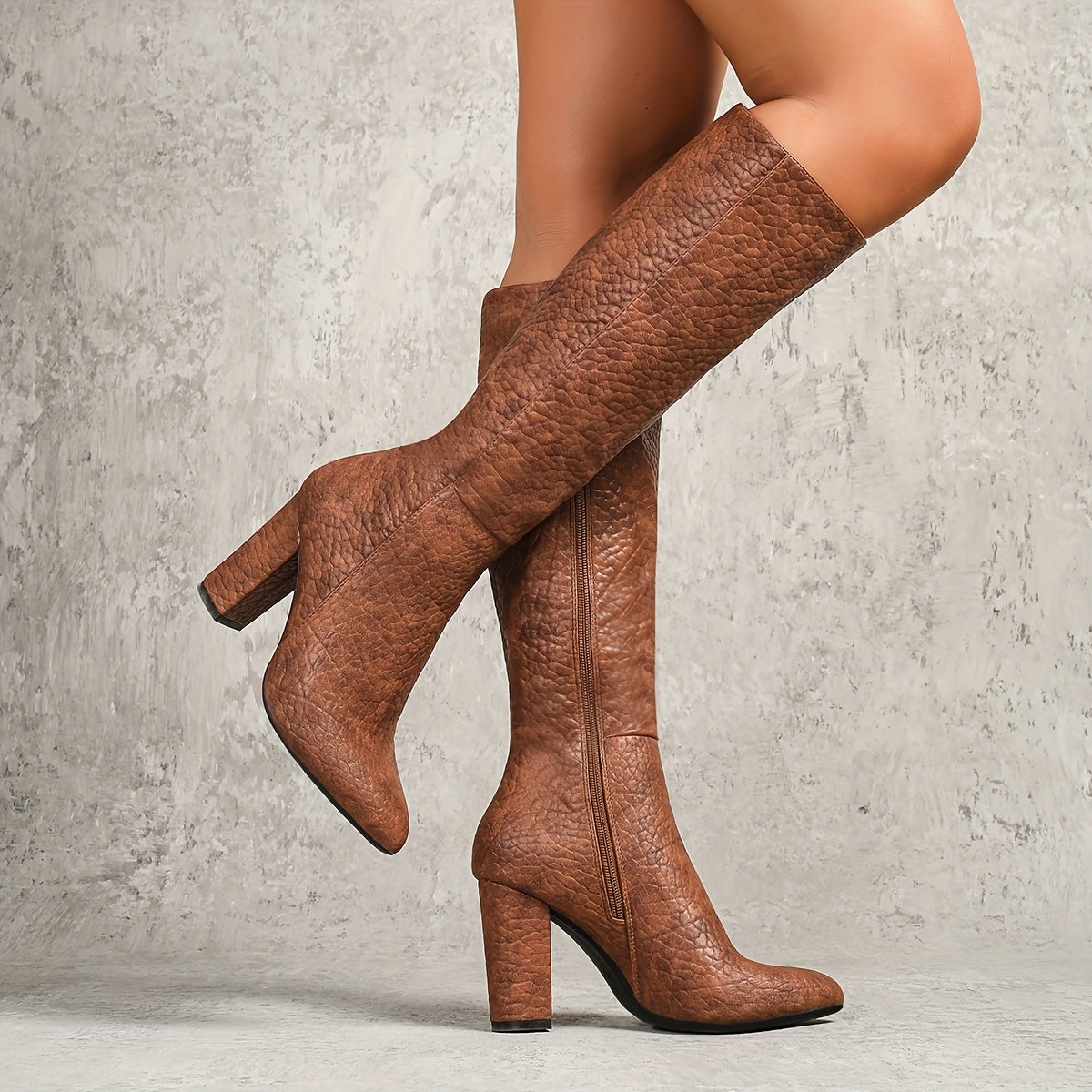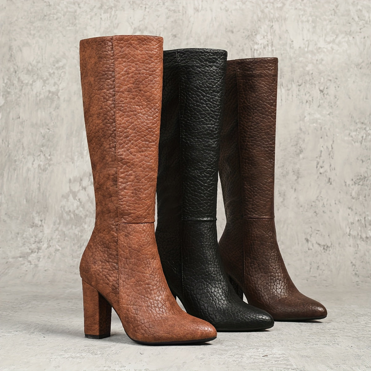 Ayollar uchun yengil rangli slip-on tizzaga chiqadigan botinkalar, qattiq tovoq bilan, kuz va qish uchun
