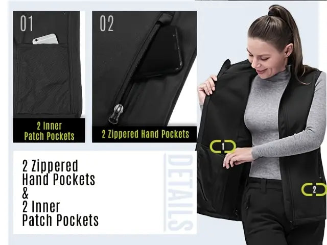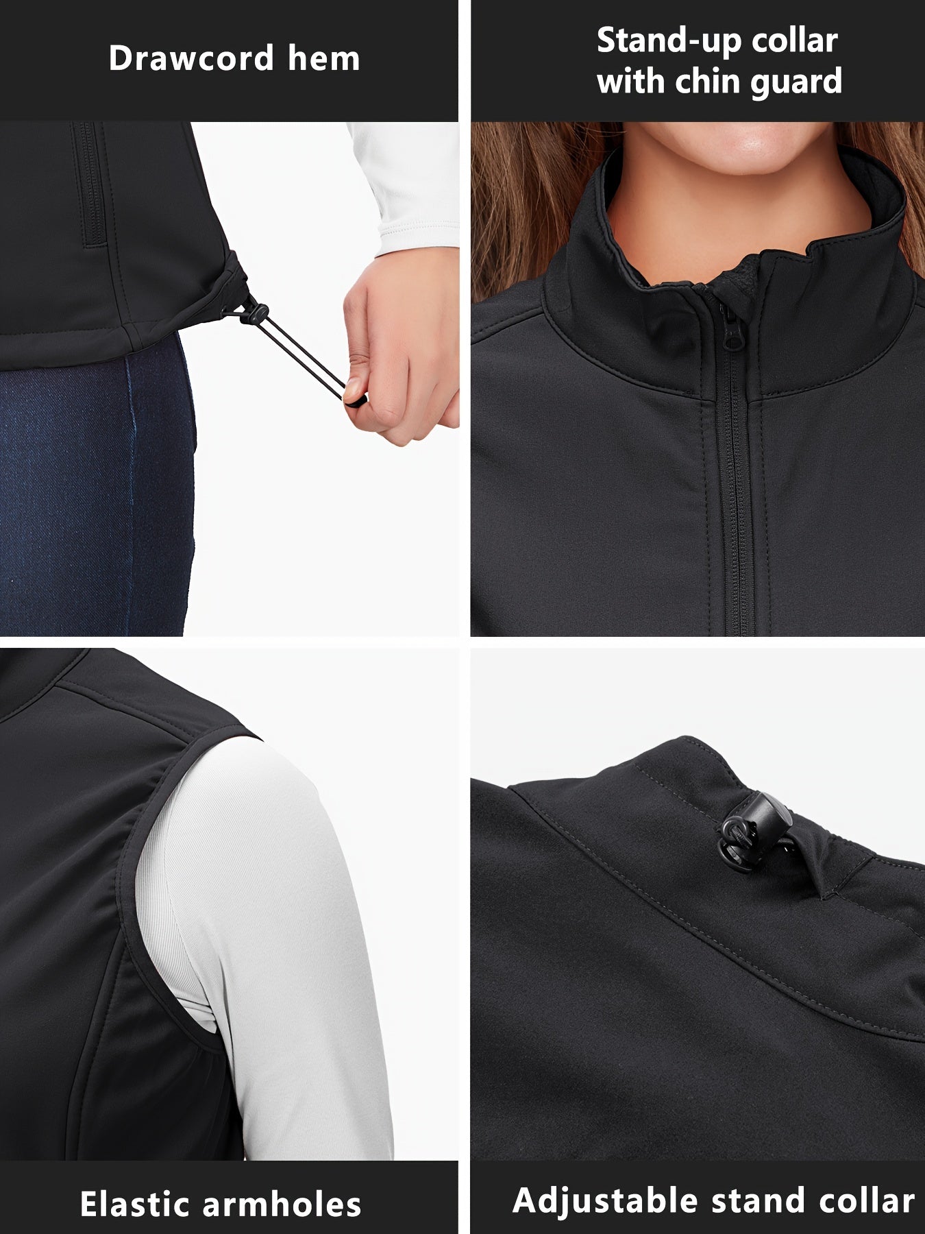 Women's Lightweight Softshell Vest Windproof Fleece Lined Zipper Pockets