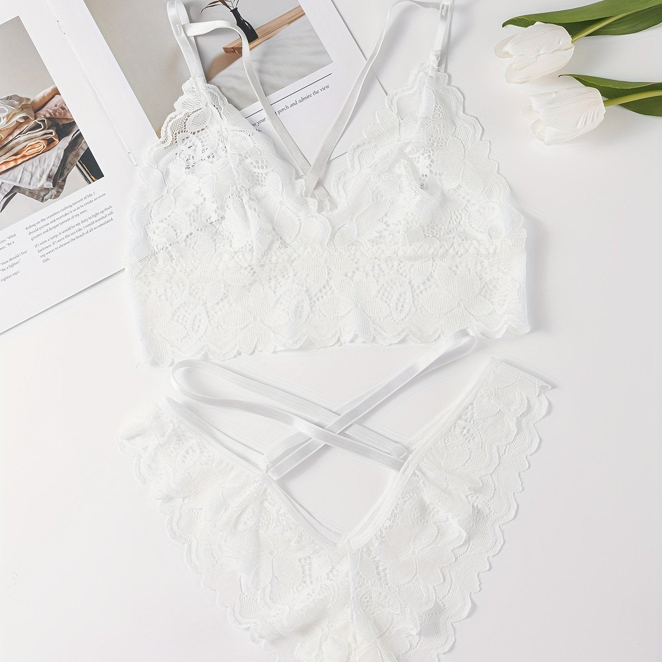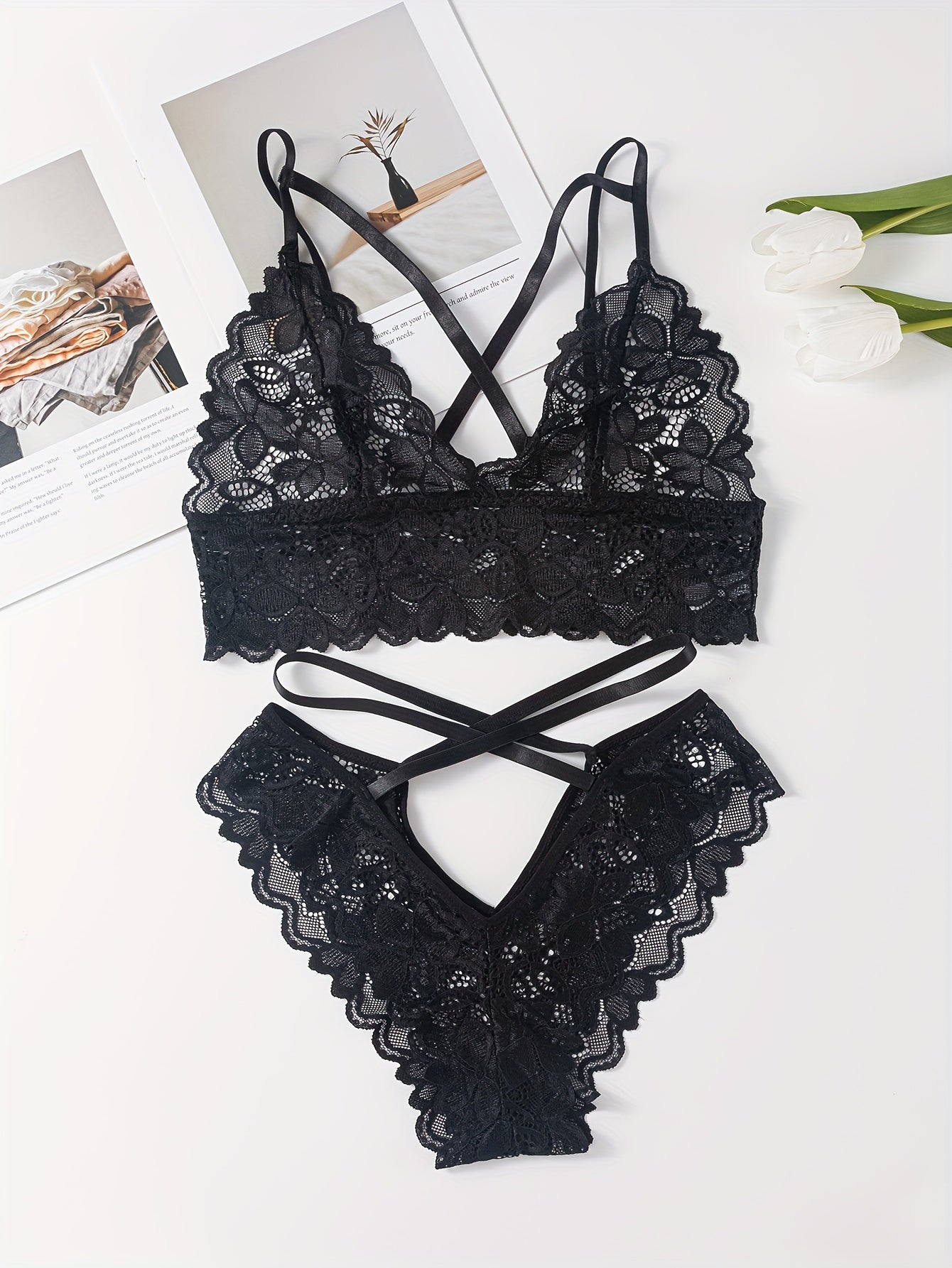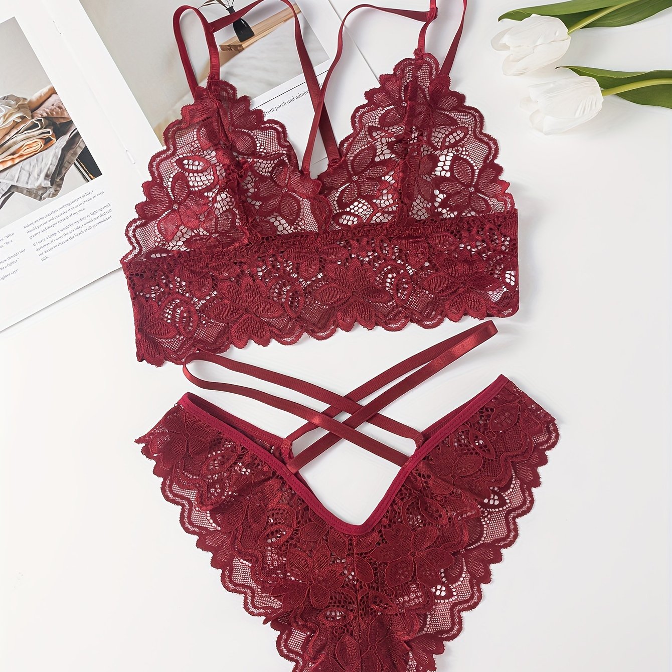 Ayollar uchun gullar bilan bezatilgan dantel brasi va ichki kiyimlar, qirralari qiyshiq brasi va kesilgan ichki kiyimlar.