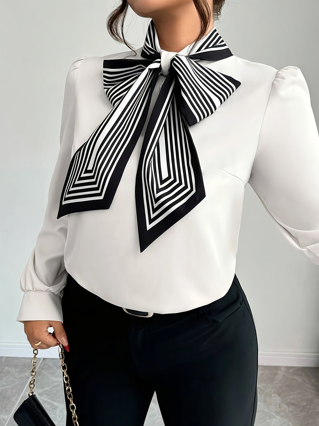 Women's Long Sleeve White Shirt With Bow Tie Spring Autumn Fashion