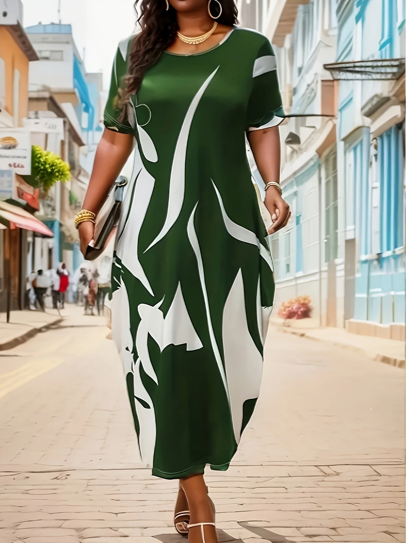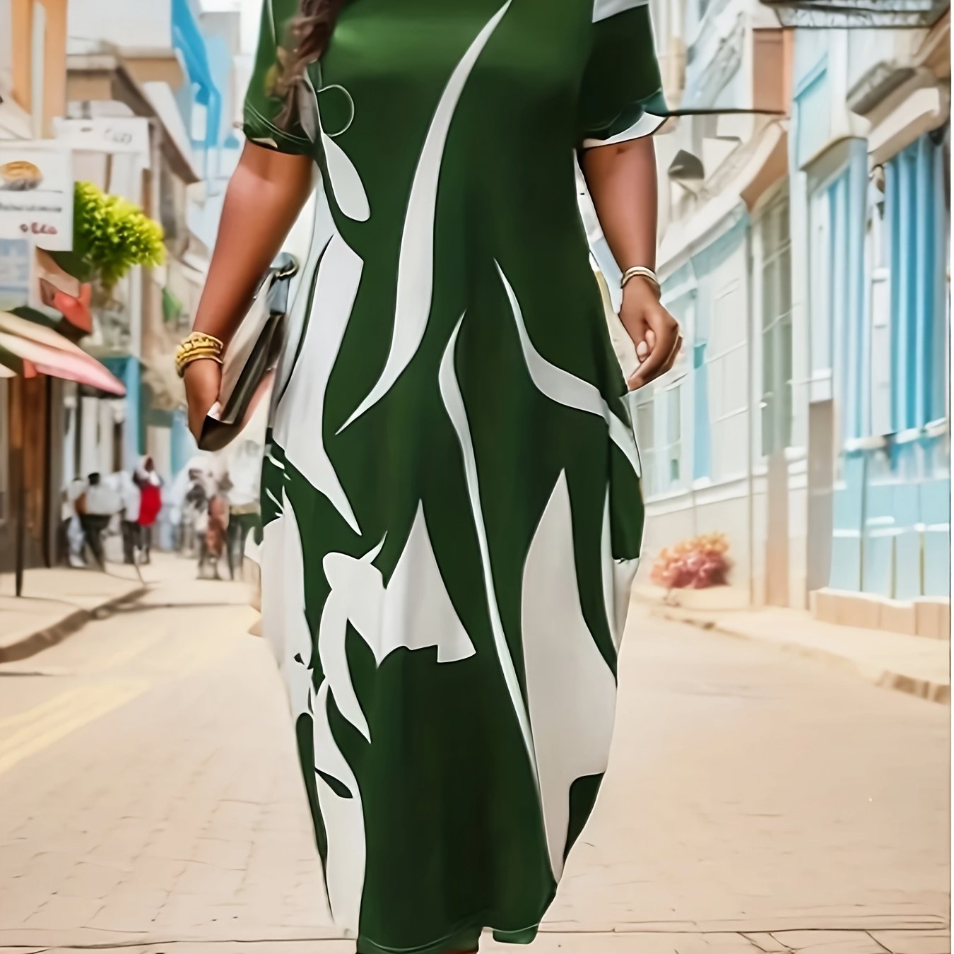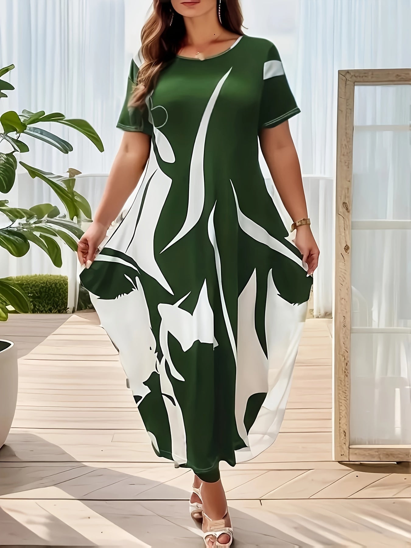 Ayollar uchun midi ko'ylak, tasodifiy krujka, qisqa yenglar, cho'ziluvchan mato, bahor/yaz uchun ideal