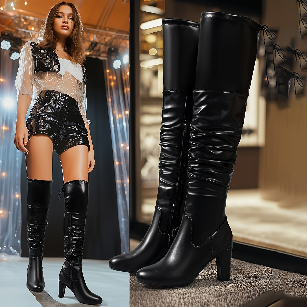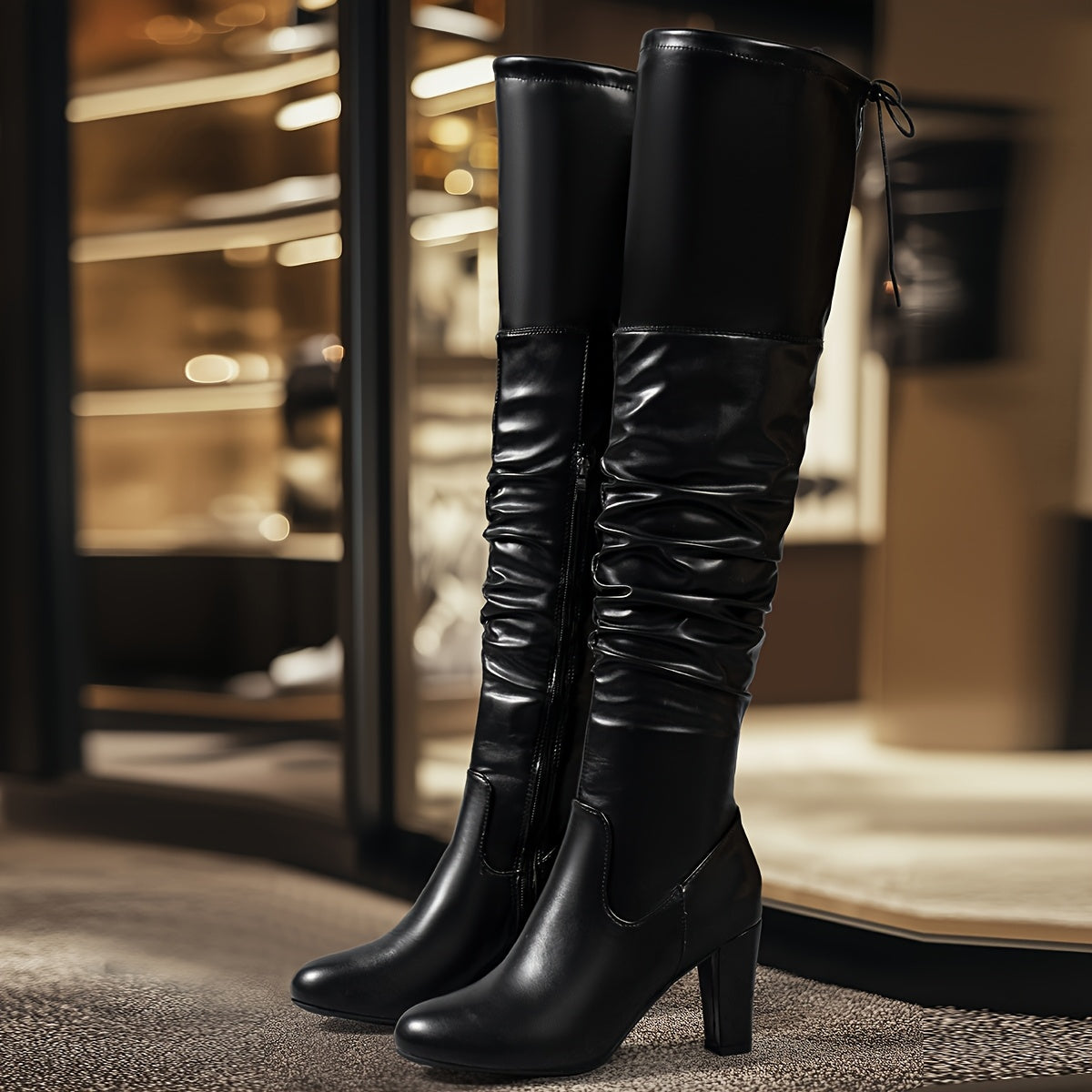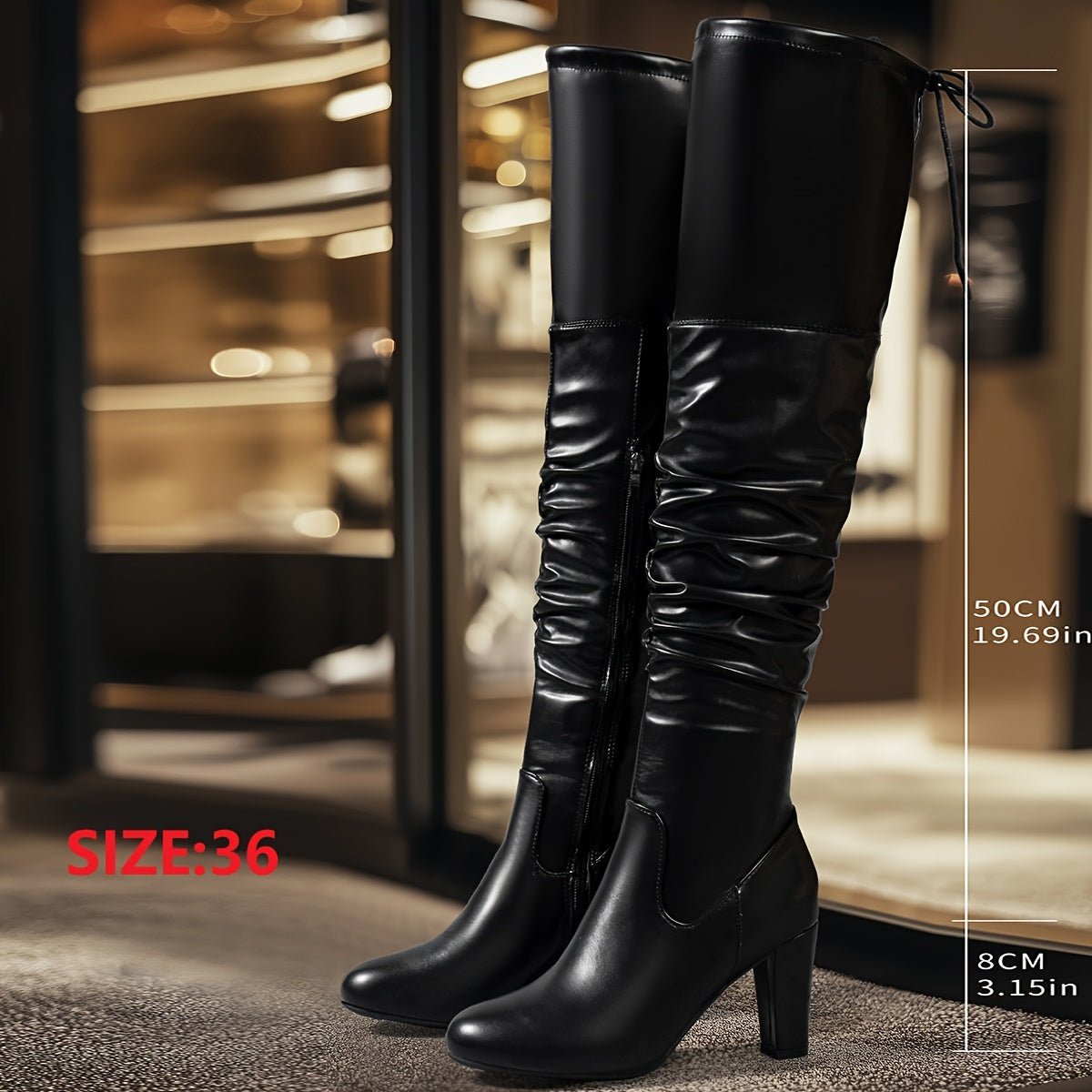 Ayollar uchun o'rtacha yuqori qadamli botlar, bir rangli, bodom barmoqli, blok poyabzal