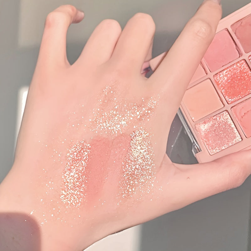 Ayollarlar uchun pushti ko‘zoynak palitrasi, 9 ta rang, mat, shaffof, talksiz, coral, nude