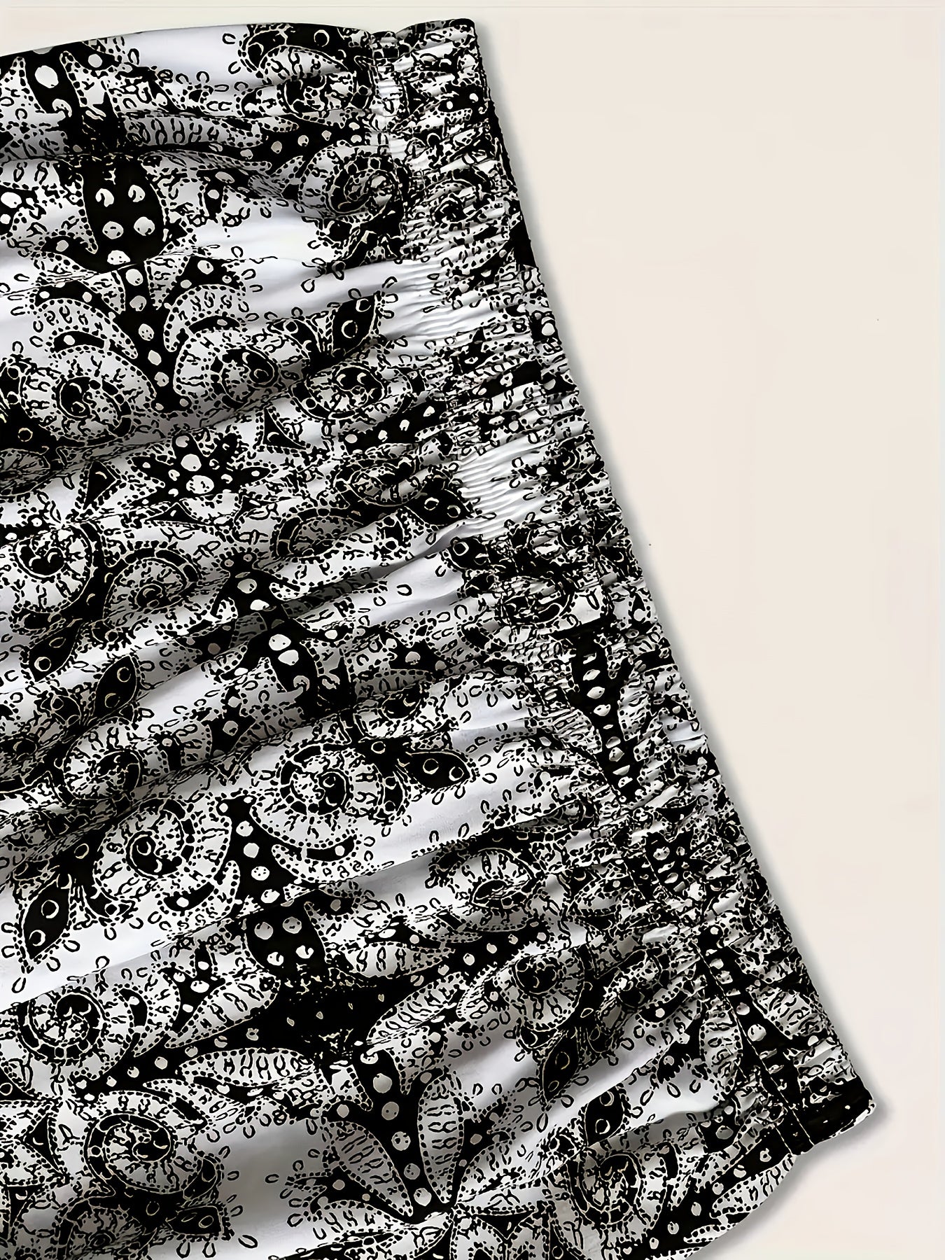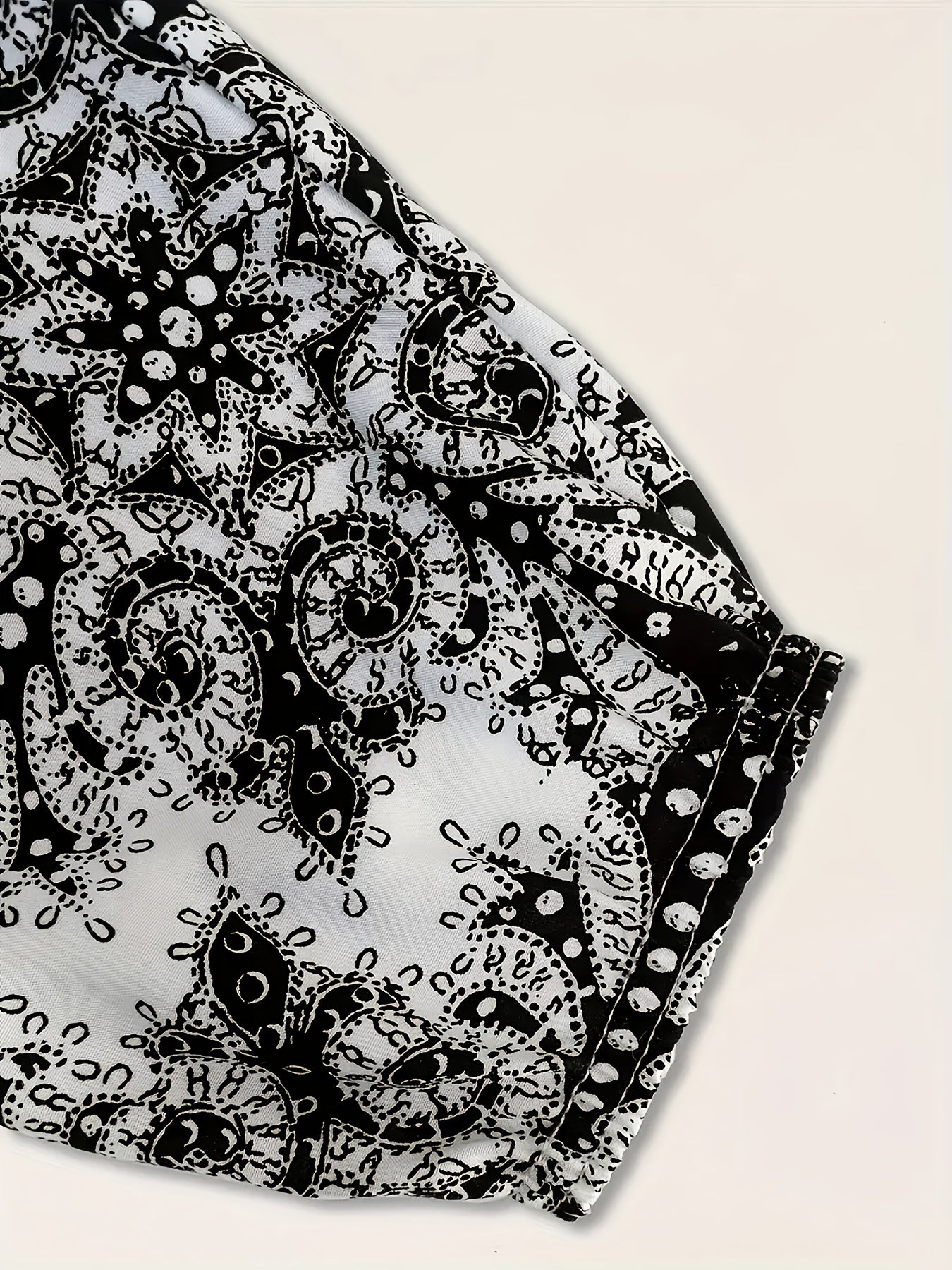 Women's Plus Size Bohemian Print Joggers Black White Tribal Loose Fit Pants