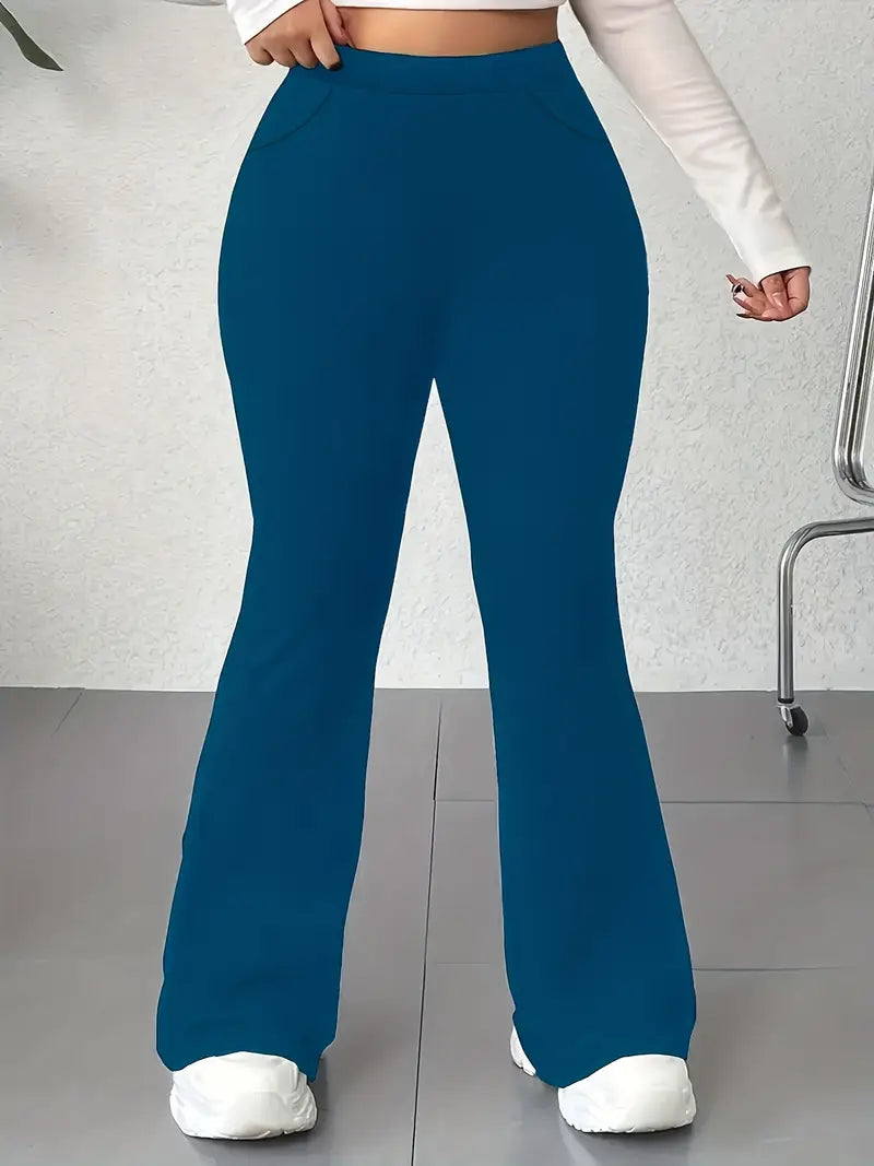 Women's Plus Size Flare Pants Lightweight Polyester Navy Blue High-Rise Elastic Waist