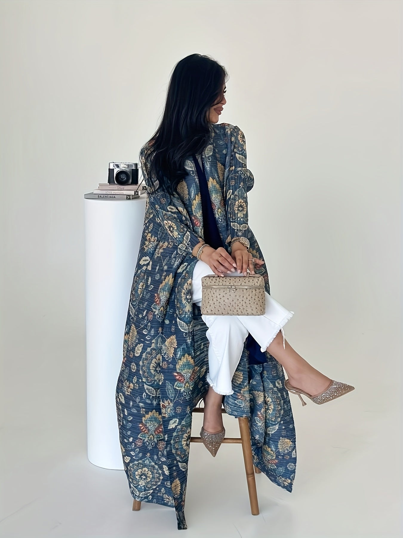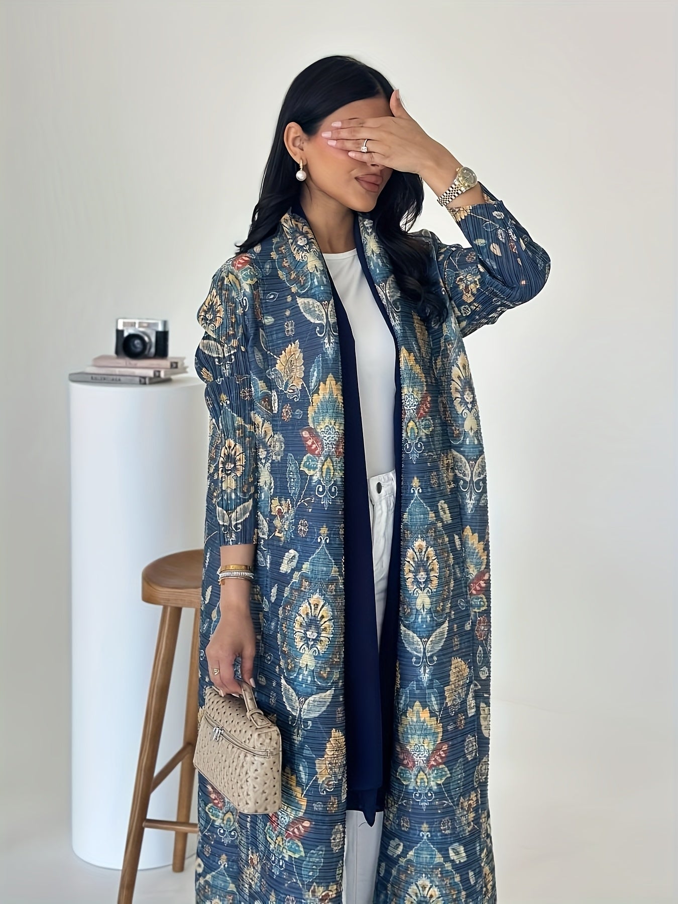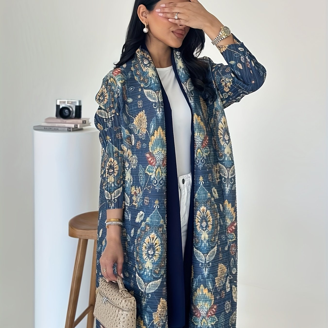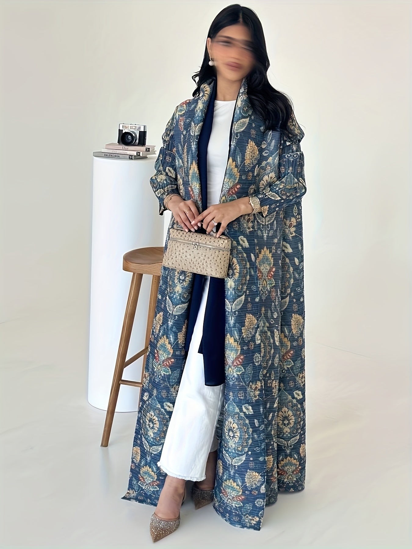 Ayollar uchun katta o'lchamli gullar bilan bosilgan uzun ro'mol nafas oladigan ta'til kiyimi