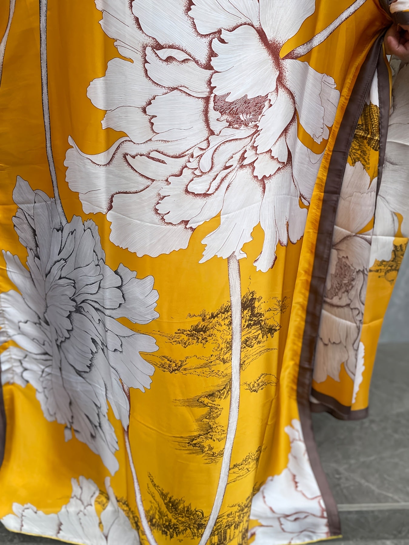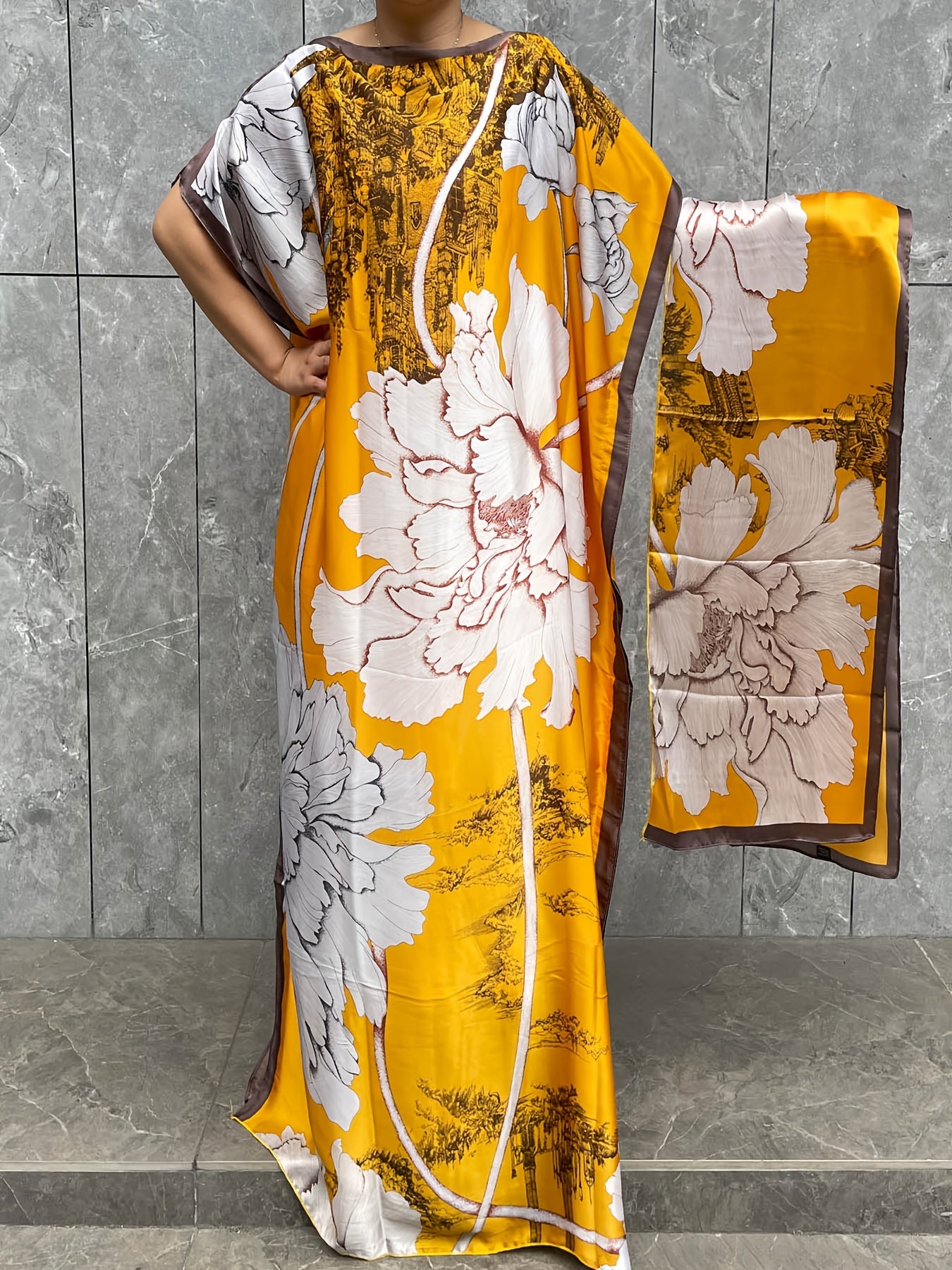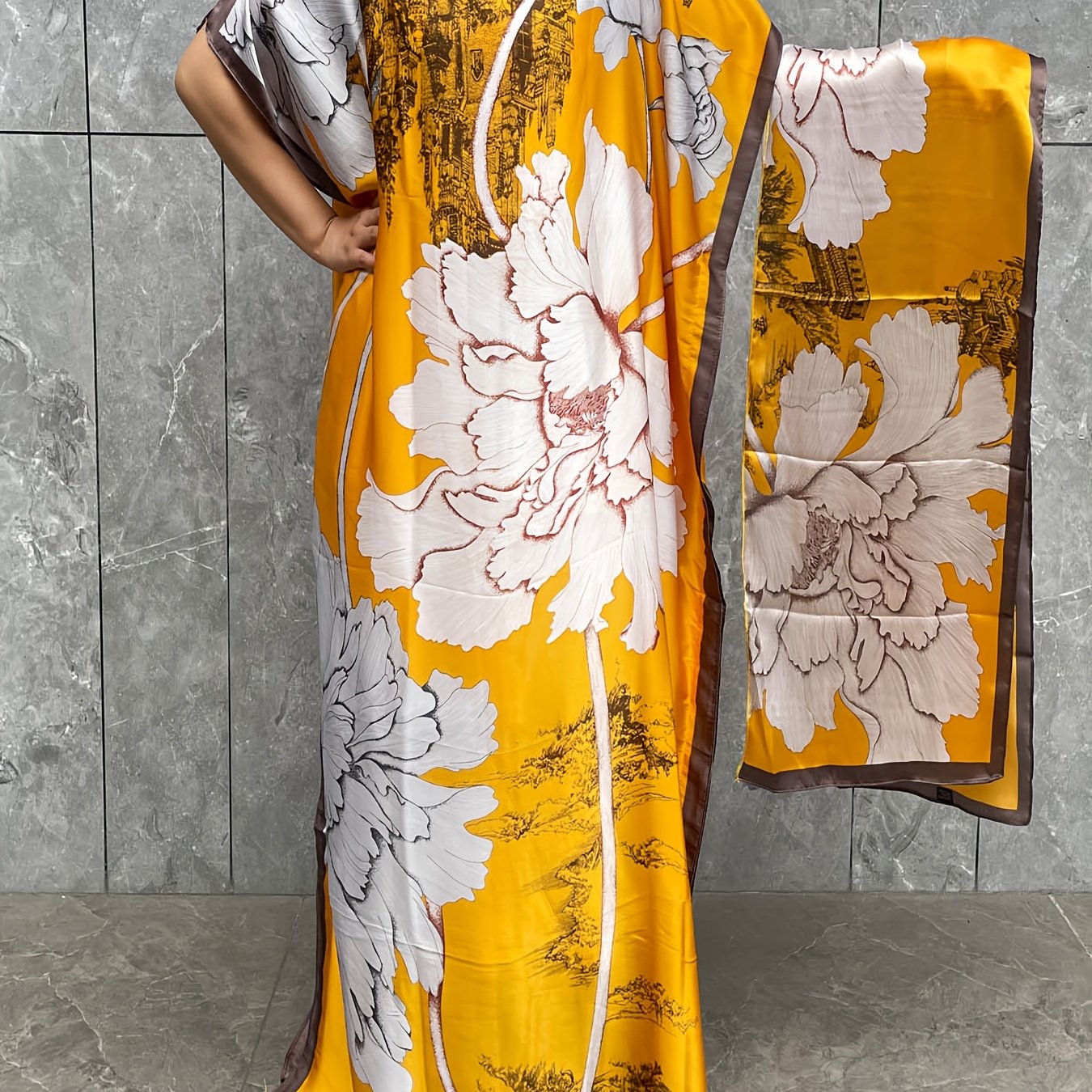Ayollar uchun katta o'lchamli gullar bilan bosilgan tunik kiyi, sharf bilan, polyester, erkin fit
