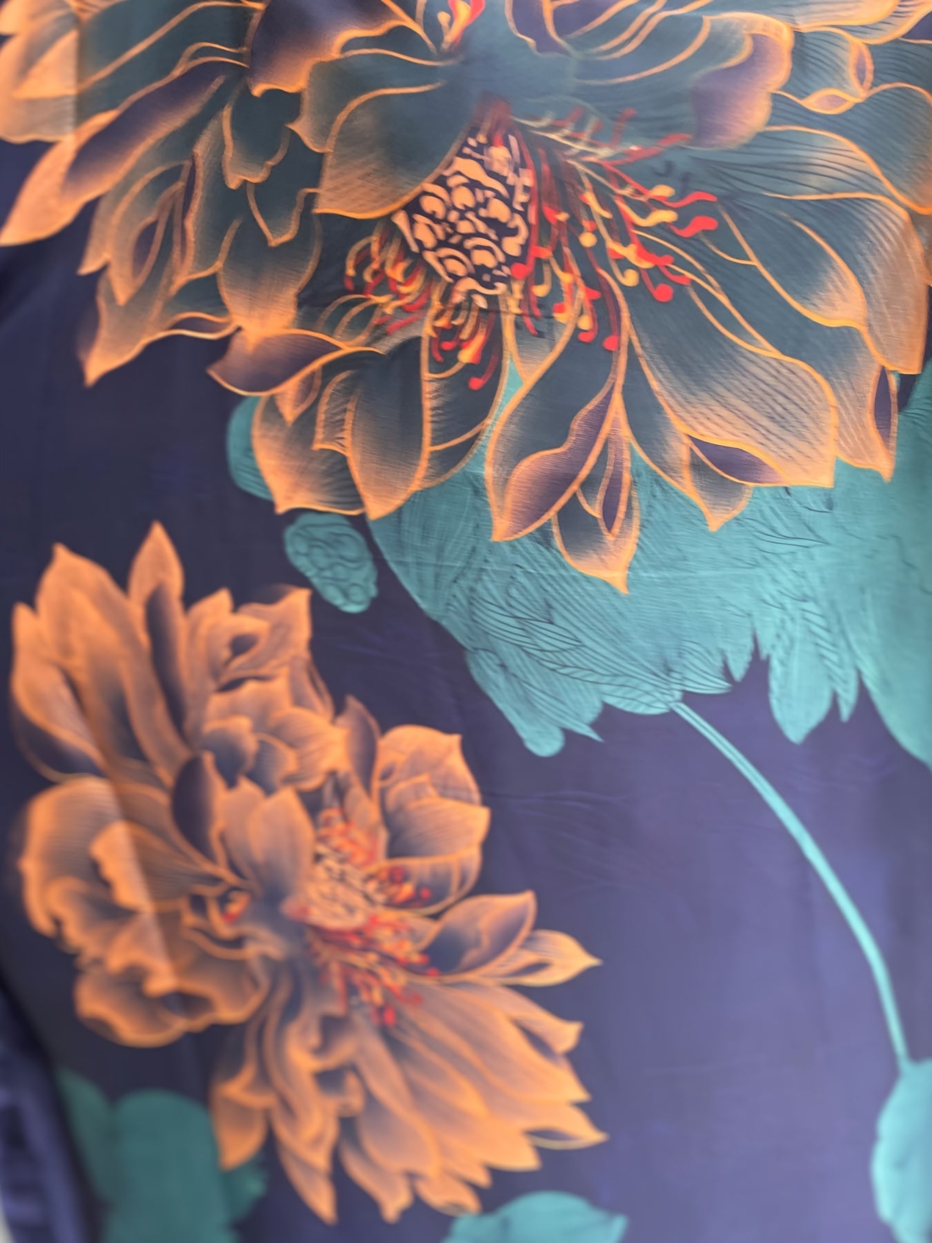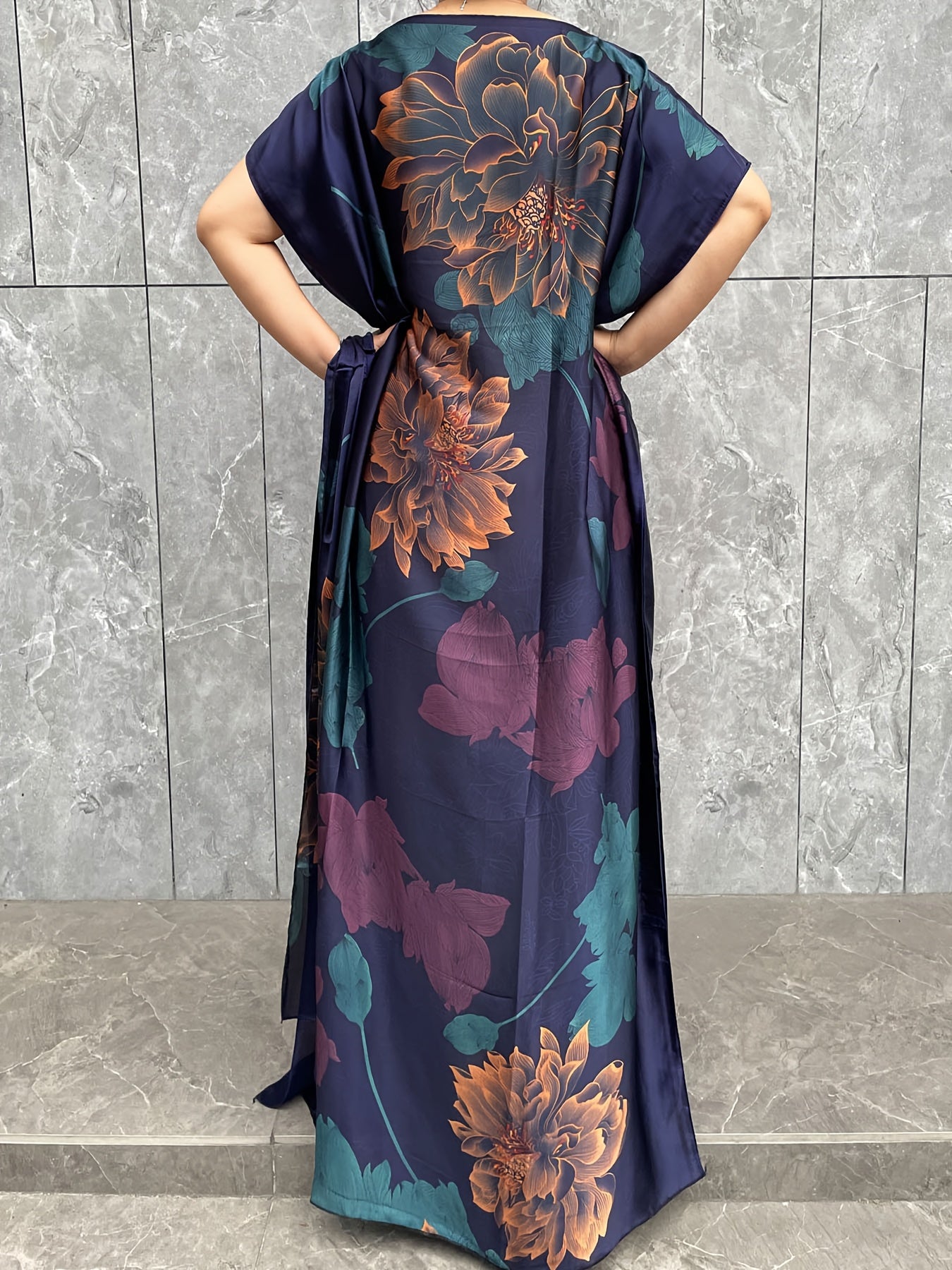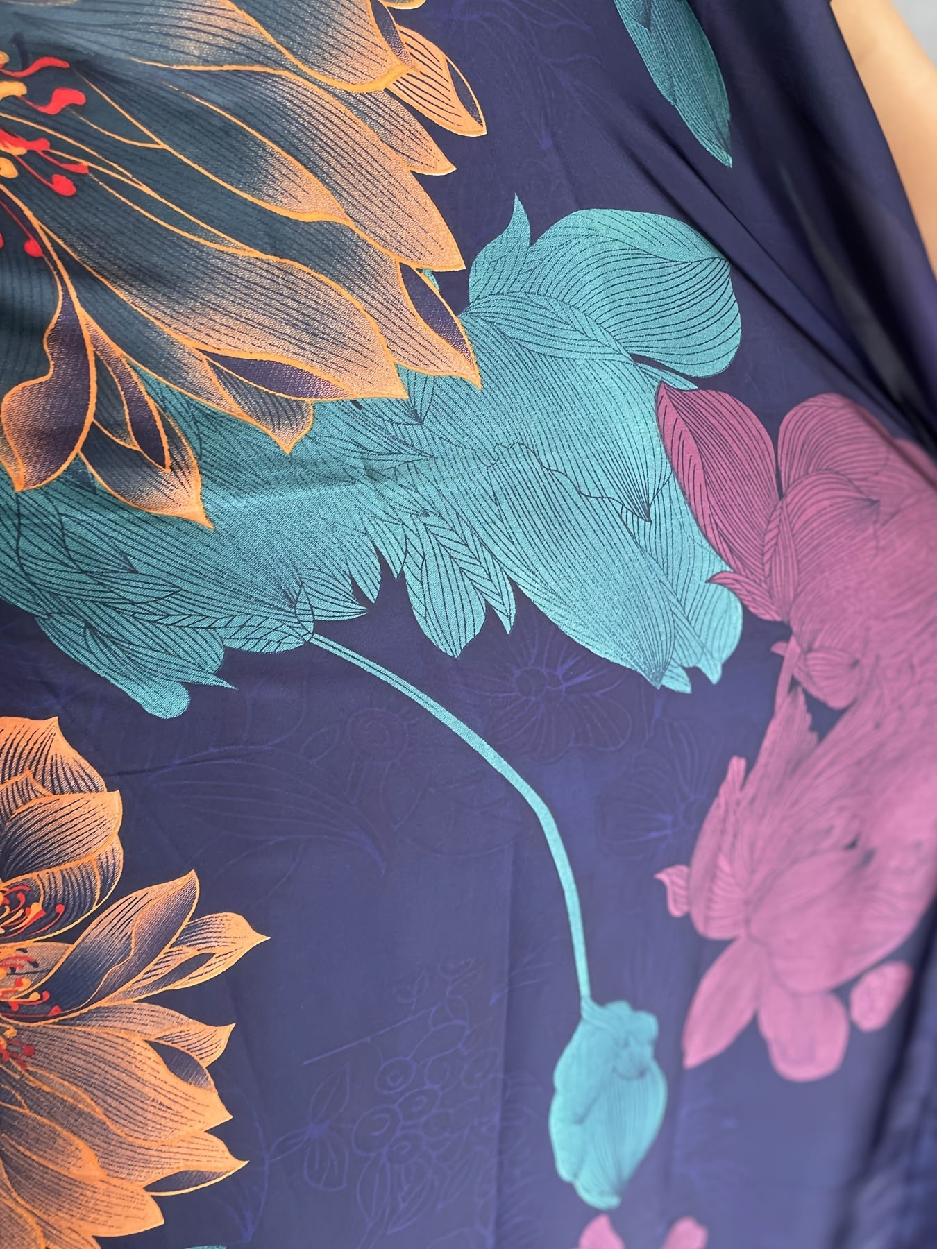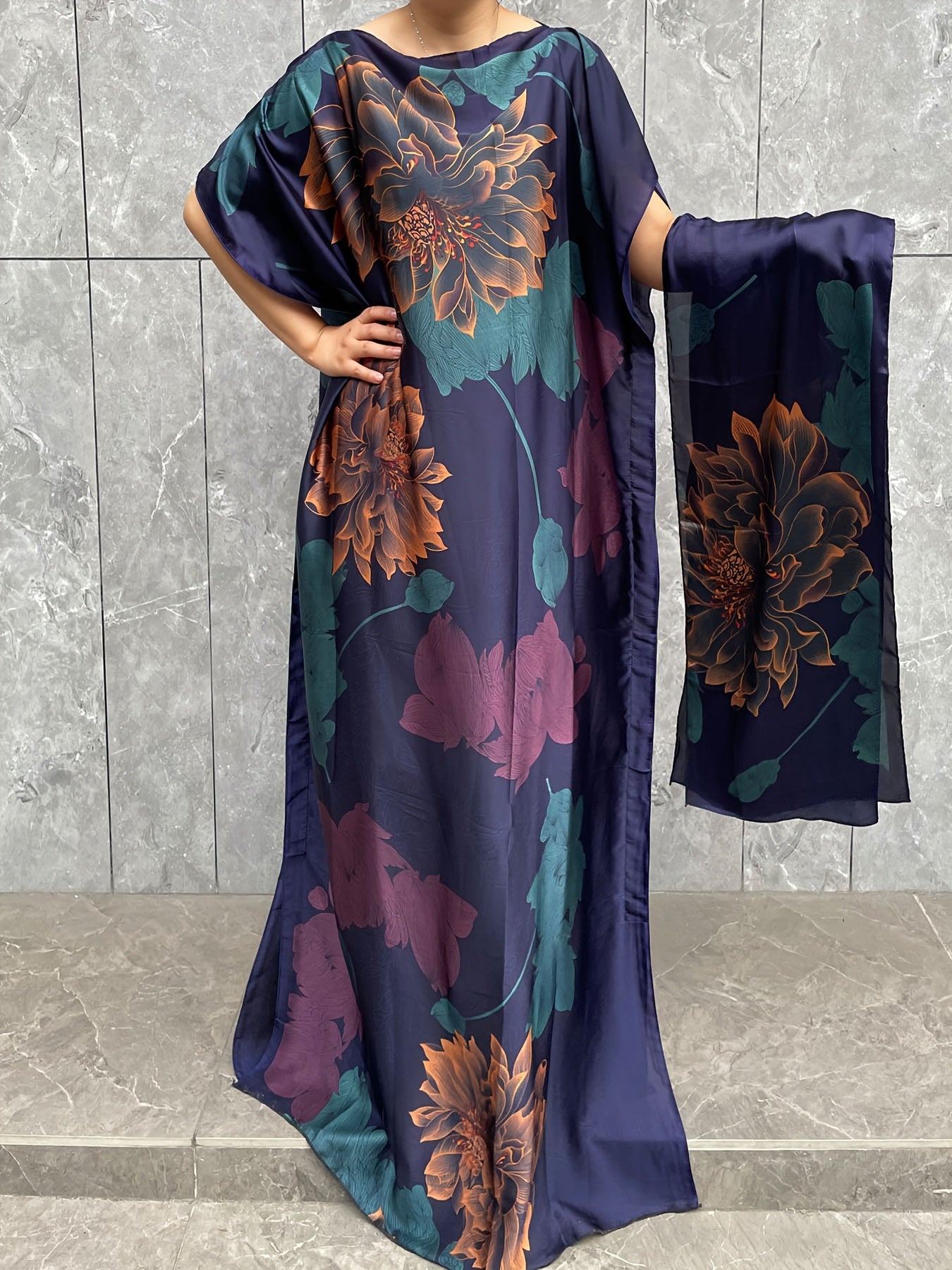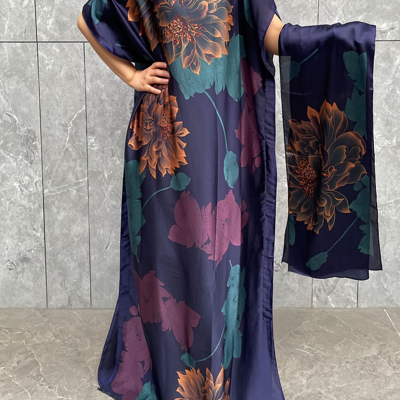 Ayollar uchun kattaroq o'lchamdagi gul naqshli tunika kiyiwi va sharf, polyester, batwing qo'lqopli, barcha mavsum uchun