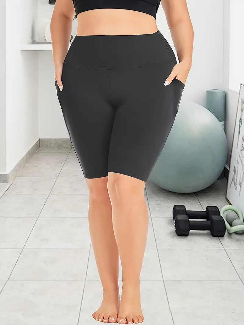 Ayollar uchun kattaroq o'lchamli yuqori belli Capri legginslar, elastik, bir rangli, cho'ntakli