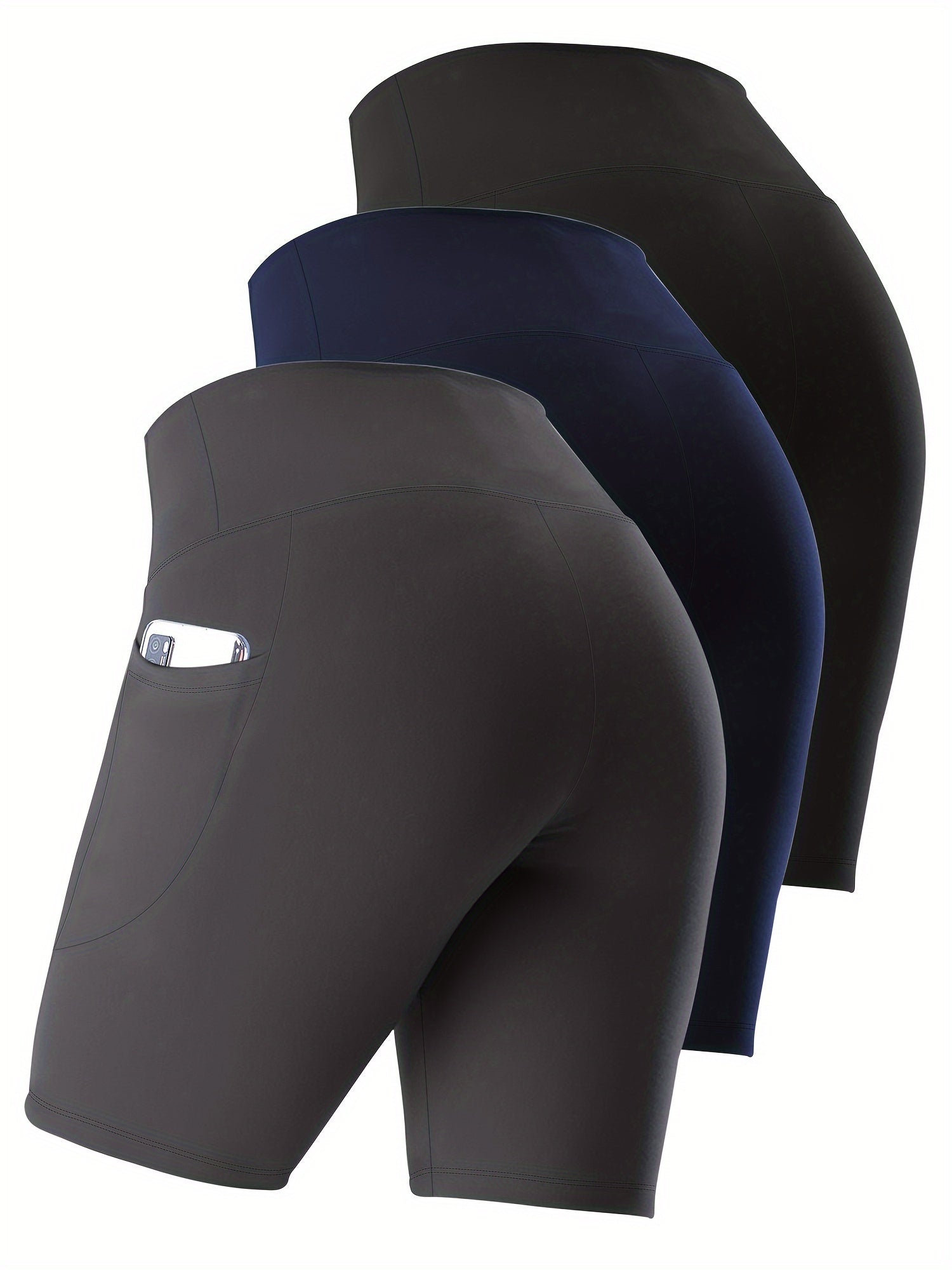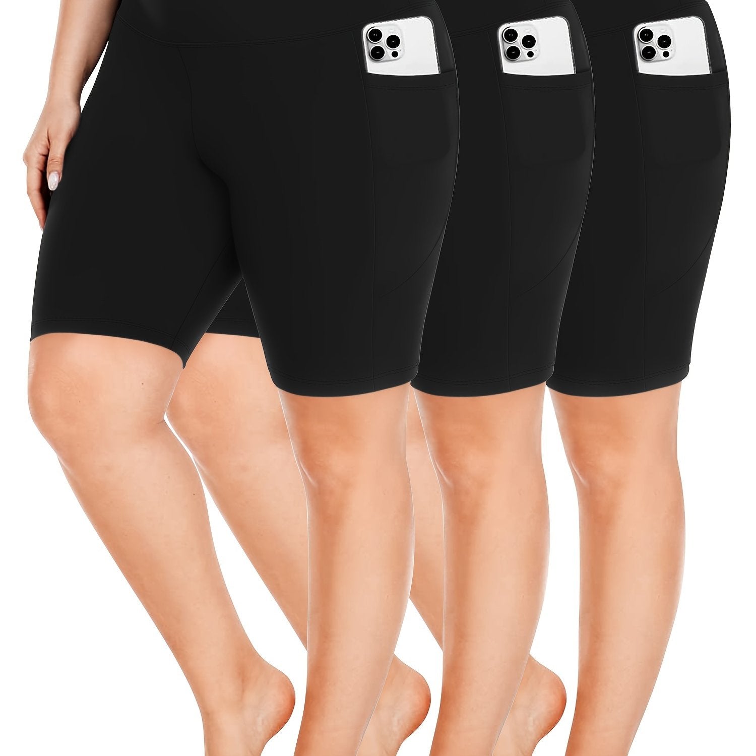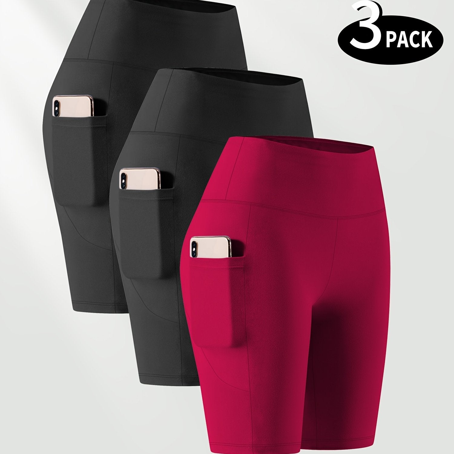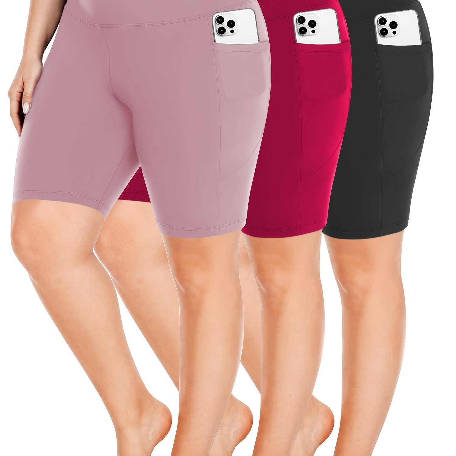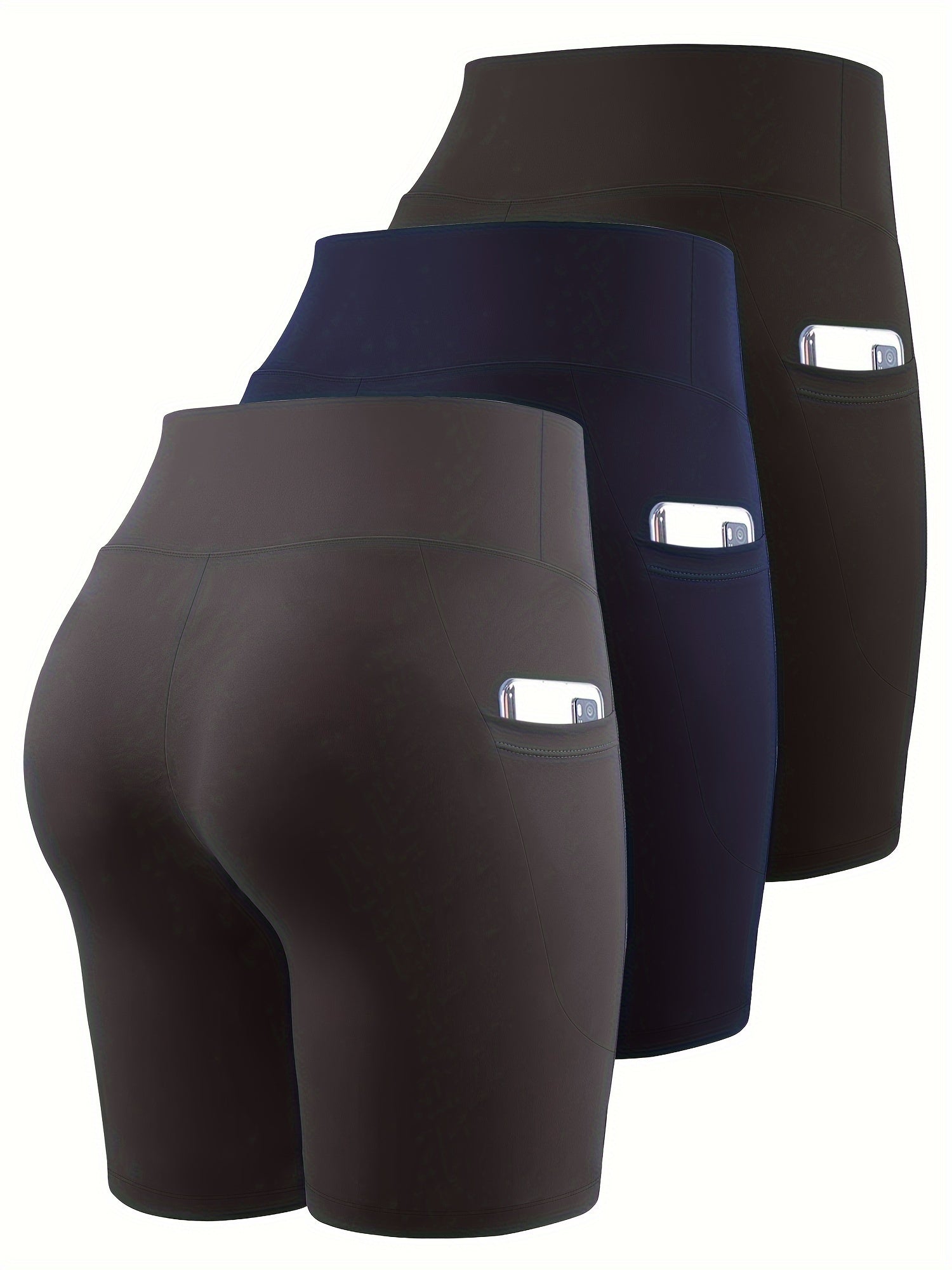 Ayollar uchun kattaroq o'lchamli yuqori belli bir rangli shortlar faoliyat kiyimlari to'plami, 3 ta