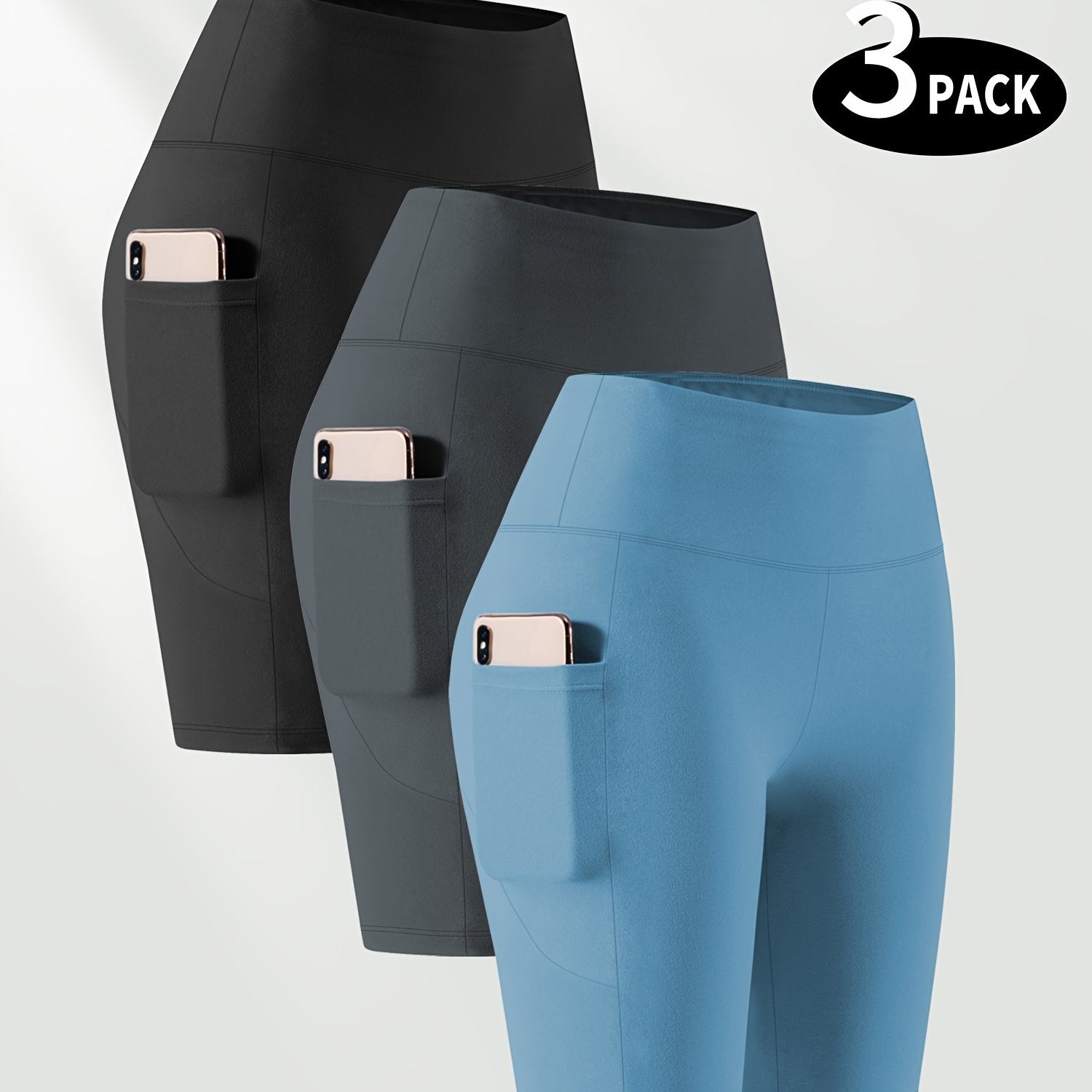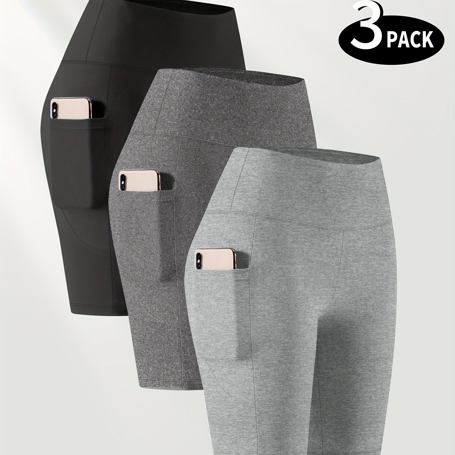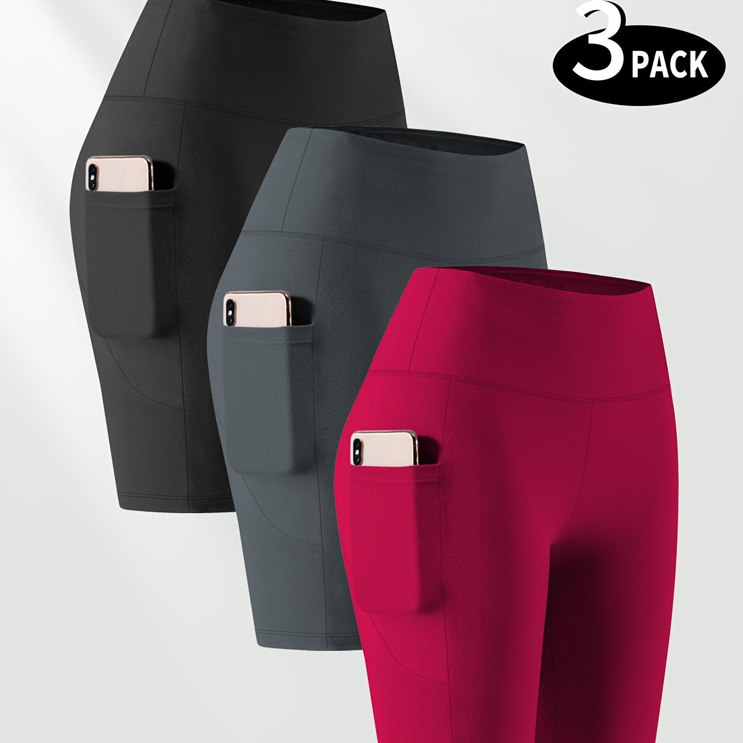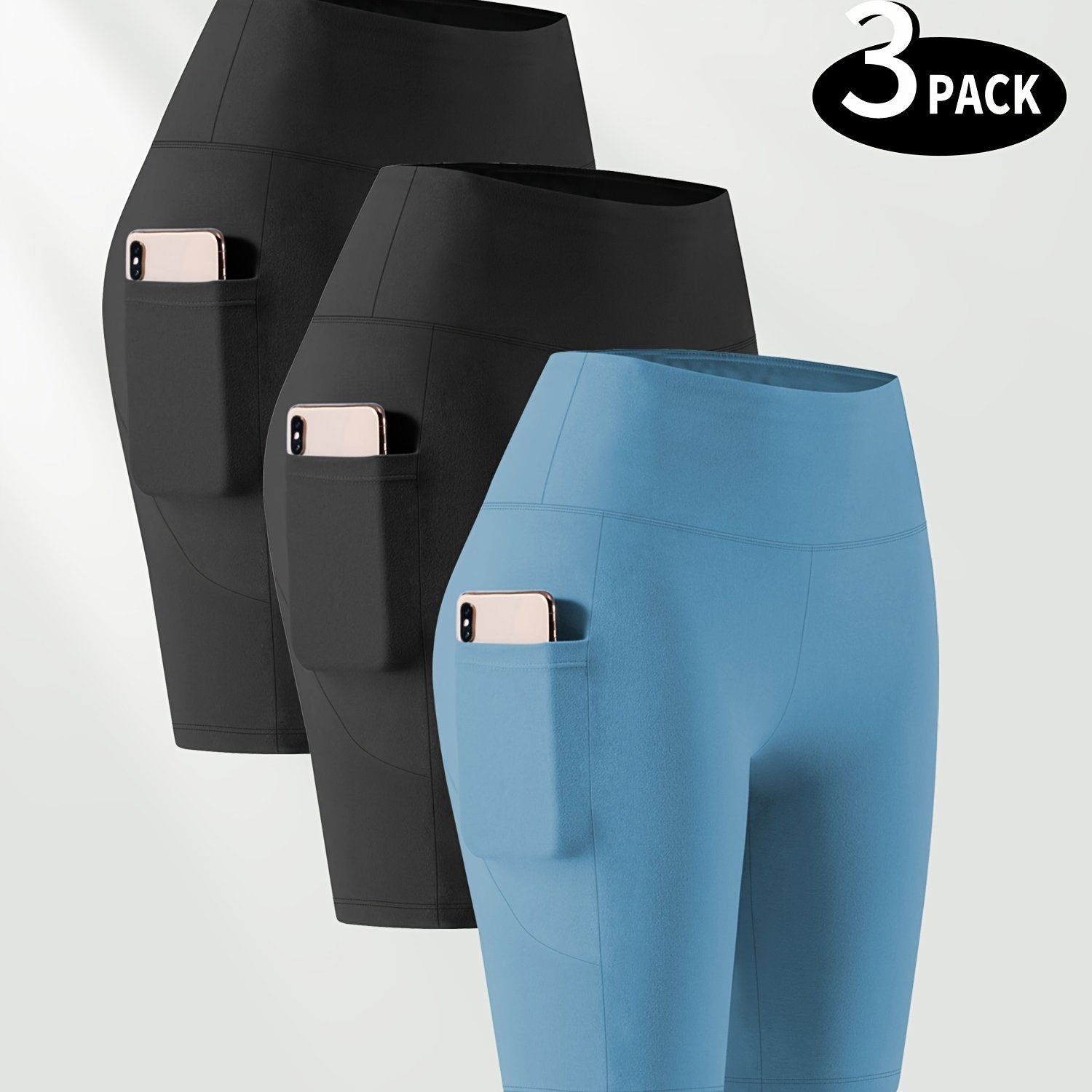 Ayollar uchun kattaroq o'lchamli yuqori belli bir rangli shortlar faoliyat kiyimlari to'plami, 3 ta