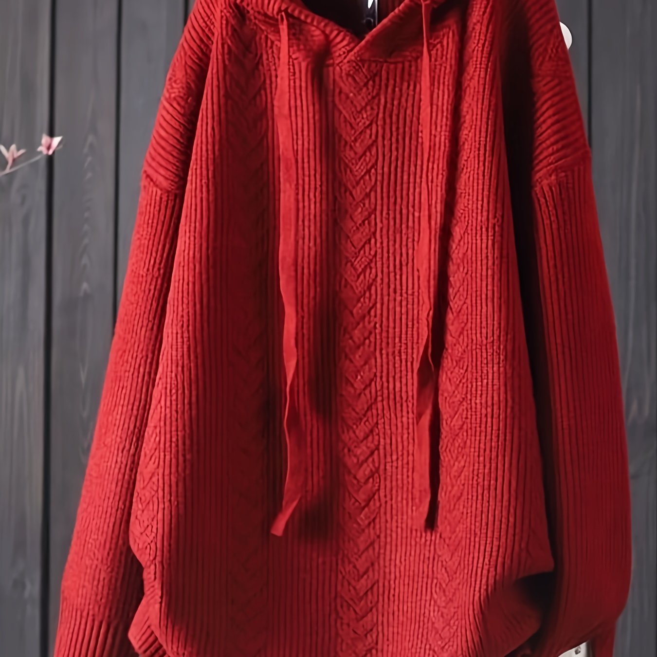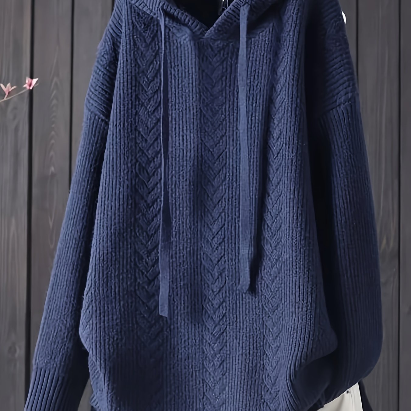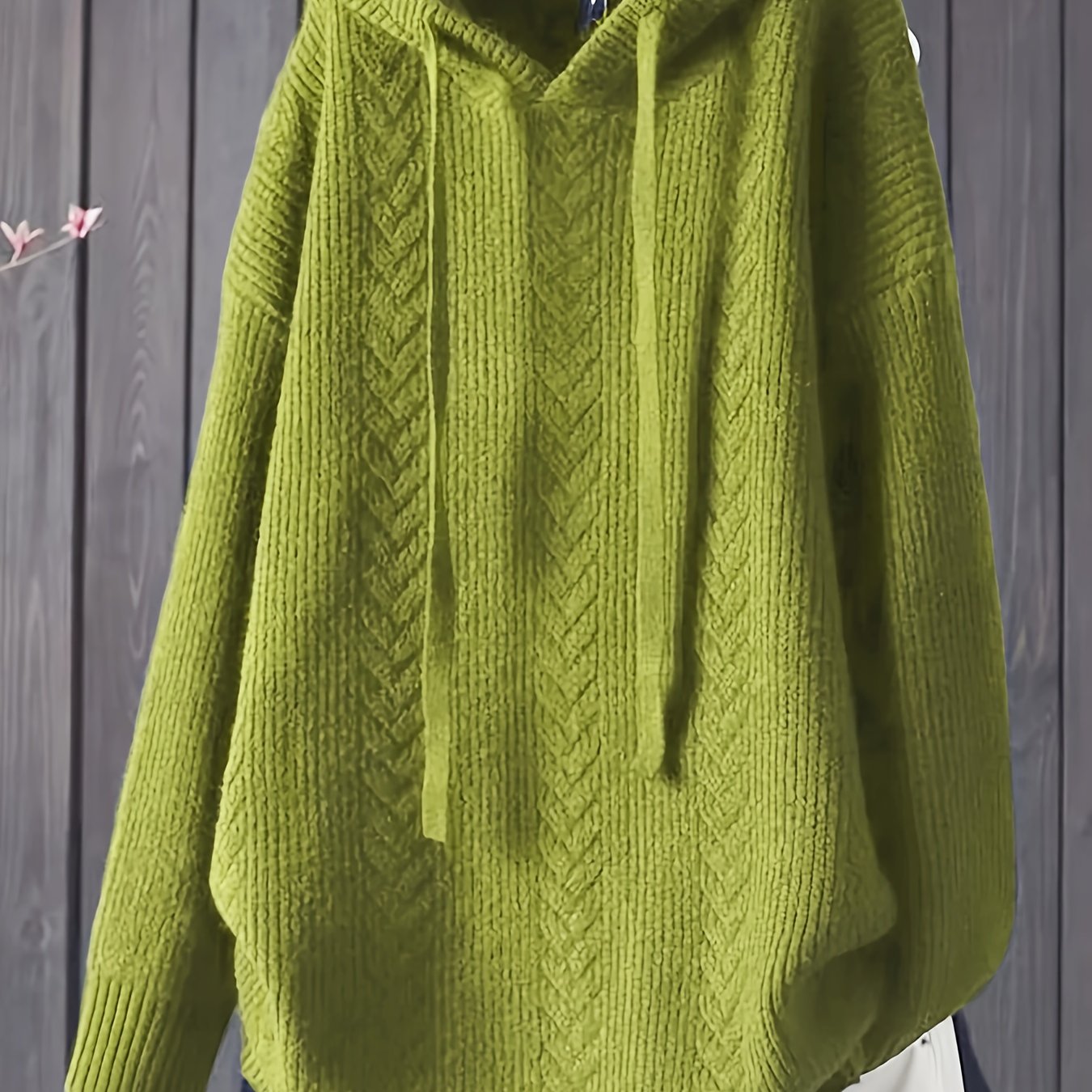 Ayollar uchun plussizali kapüşonli sviter, kuz va qish uchun, bir rangli, tortish ipi bilan, tasodifiy uzun qo'lqon.