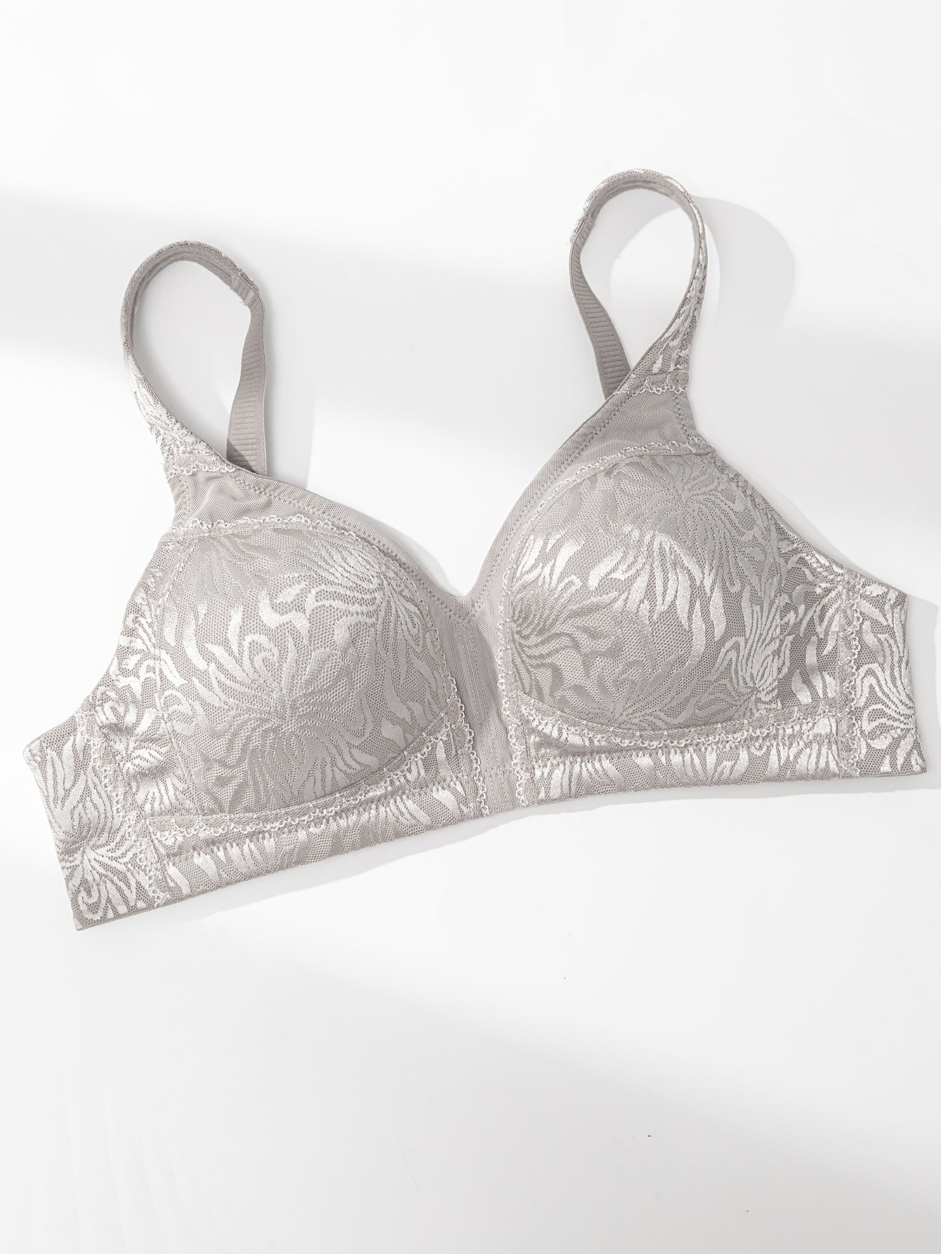 Ayollar uchun plussiz o'lchamdagi dantelli bezakli brassoy, to'liq qoplama, keng yelka tasmalari, jakard gullar naqshi, po'lat halqa yoki ko'krak yostiqsiz. Keng tanlov bilan qulay va nafas oladigan.