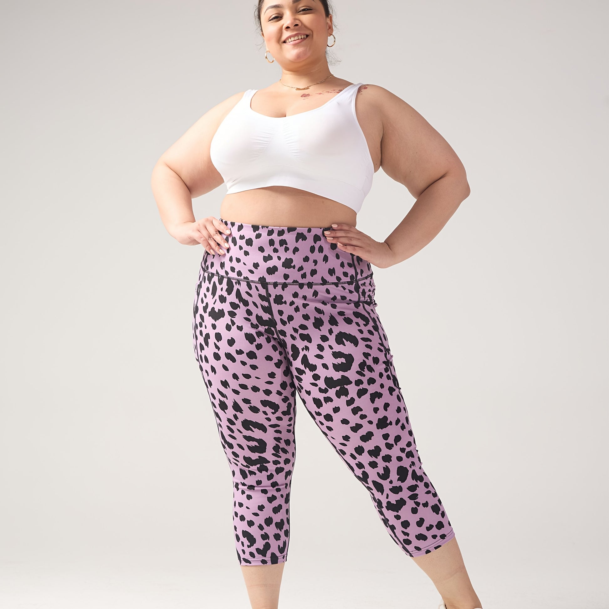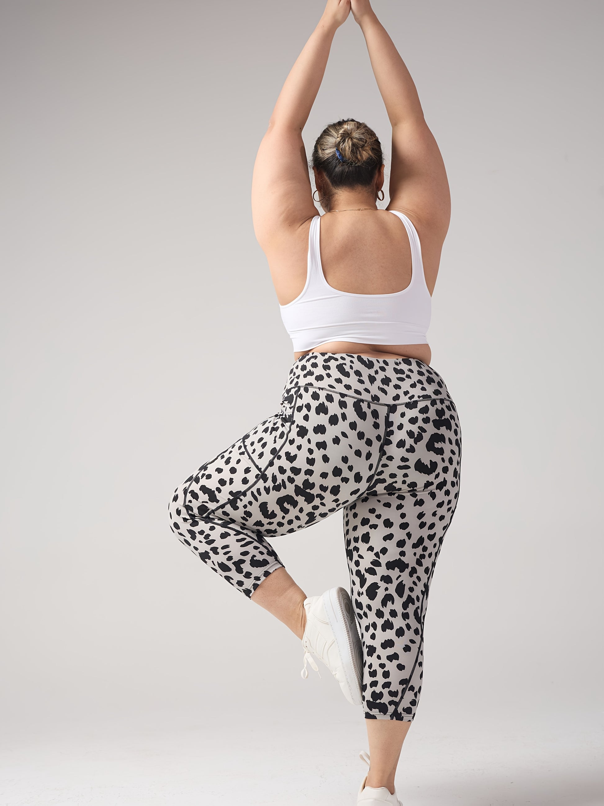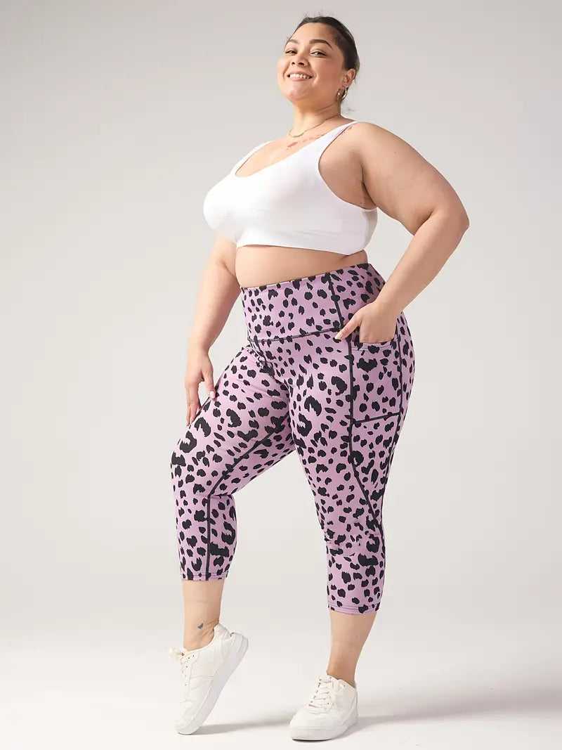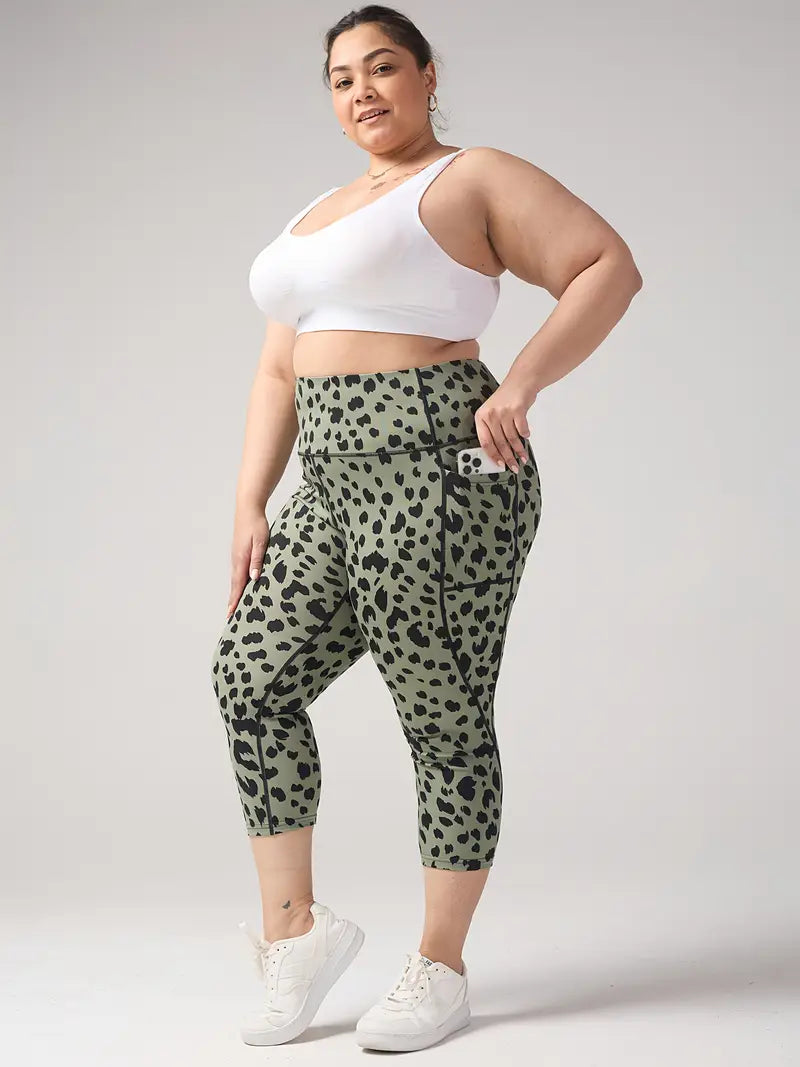 Women's Plus-Size Leopard Print Capri Leggings Tummy Control High Waist Stretchy