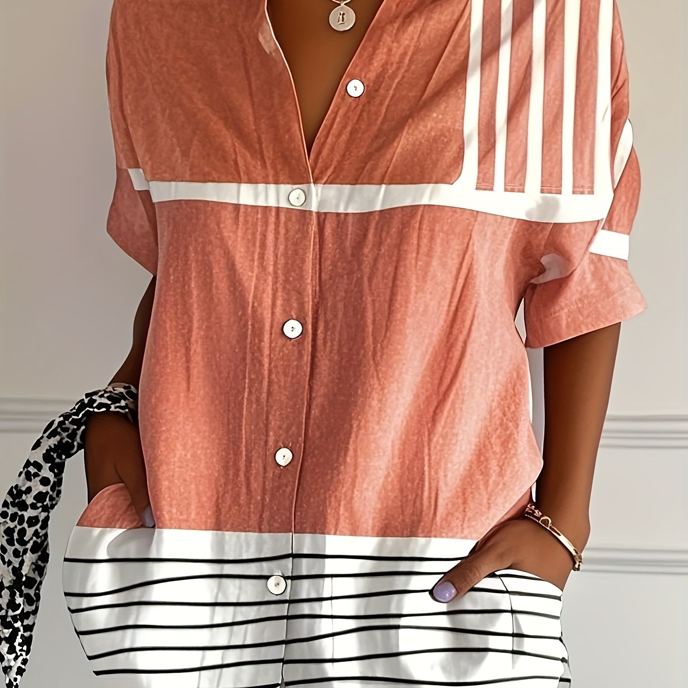Ayollar uchun keng model qisqa ko'ylak, geometrik rang blokli, yozgi plyaj kiyimi
