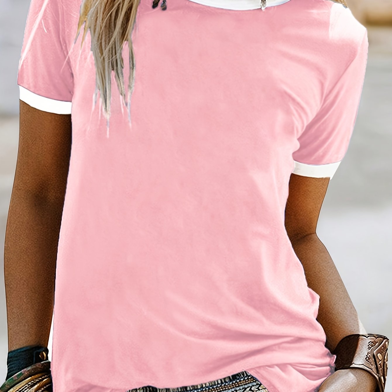 Ayollar uchun keng ko'lamli qisqa qo'lli kruiz bo'yinli T-shirt, bir rangli