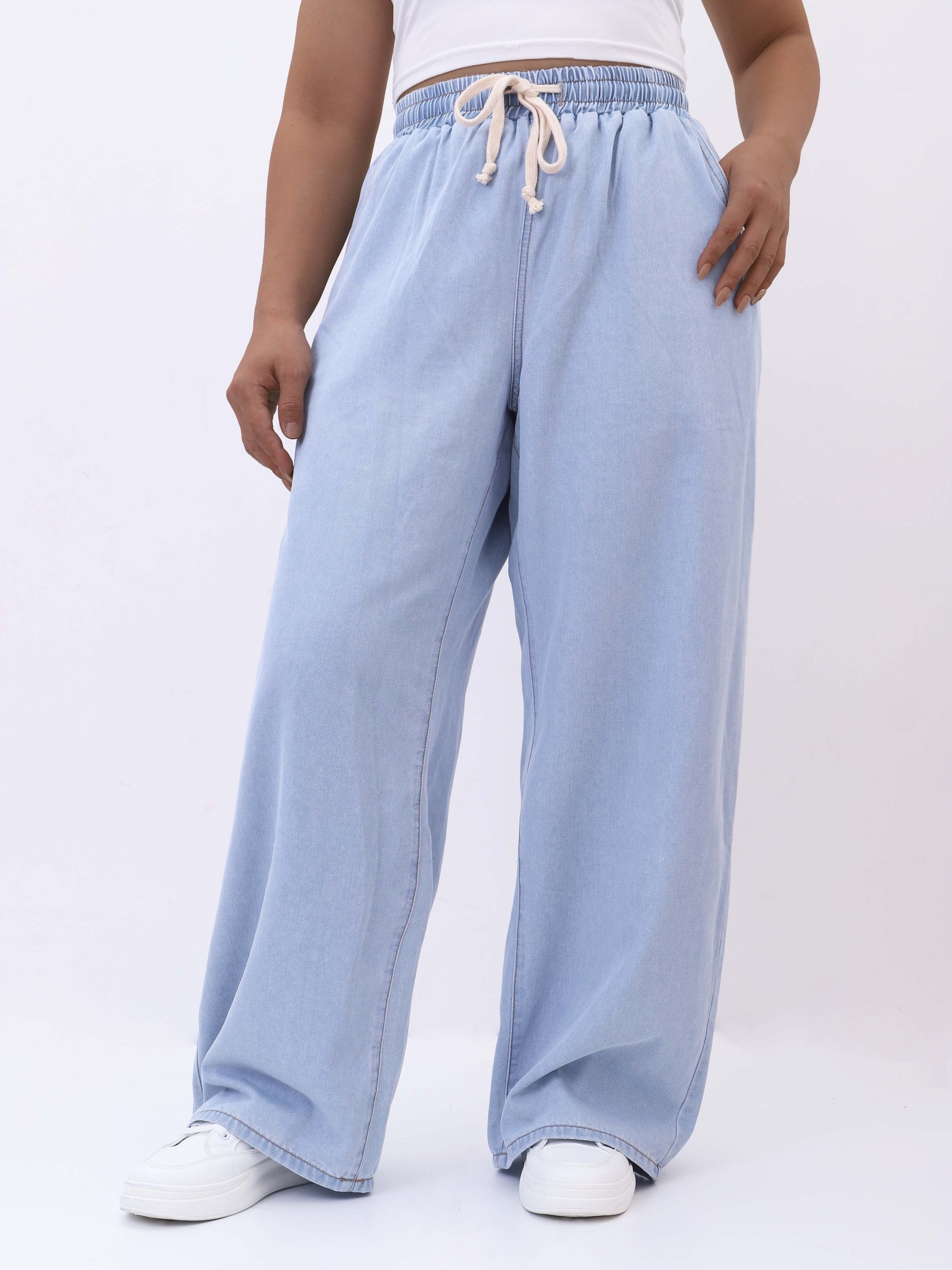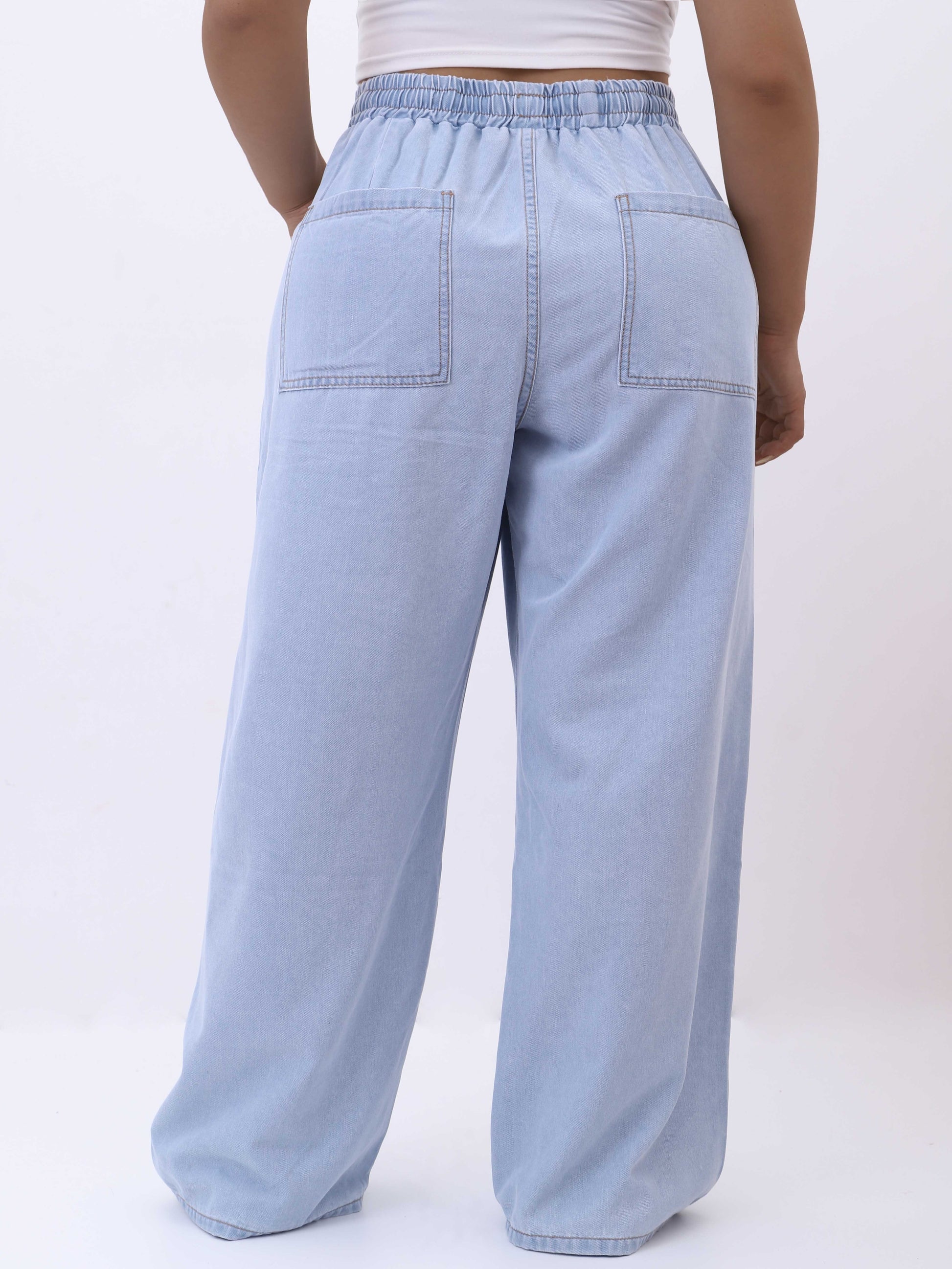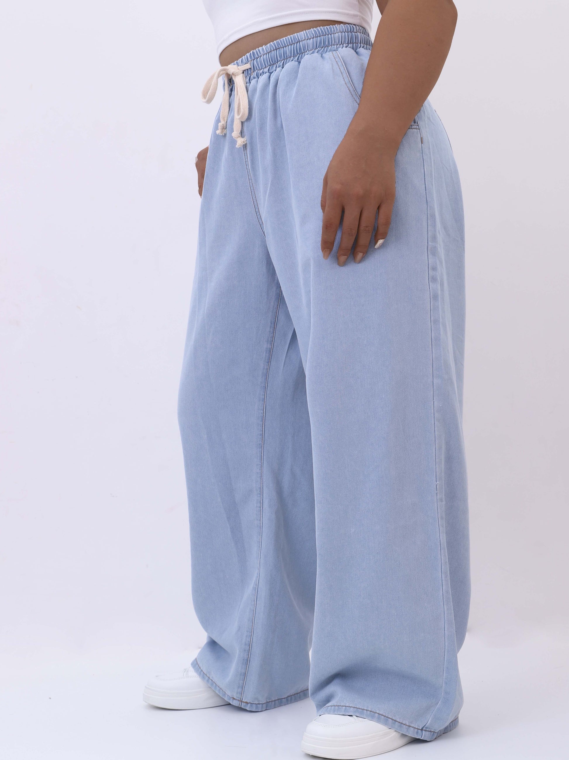 Ayollar uchun plussiz keng oyoqli jinsilar, yuqori bel, tortish qismi, bahor/kovak uchun bir rangli denim.