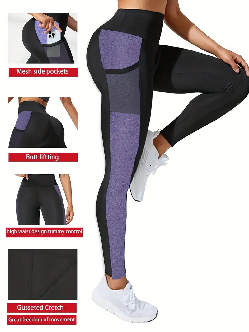 Ayollar uchun kattaroq o'lchamdagi yoga legginslar, yon mesh cho'ntaklar bilan, yuqori bel, elastik va nafas oladigan