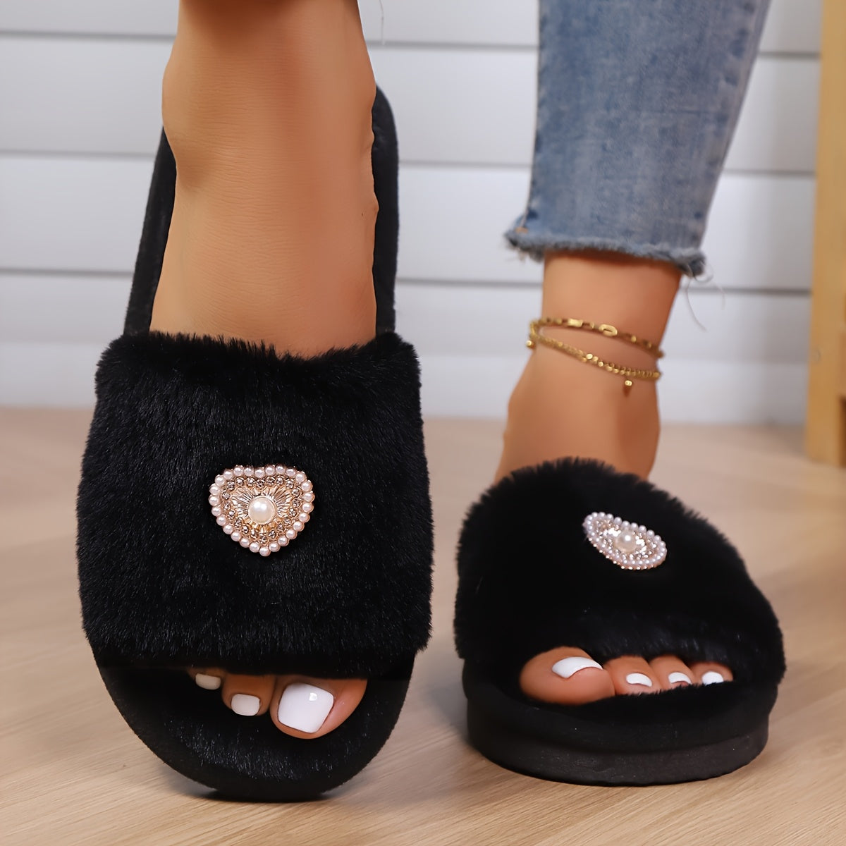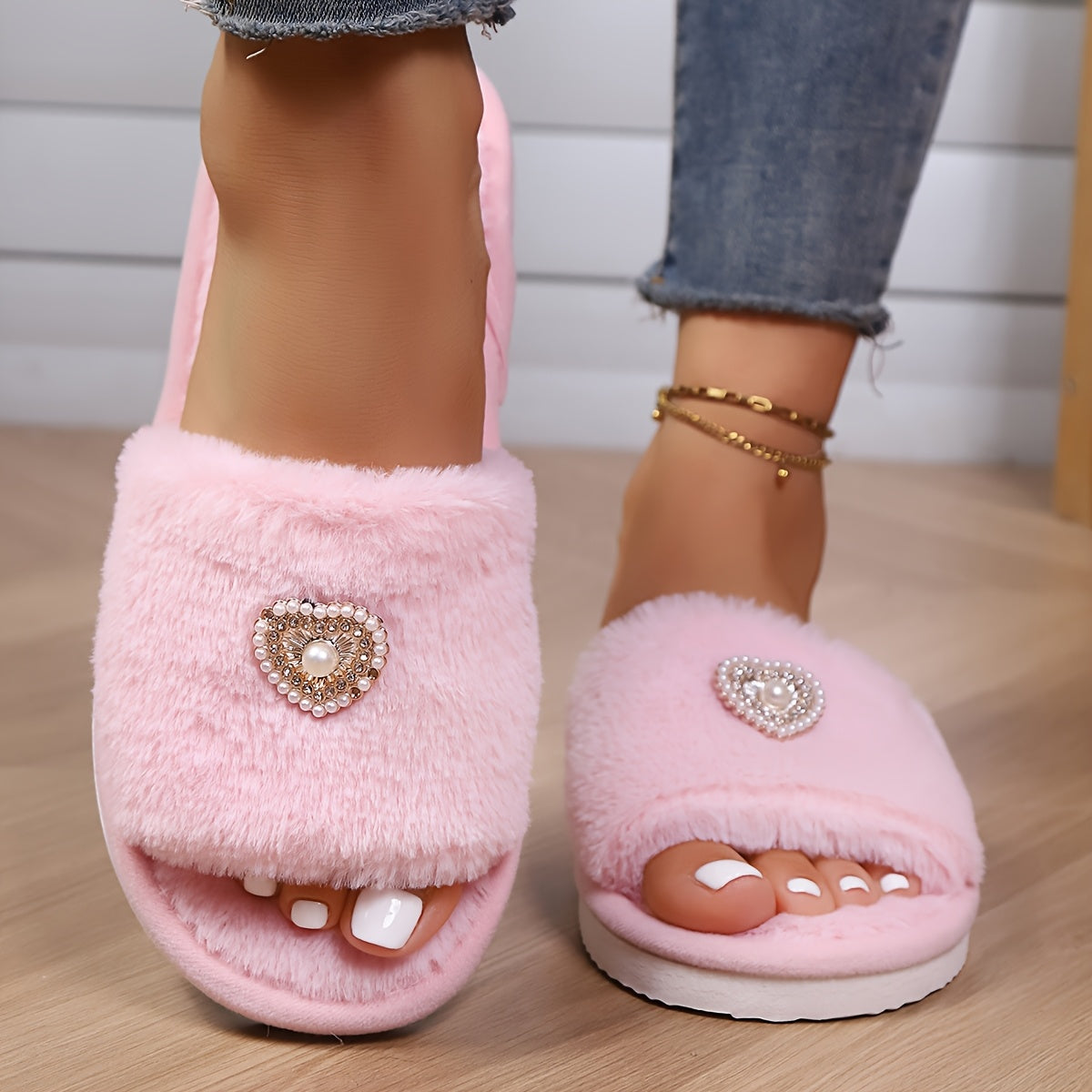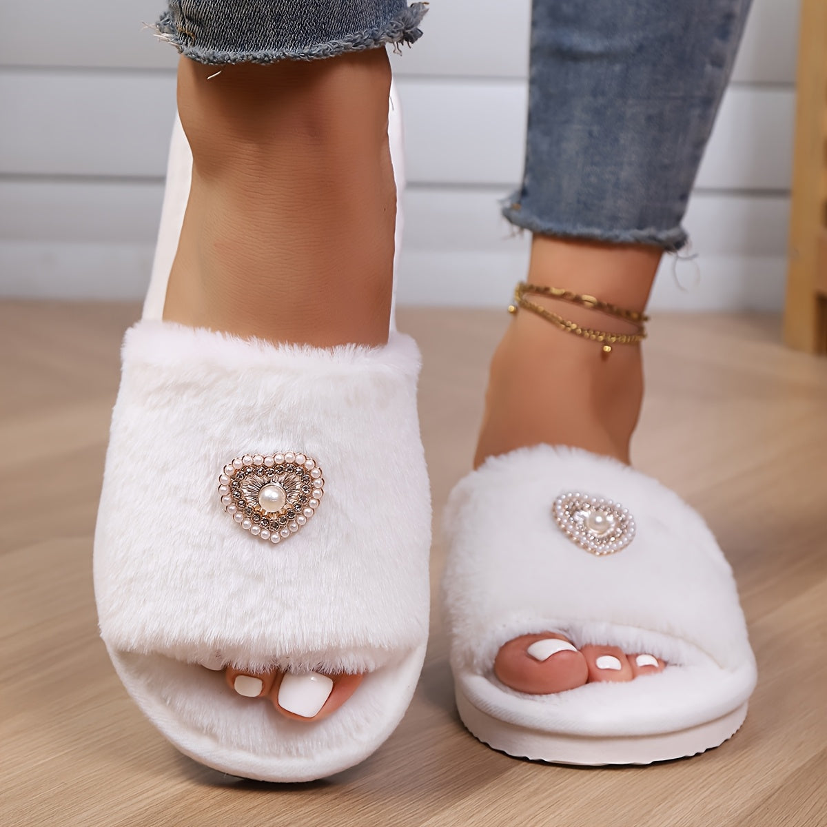 Ayollar uchun mo'ljallangan yumshoq plush fleece shlyapkalar, yumshoq kulrang va oq EVA taglik bilan, ichki va tashqi foydalanish uchun uy poyabzali