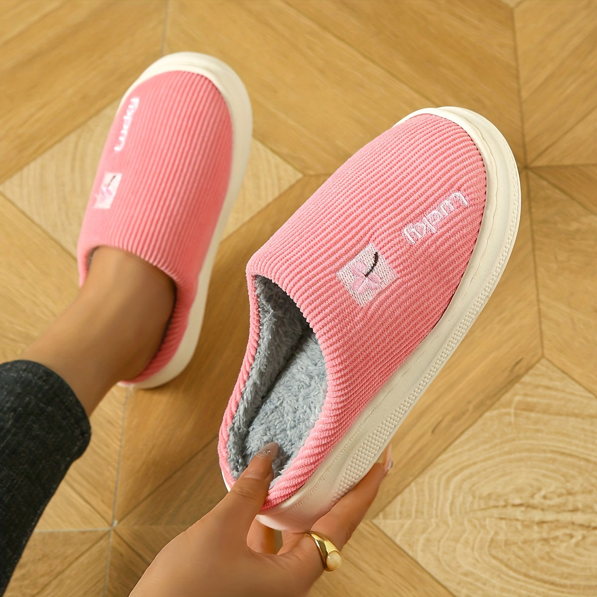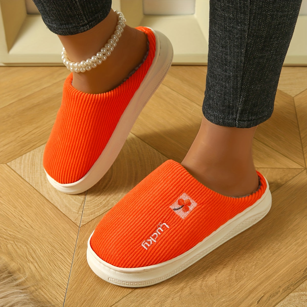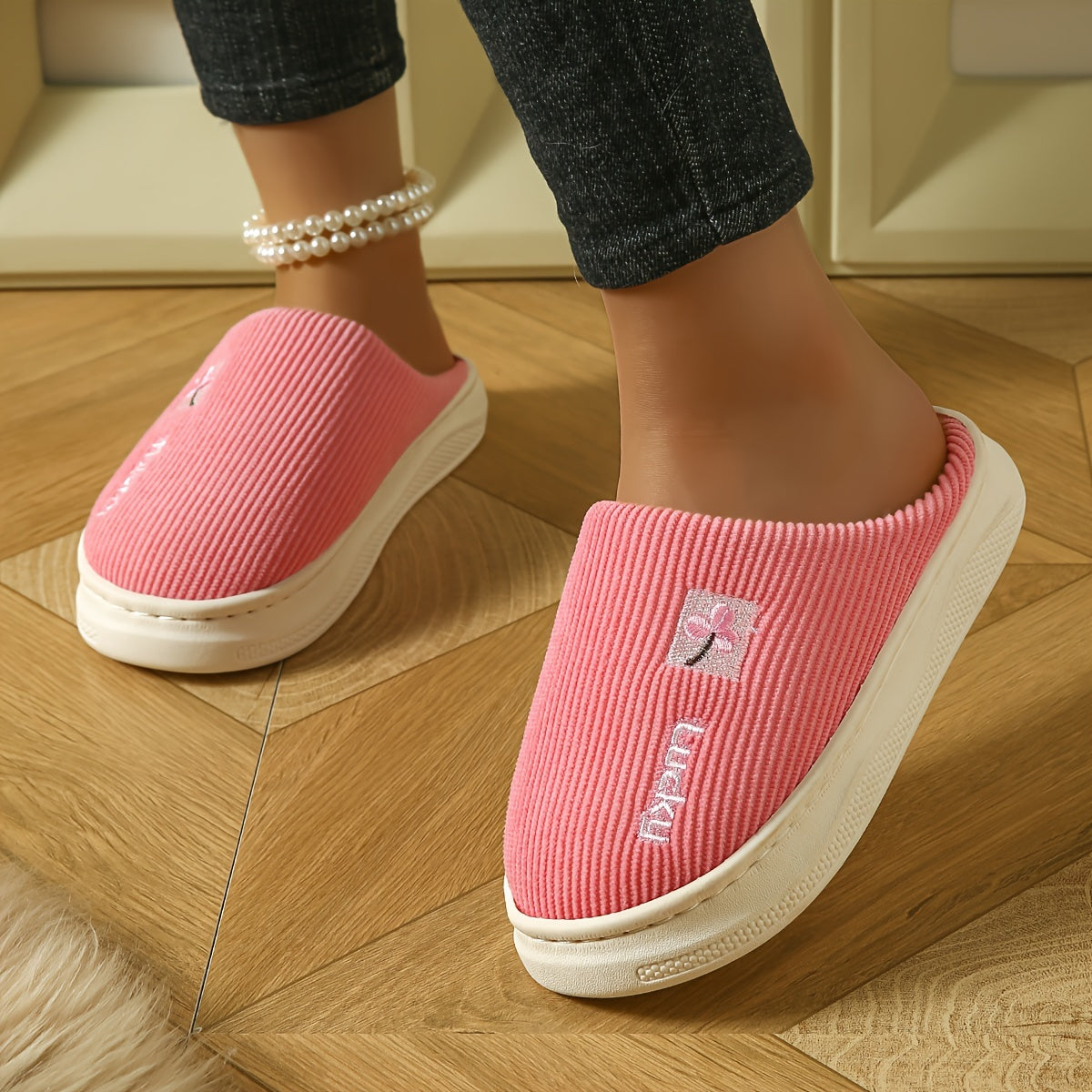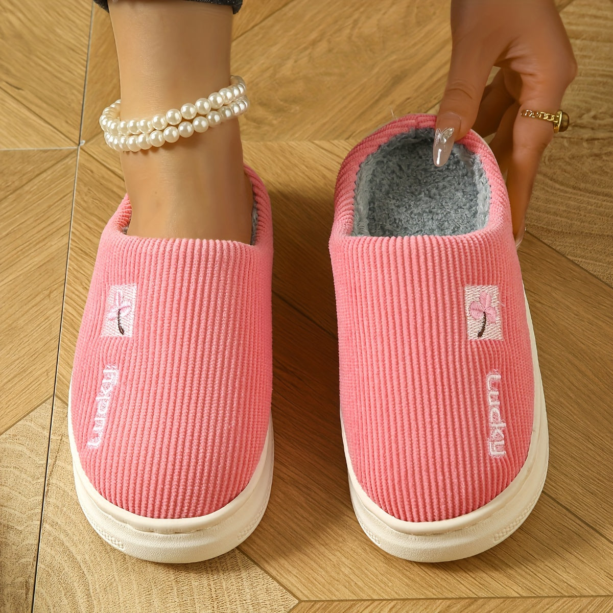 Ayollar uchun plüsh mo'rtli ichki chanoq, issiq qish yotoq xonasi poyabzali