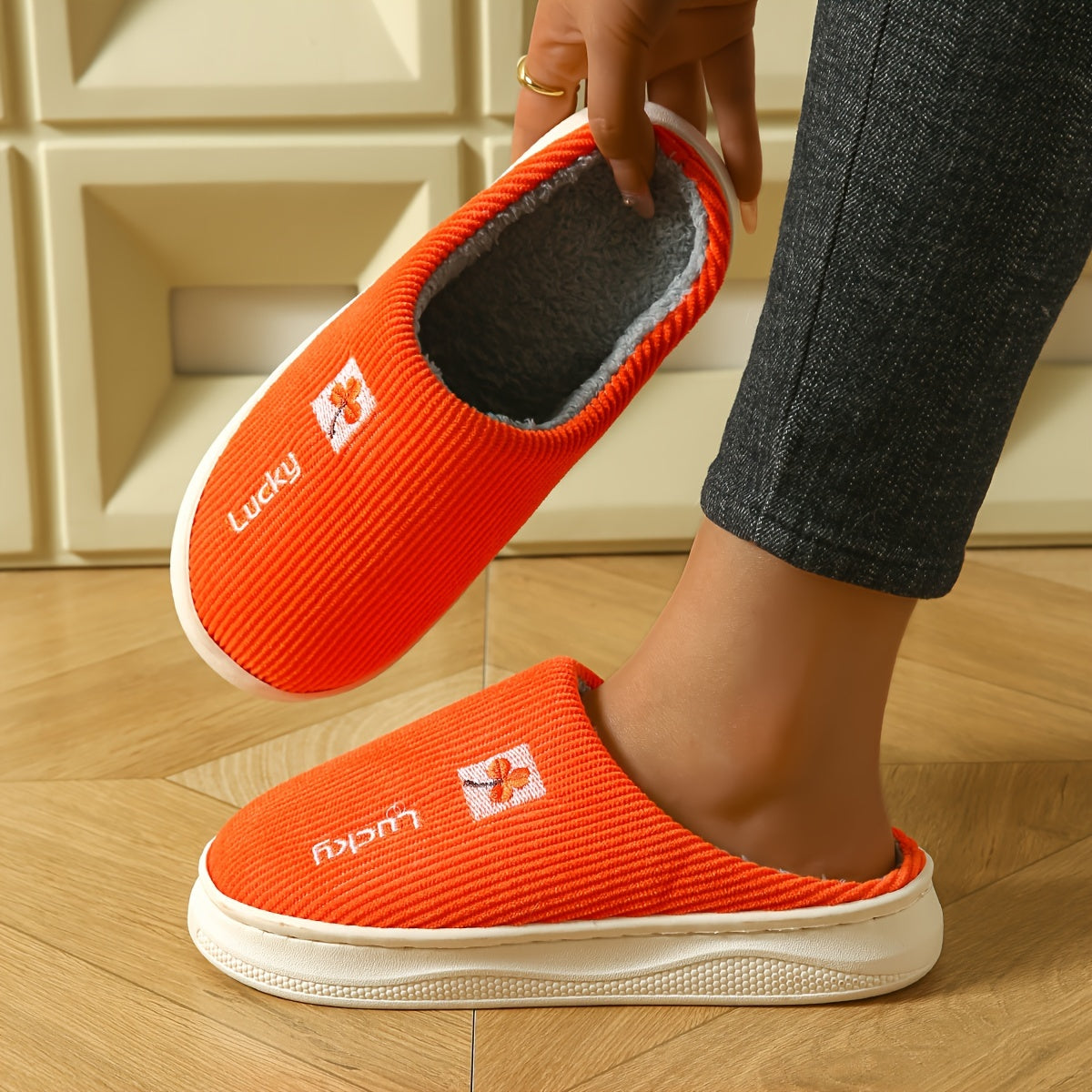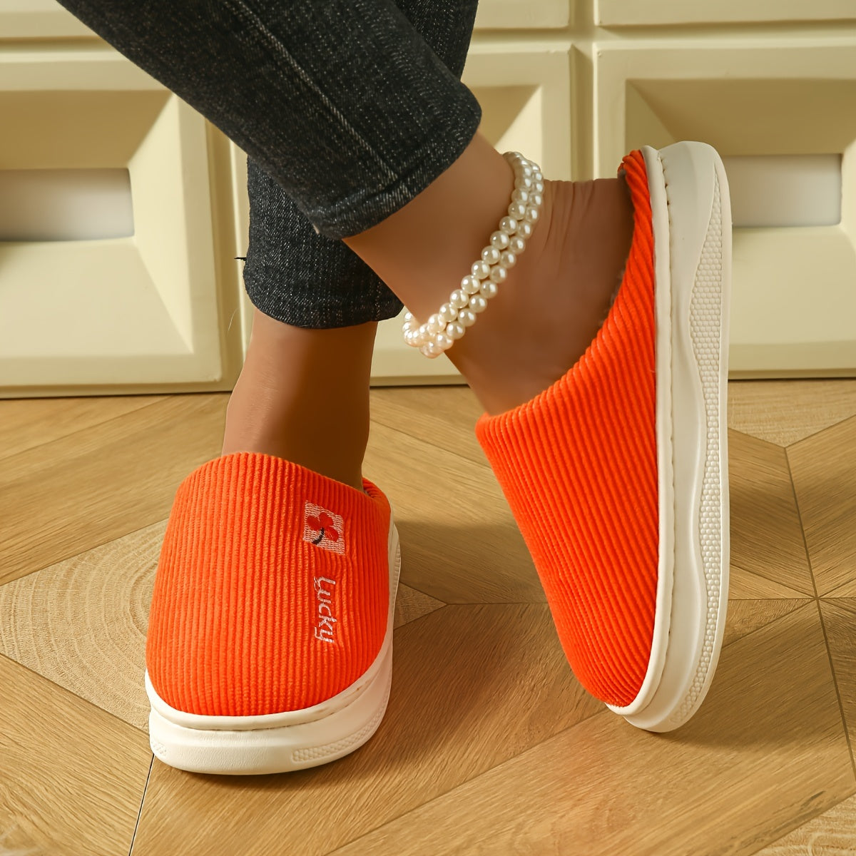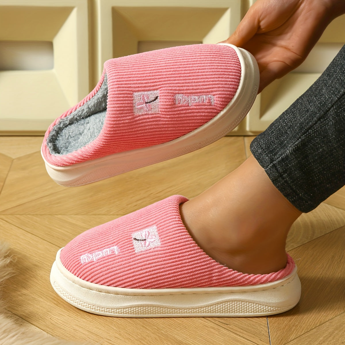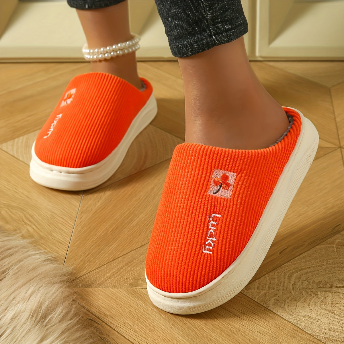 Ayollar uchun plüsh mo'rtli ichki chanoq, issiq qish yotoq xonasi poyabzali