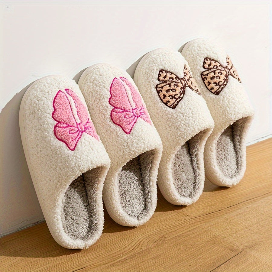 Ayollar uchun mo'ljallangan yumshoq ichki qoplamali bowknot naqshli ichki chiroqlar, qulay slip-on poyabzal