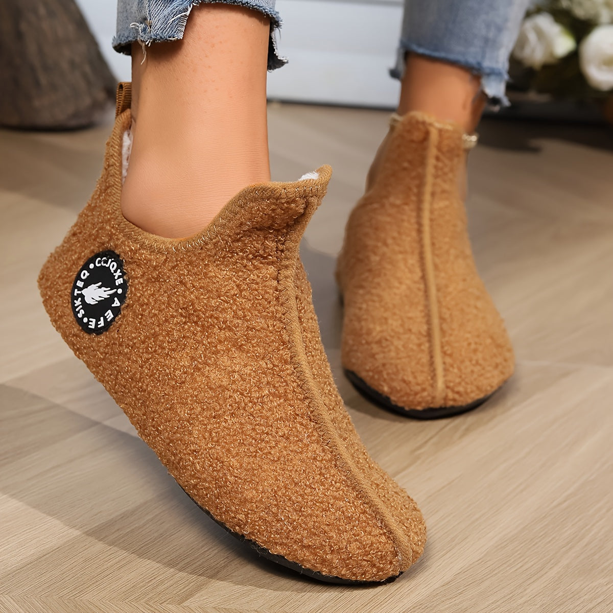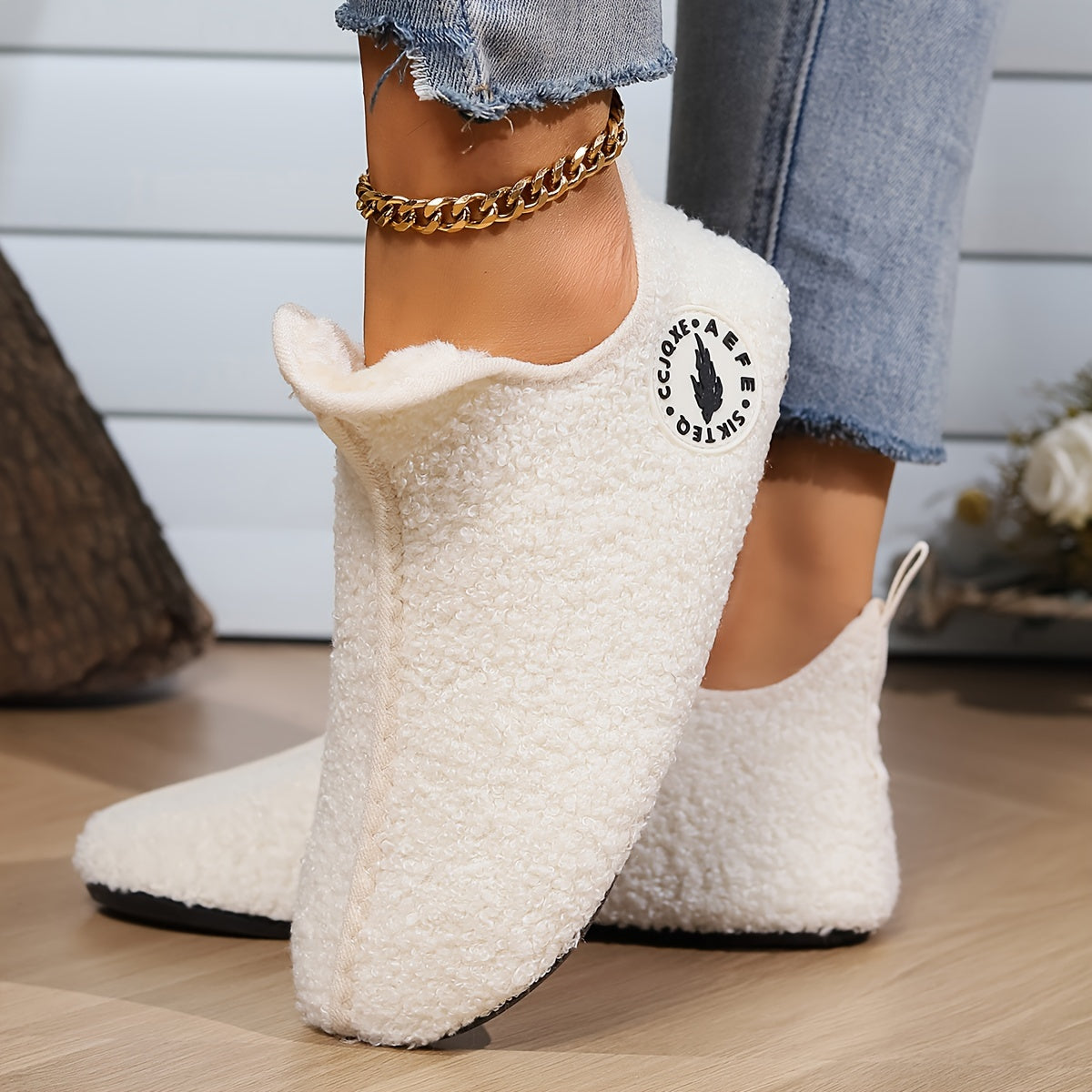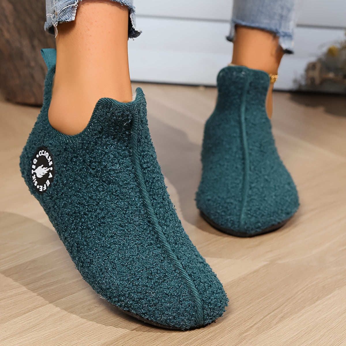 Ayollar uchun mo'ljallangan yumshoq plush shlyapki, yopiq barmoqli, sirpanishga qarshi ichki makon uchun uy oyoq kiyimlari