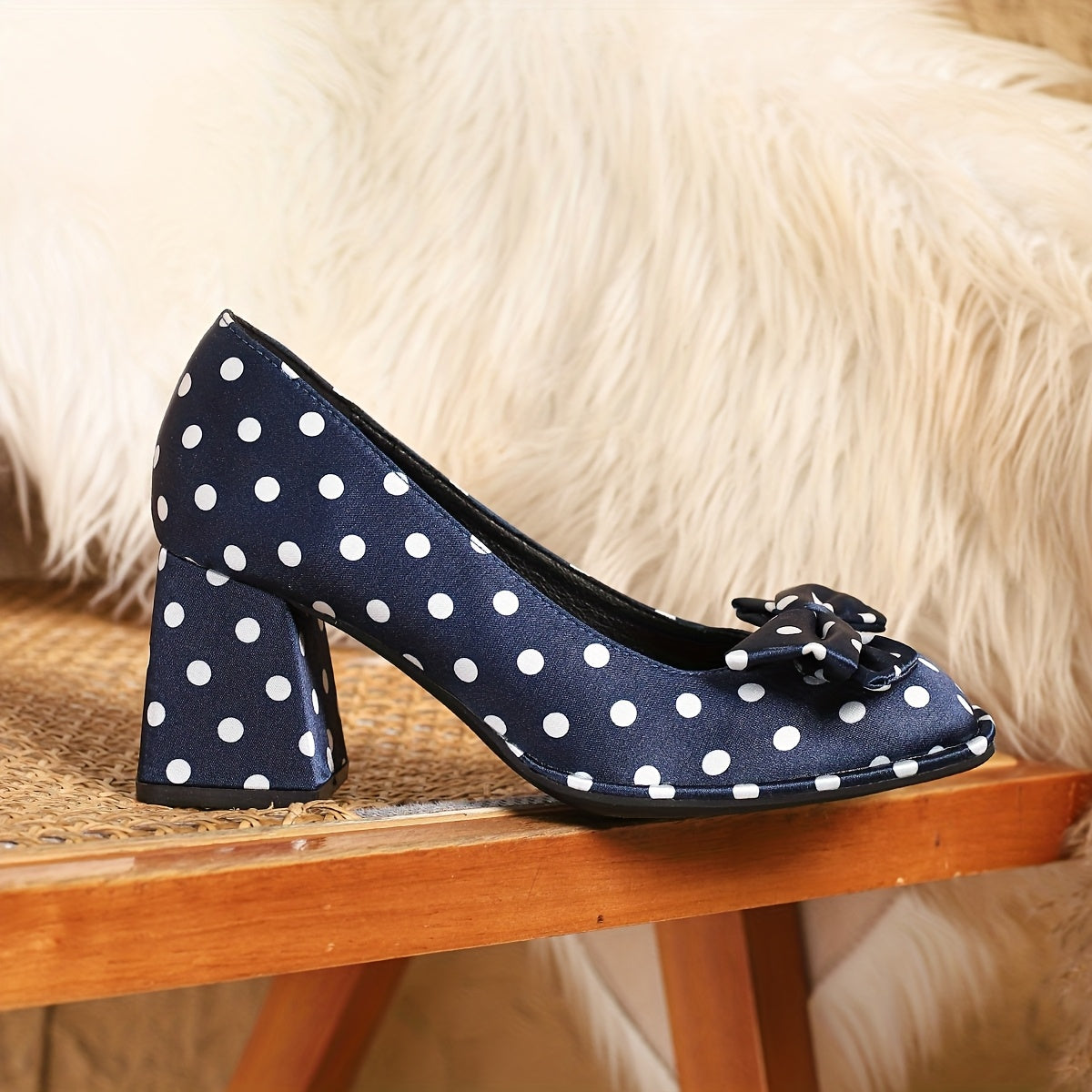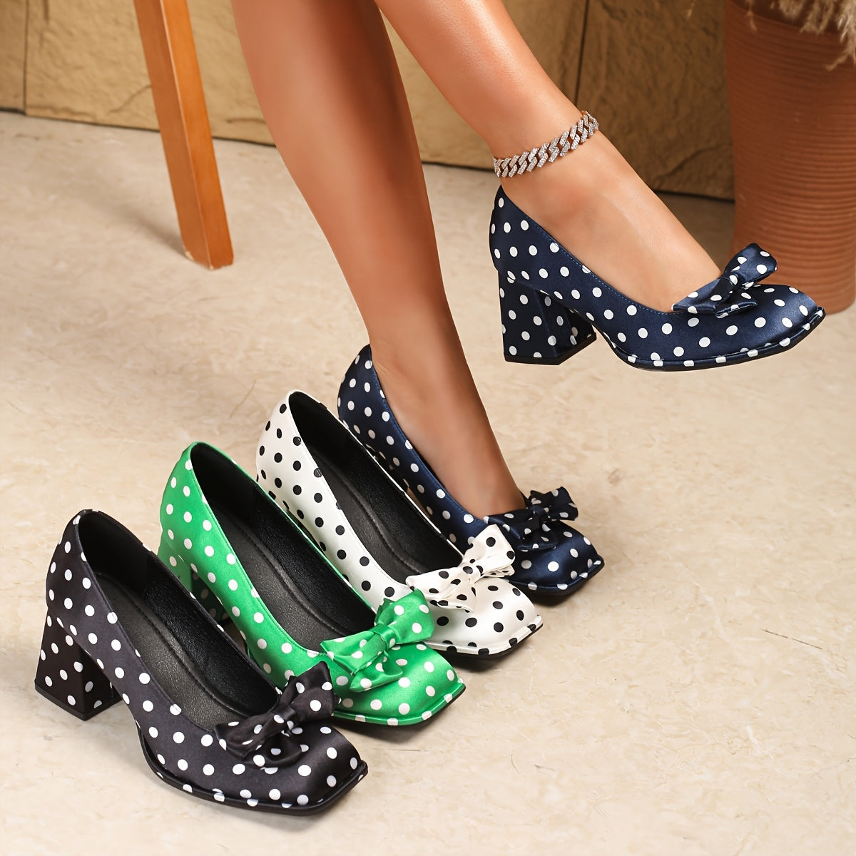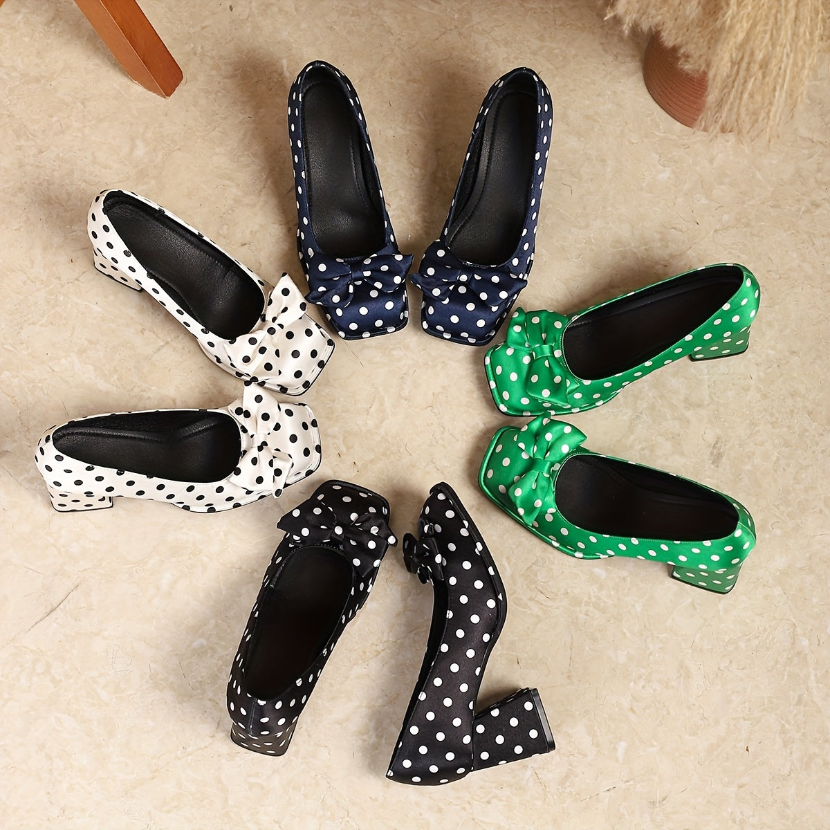Ayollar uchun polka nuqta Mary Jane poyabzal, bog'lamli kvadrat barmoqli, blok poyabzal, qulay oyoq kiyimlar, turli ranglarda