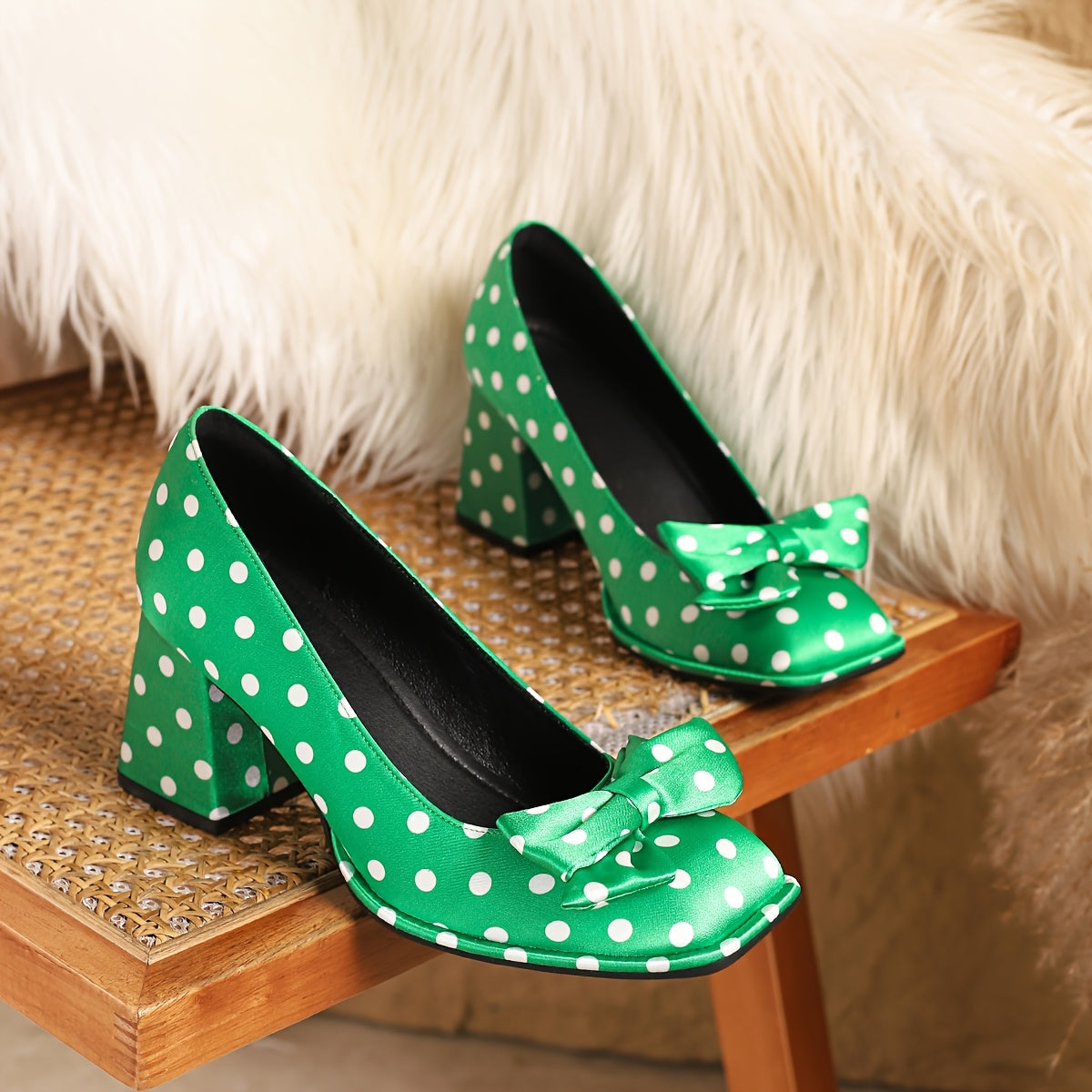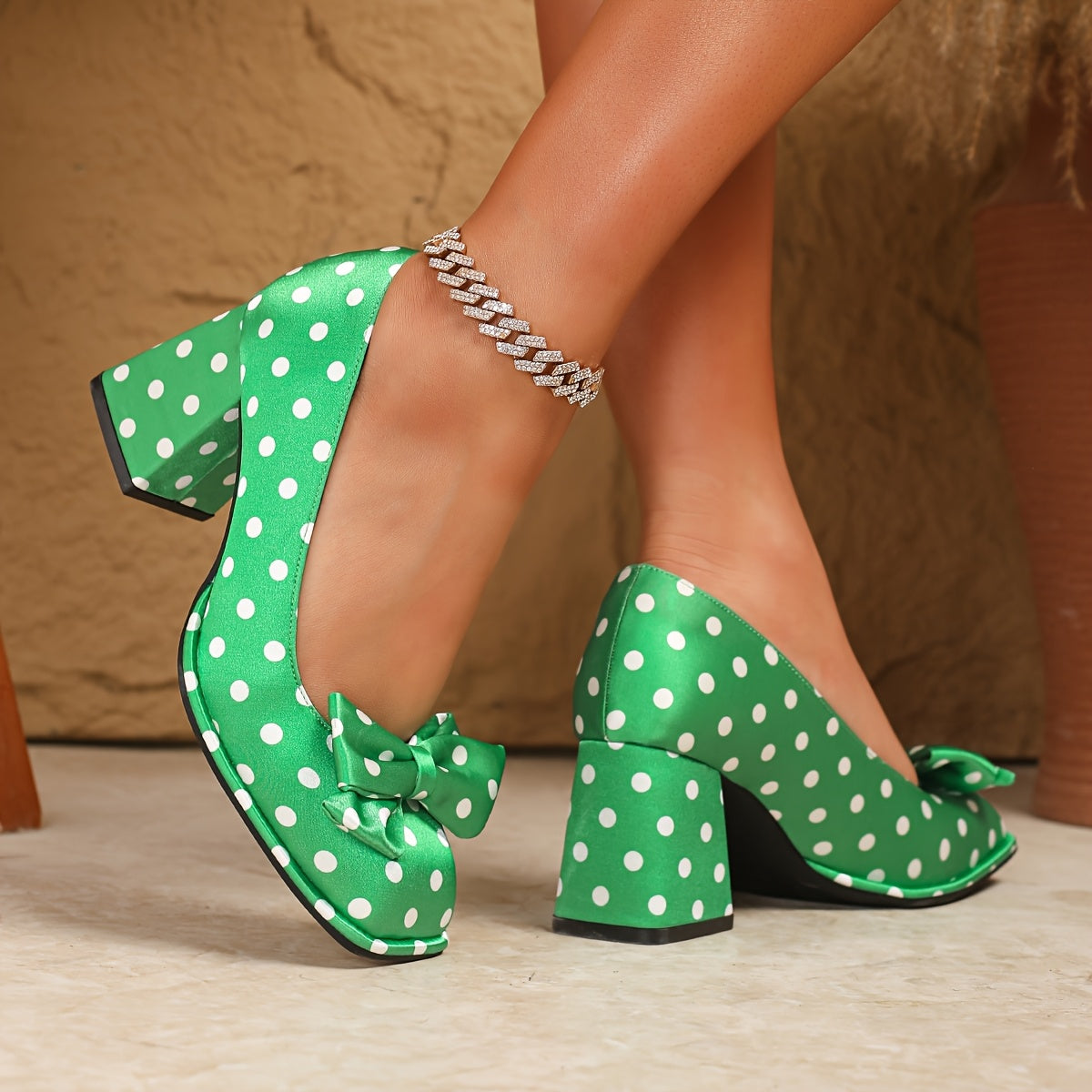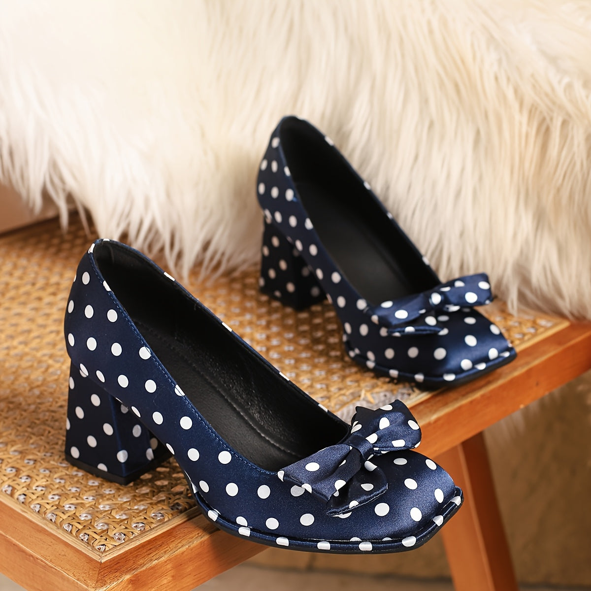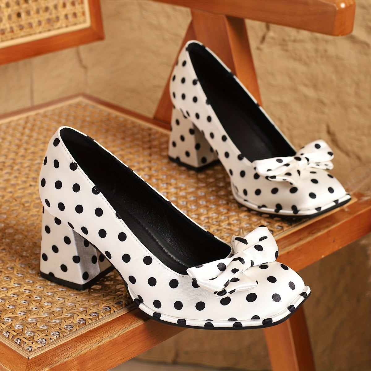 Ayollar uchun polka nuqta Mary Jane poyabzal, bog'lamli kvadrat barmoqli, blok poyabzal, qulay oyoq kiyimlar, turli ranglarda