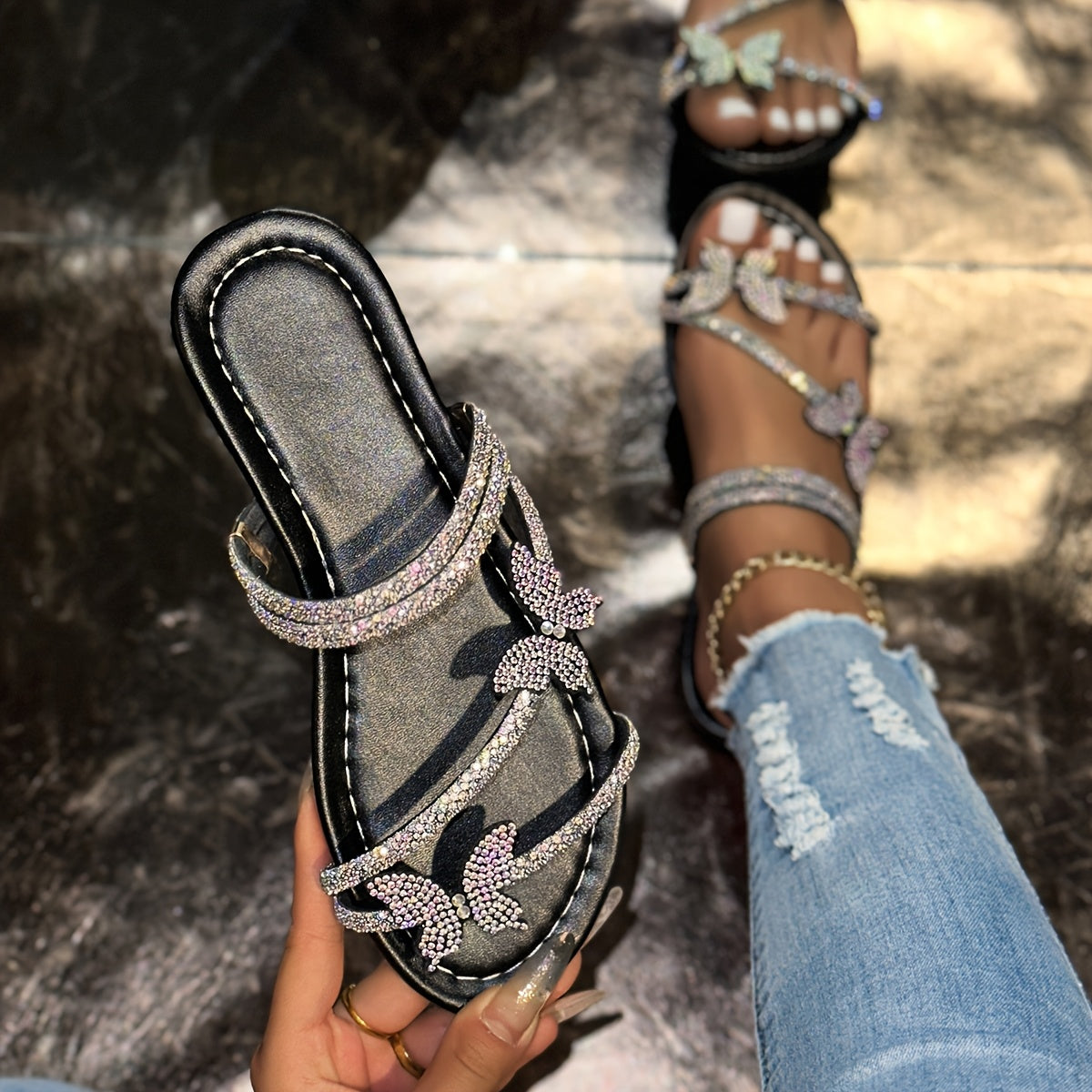 Ayollar uchun rhinestone kelebek Mary Jane sandallari, sozlanadigan, yopiladigan, yozgi slaydlar