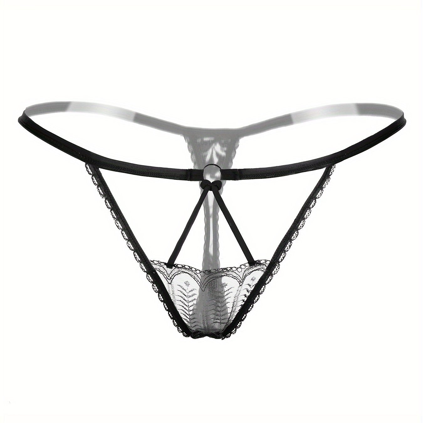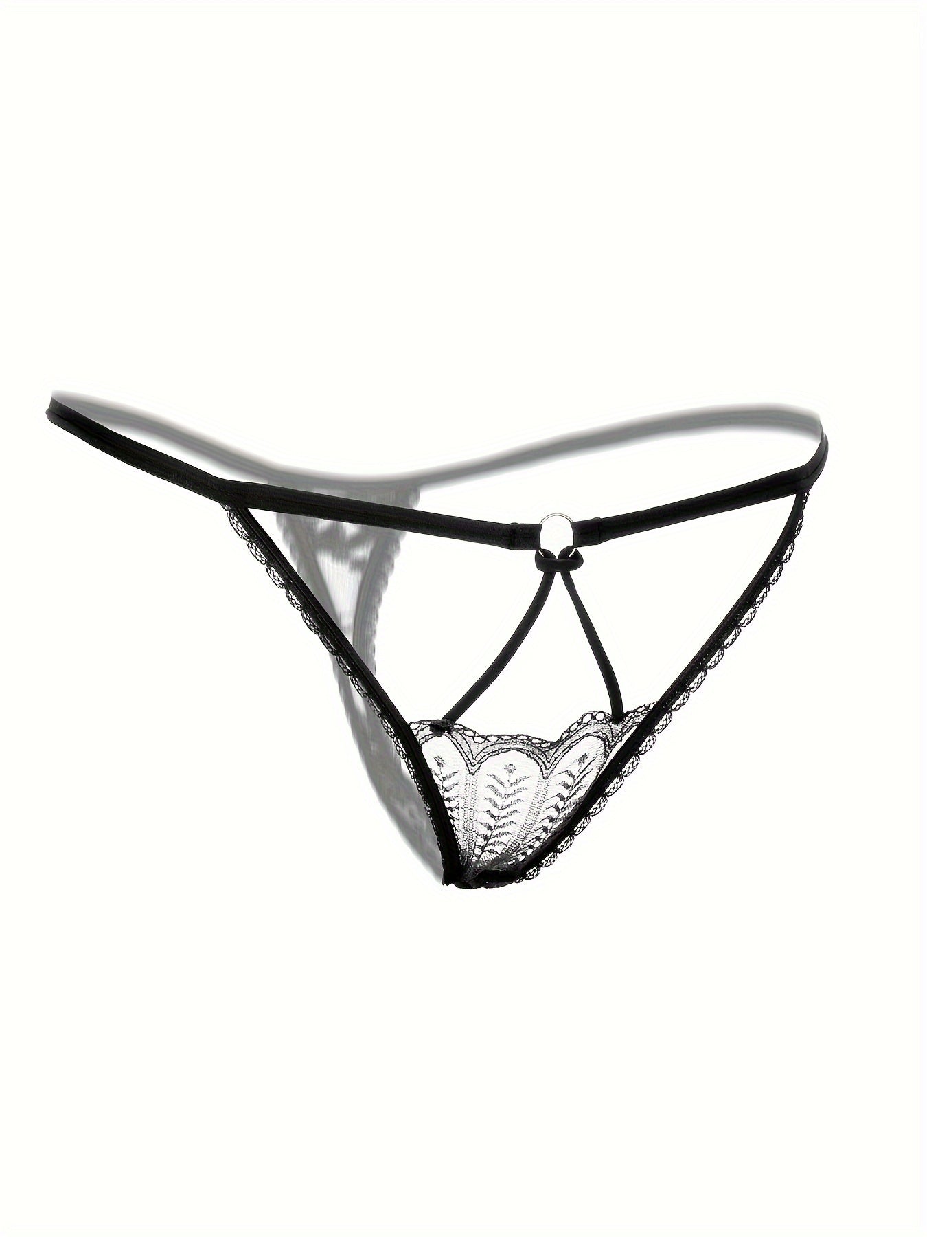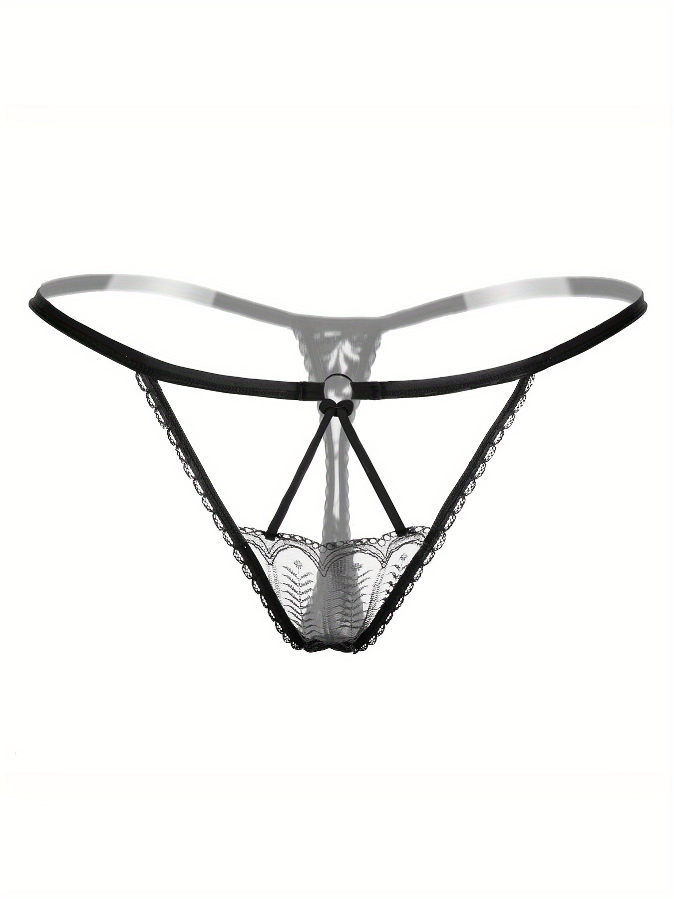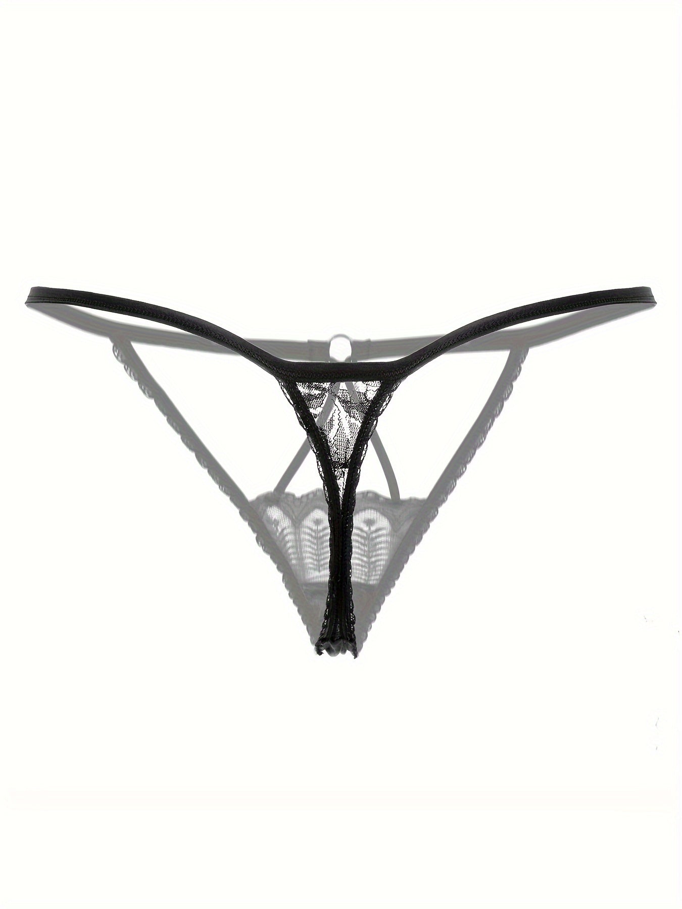 Ayollar uchun jozibali ichki kiyimlar to'rli, kesilgan past bel dizayni bilan thongni o'z ichiga oladi.