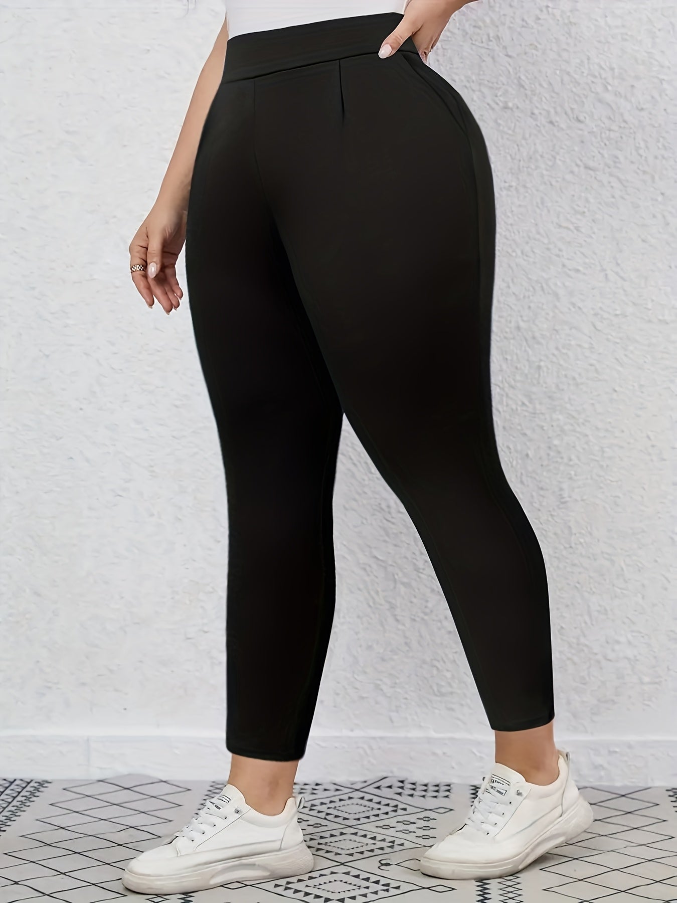 Women's Slimming Trousers Slim Fit Stretch Black Large Size