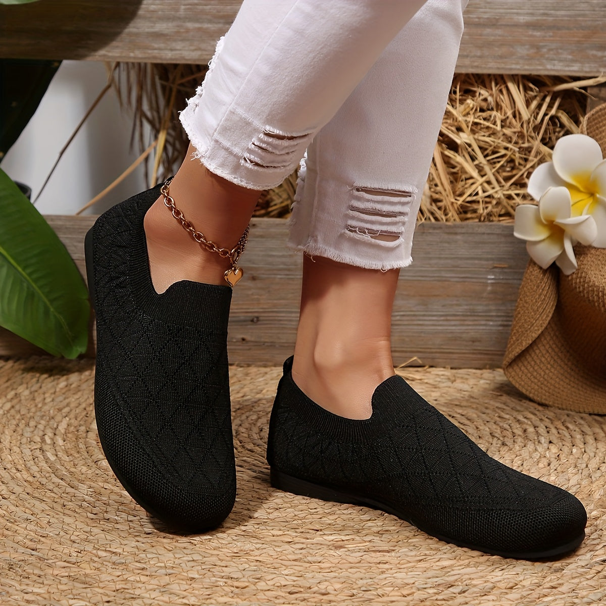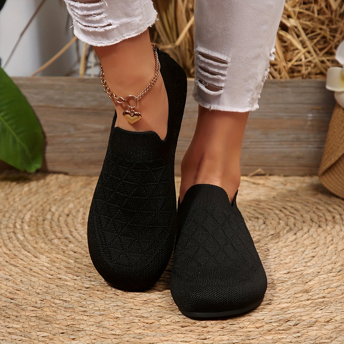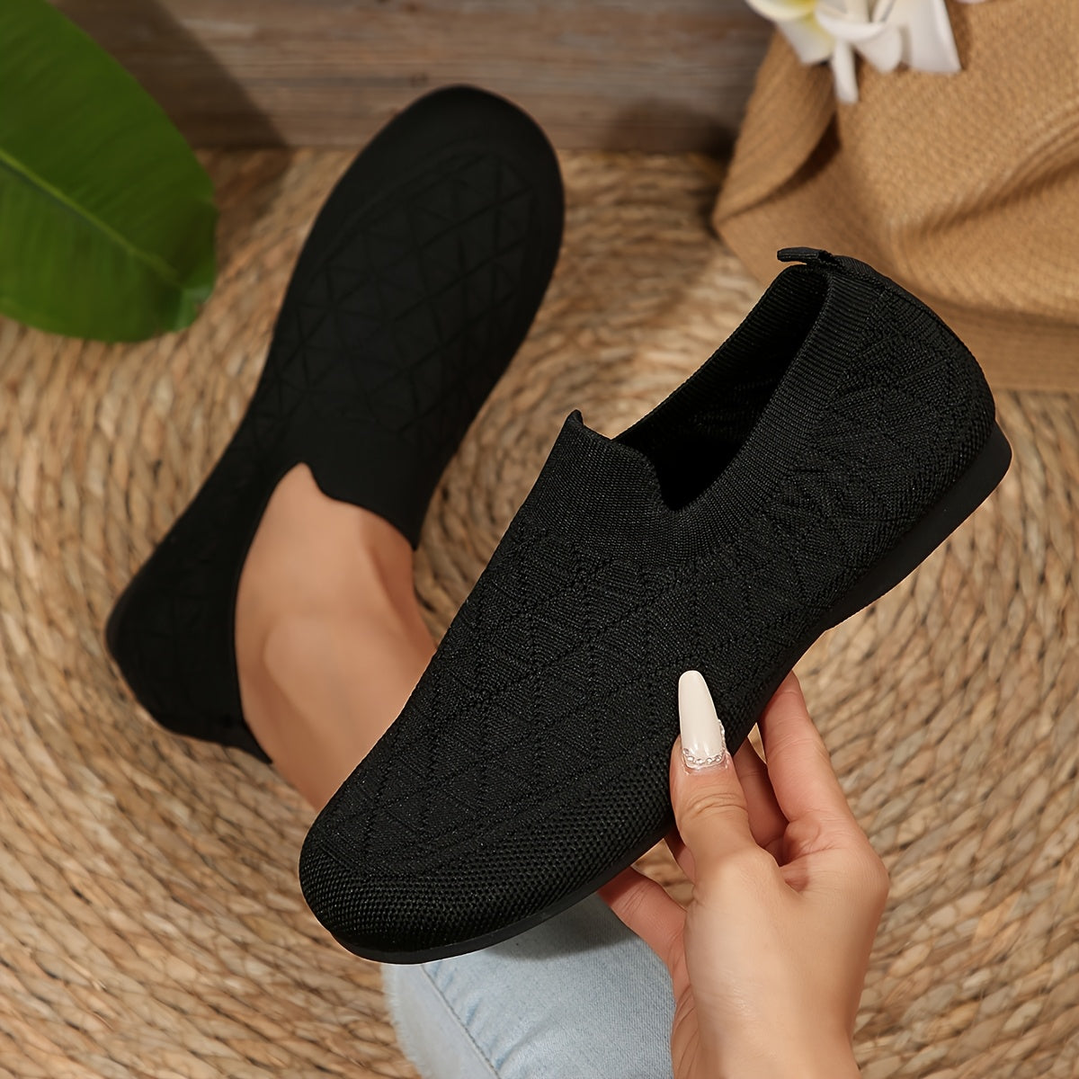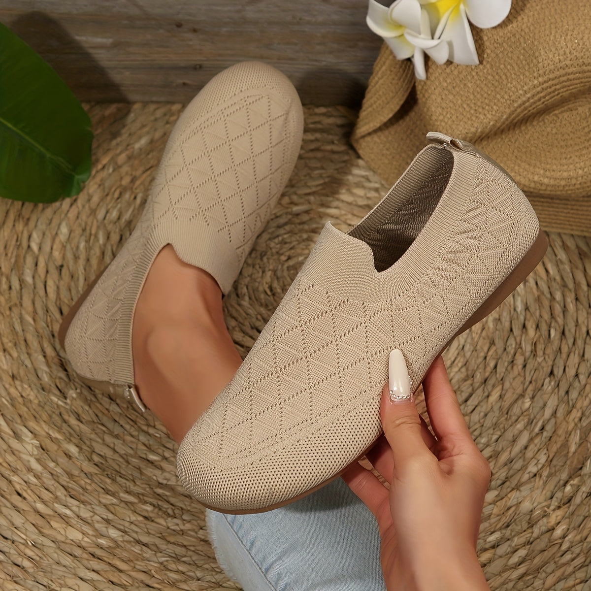 Ayollar uchun oson kiyinadigan kundalik poyabzal - yengil qulay nafas oladigan mato bej qora kulrang