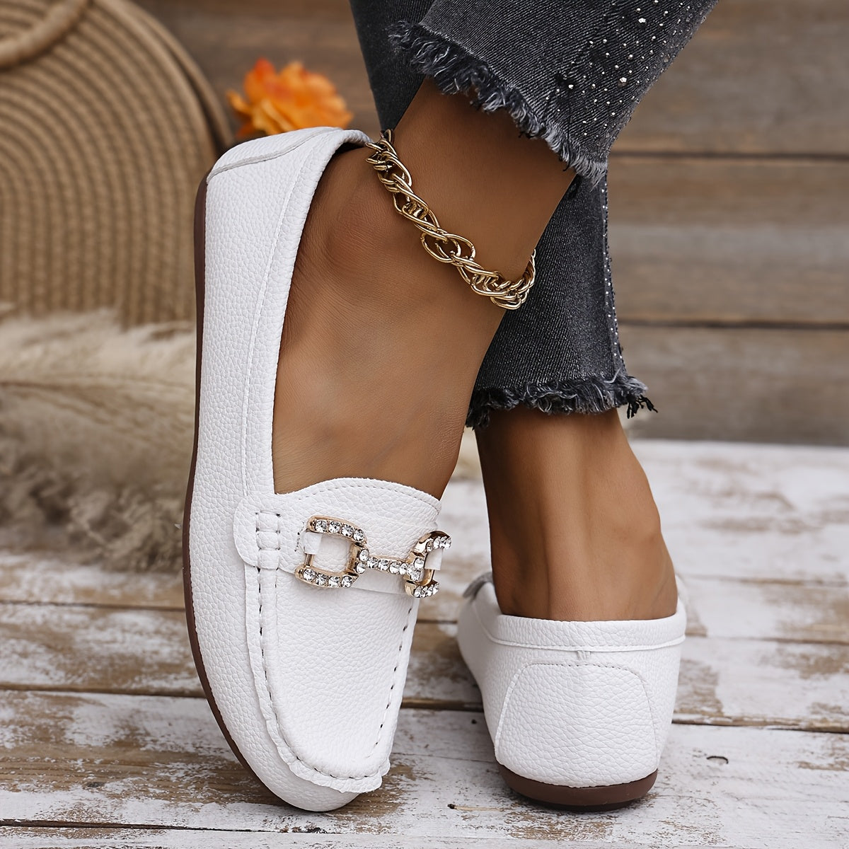 ayollar uchun slip-on tufli, faux cover yuqori qismi, kauchuk taglik, kundalik poyafzal
