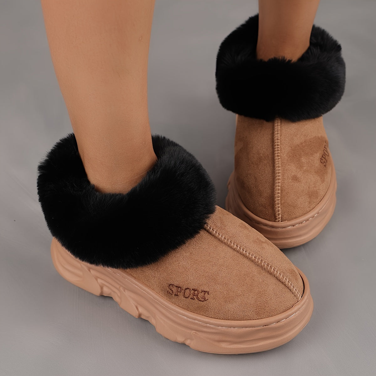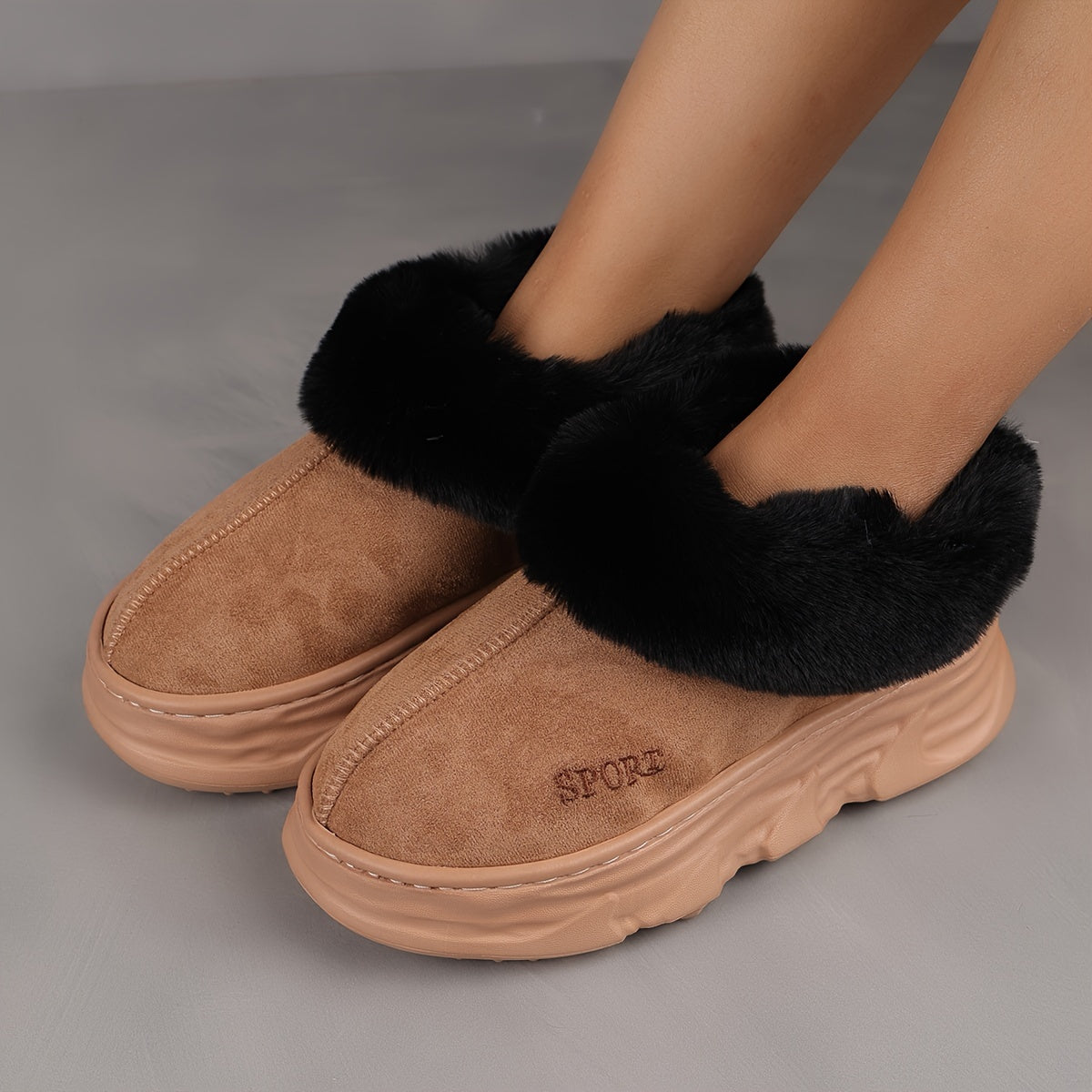Ayollar uchun yumshoq plyush shlyapki issiq, sirpmas, ichki va tashqi foydalanish uchun qalin poyabzal