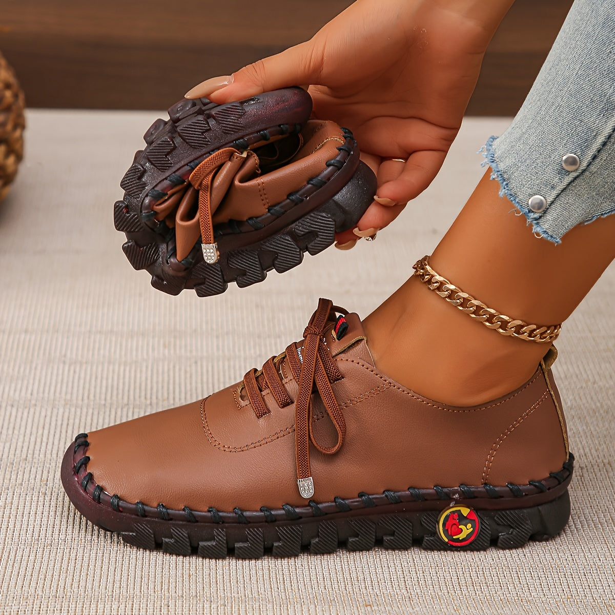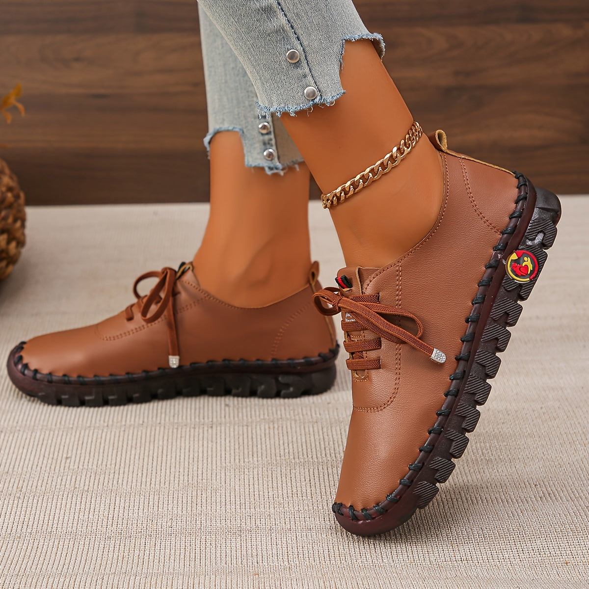 Women's Solid Color Casual Lace-Up Sneakers, Comfortable Low Top Oxfords