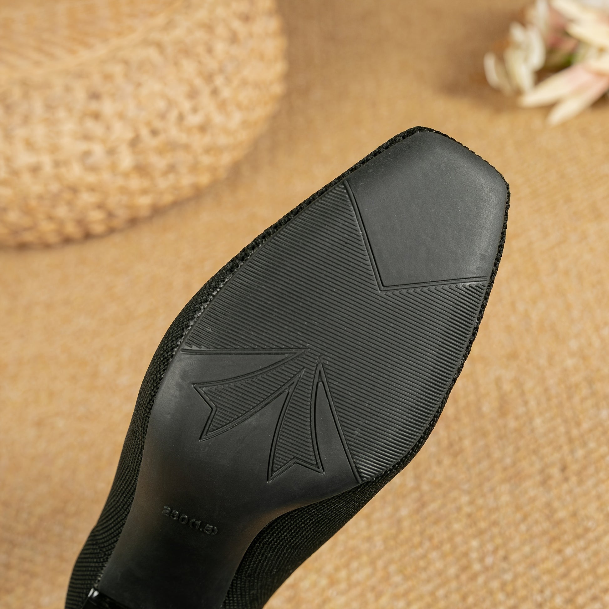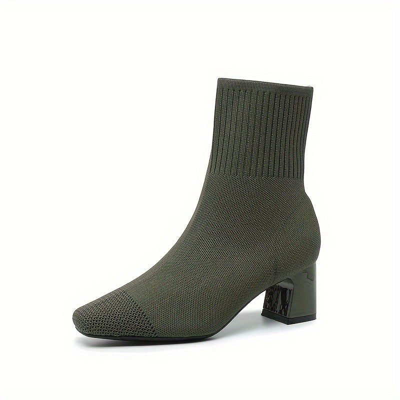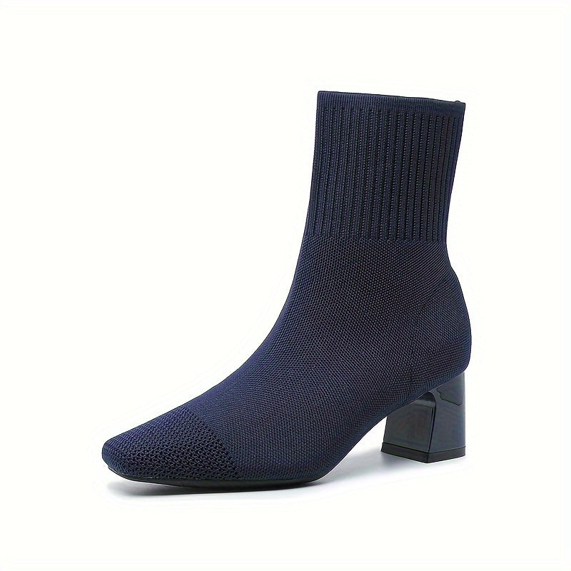 Women's Solid Color Knit Slip-On Ankle Boots with Chunky Heel