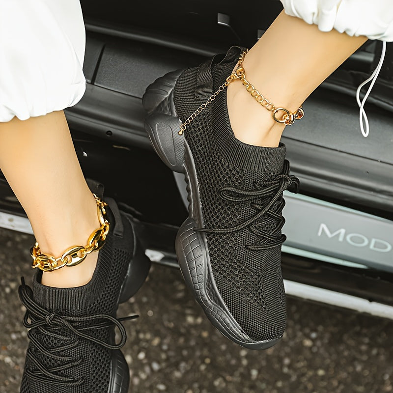 Women's Solid Color Platform Sneakers Breathable Lace-Up Running Shoes Plus Size